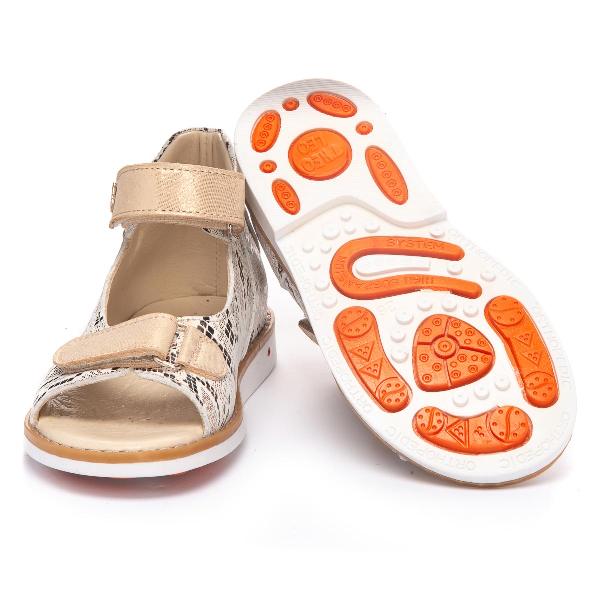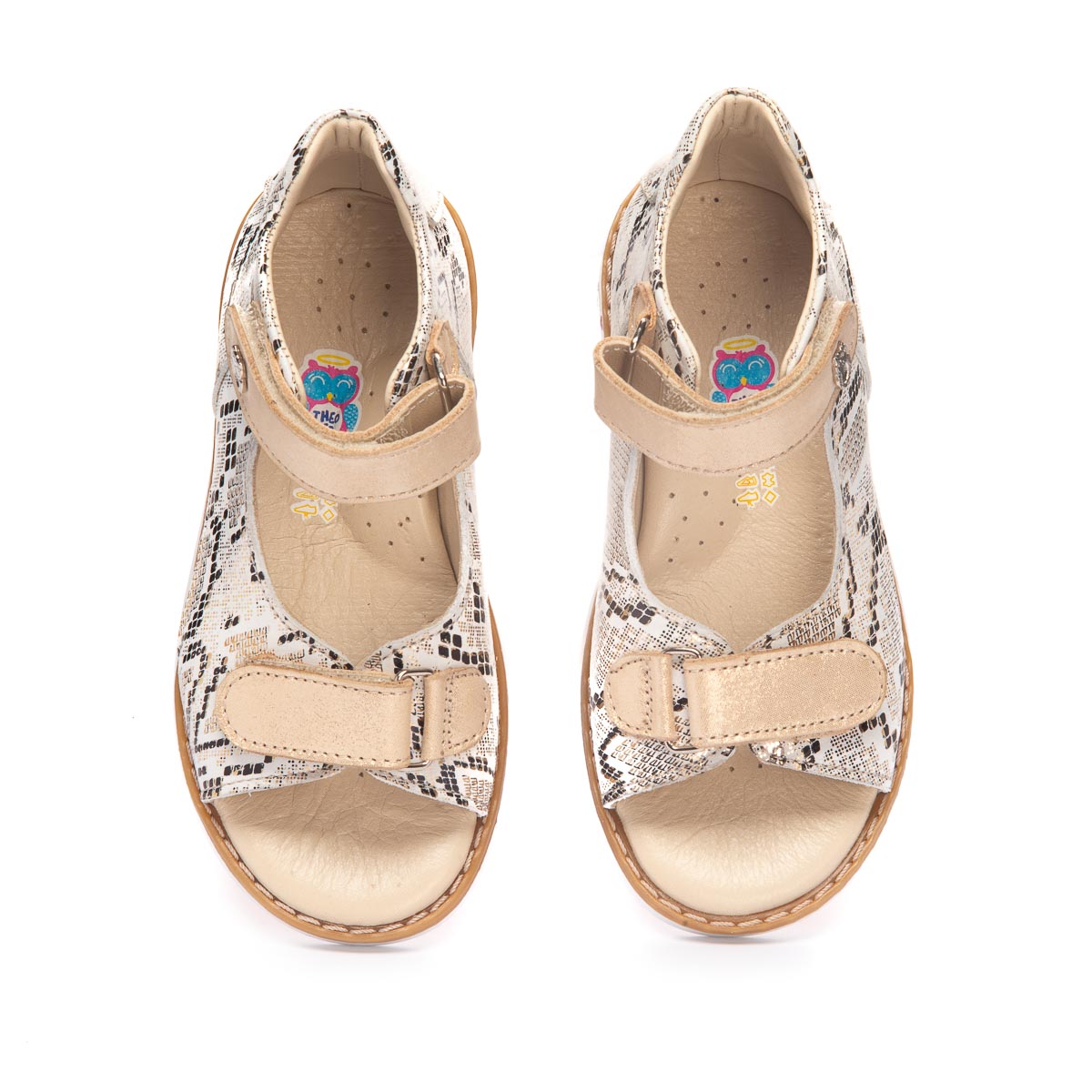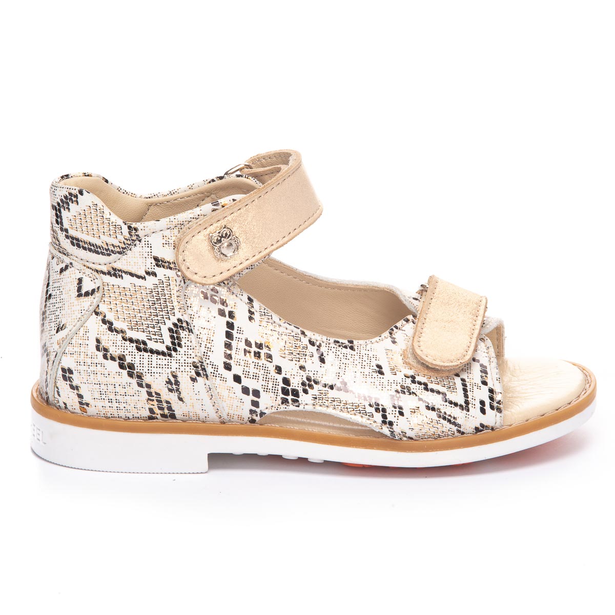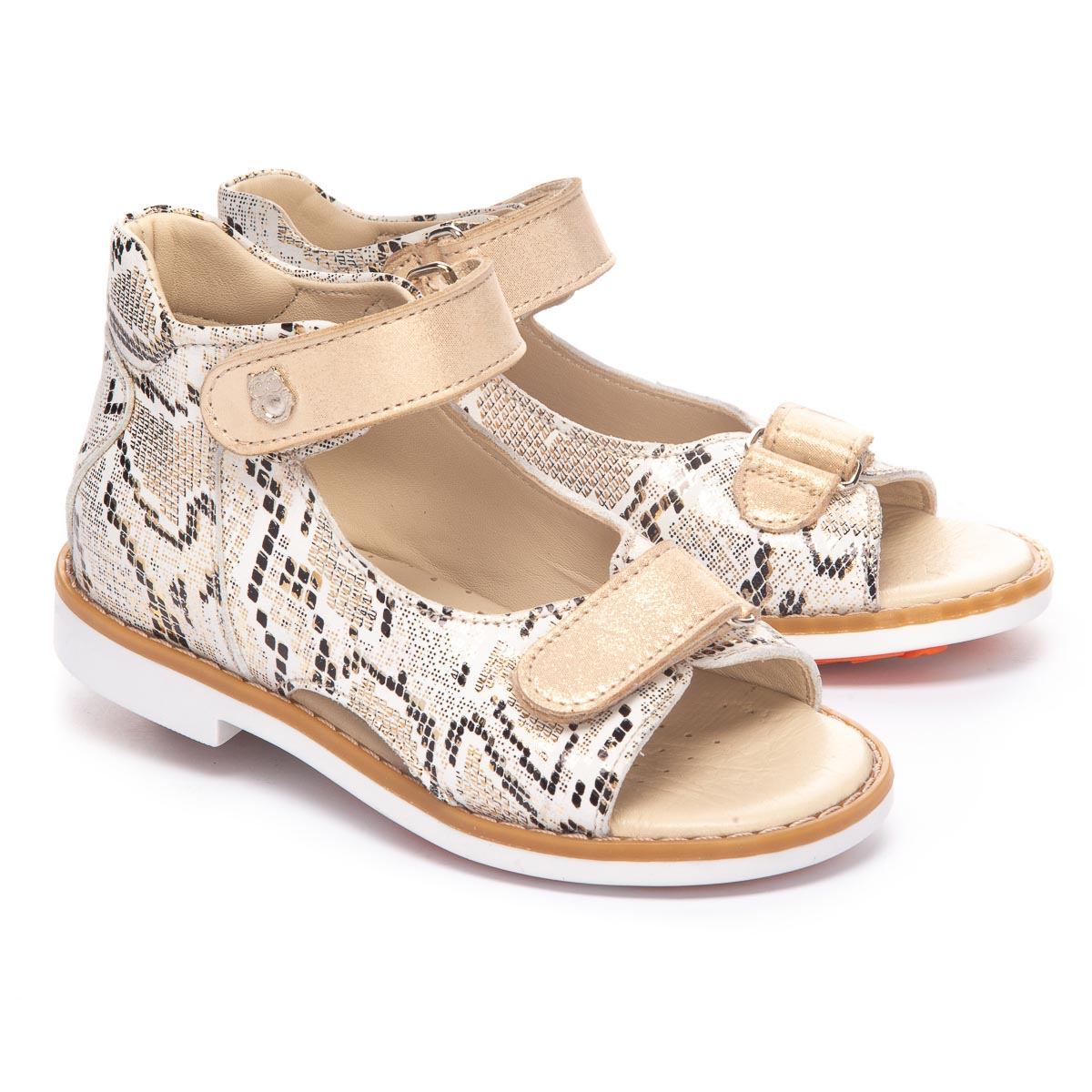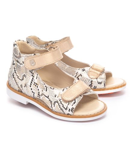 Босоножки, из мягкой качественной кожи с рисунком рептилии, обеспечат отличный комфорт во время носки и привлекут внимание. Бежевый цвет является универсальным и легко сочетается с любыми цветами и стилями одежды. У этих босоножек есть две застежки-липучки, которые делают их легкими в использовании и идеальными для детей, которые самостоятельно обуваются. Для обеспечения правильного развития стопы, здоровья ног и максимального комфорта, обувь имеет: