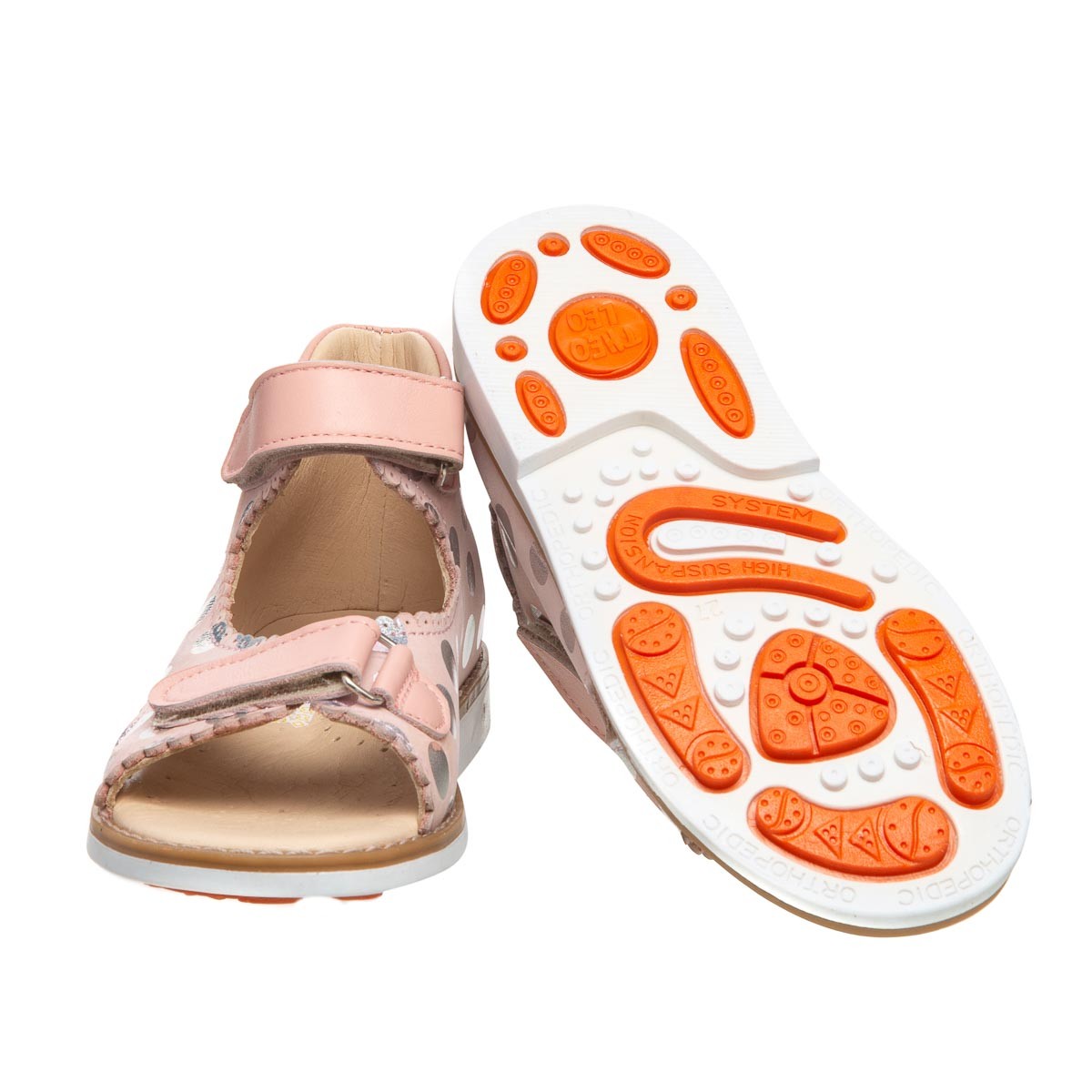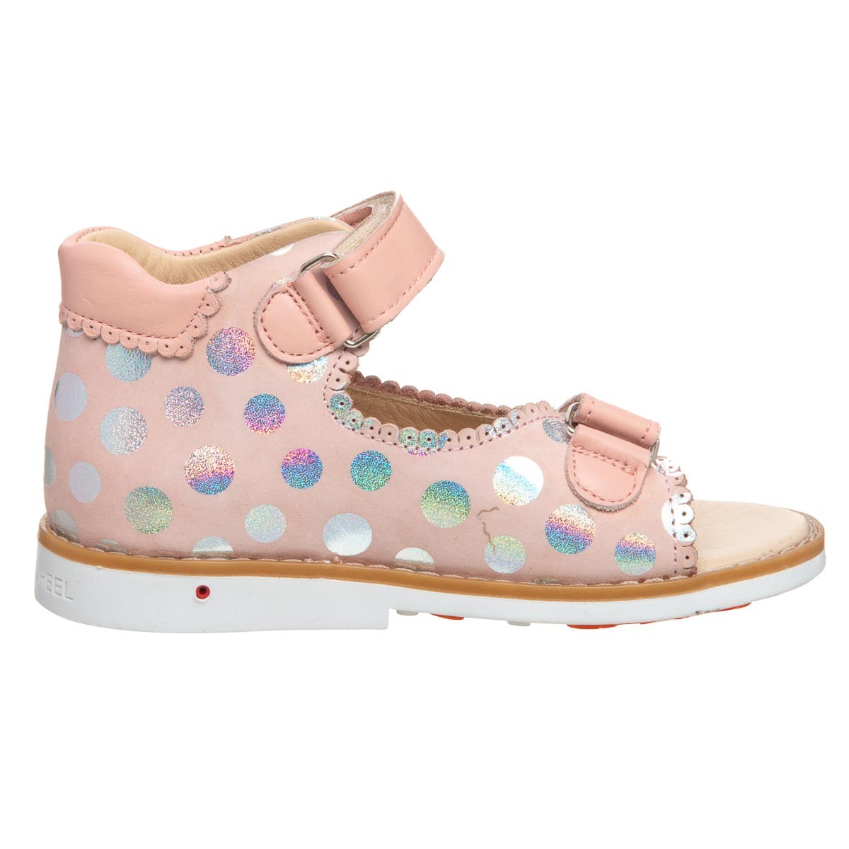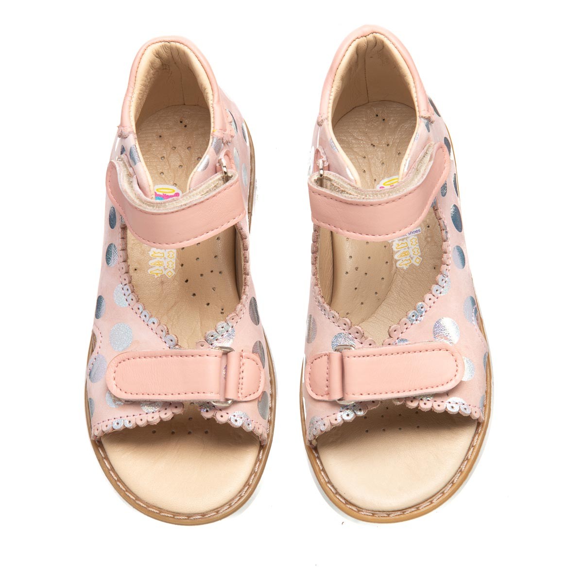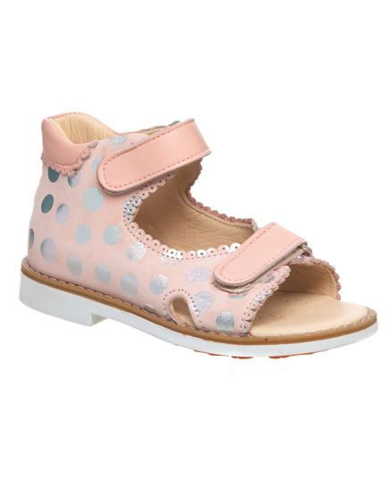 Совершенные босоножки для маленькой принцессы! Эти кожаные босоножки нежно-розового цвета с очаровательным рисунком в горошек станут любимой обувью вашего ребенка. Для обеспечения правильного развития стопы, здоровья ног и максимального комфорта, обувь имеет специальные свойства: