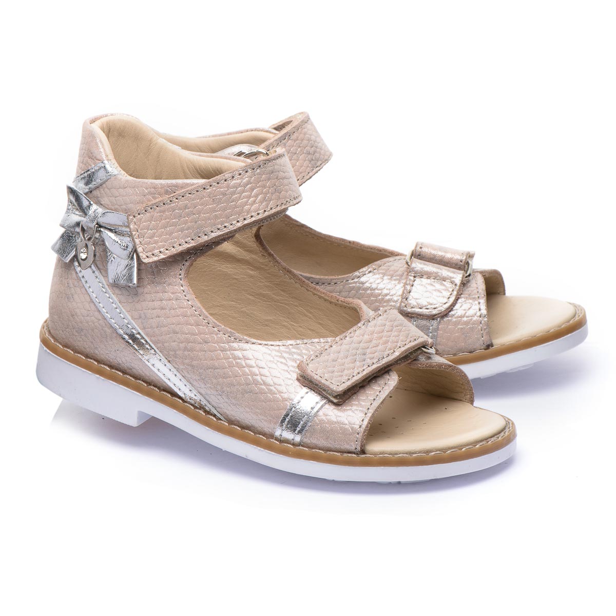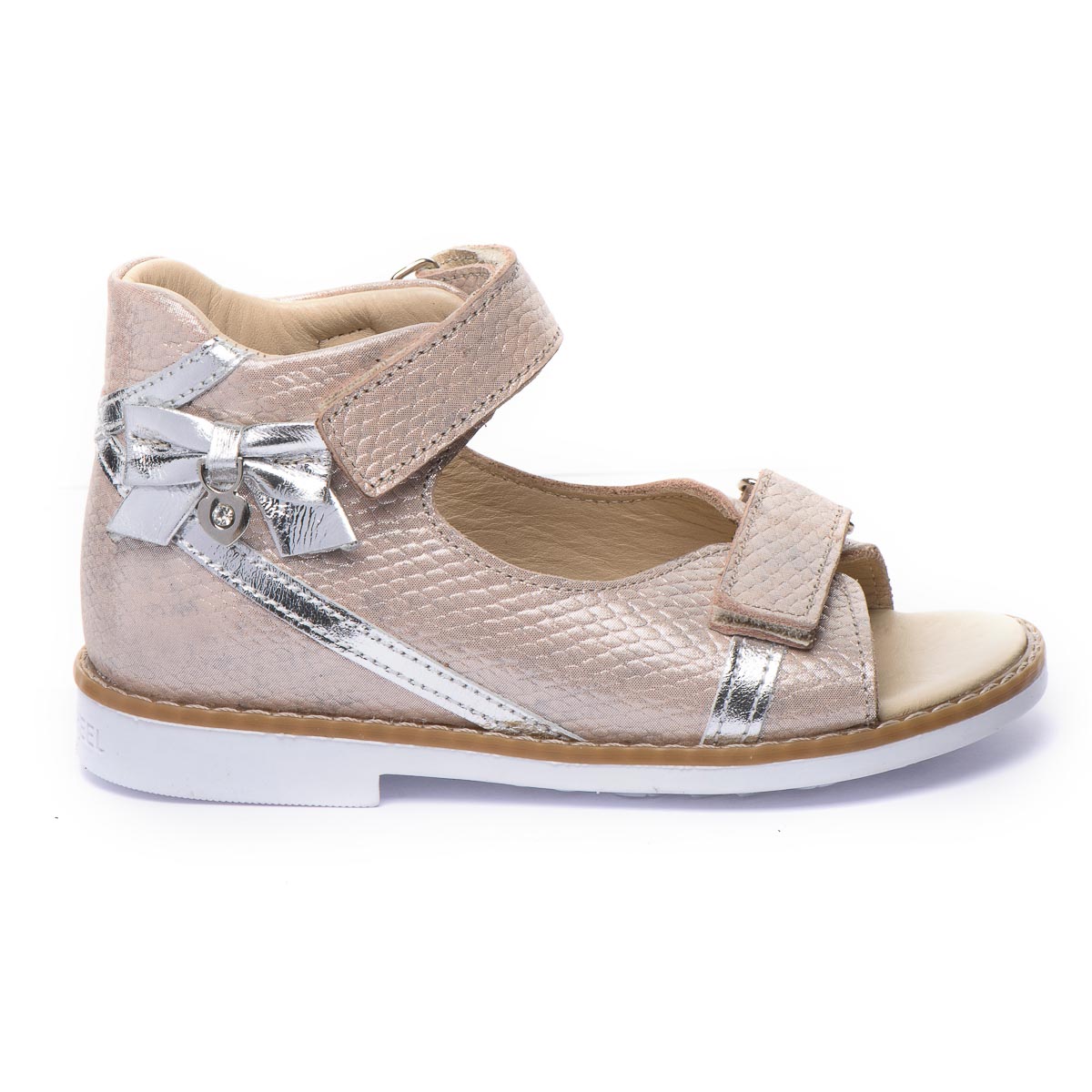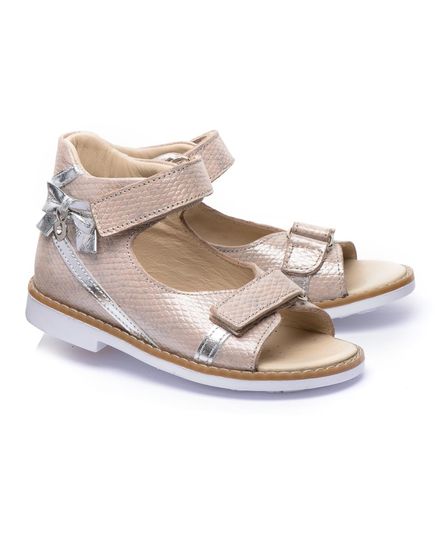 Изготовлены из качественной кожи в розово-золотом цвете, эти босоножки идеально подходят для любого весеннего или летнего наряда. Две застежки-липучки, это идеальный вариант, для самостоятельного обувания ребенком. Для обеспечения правильного развития стопы, здоровья ног и максимального комфорта, обувь имеет анатомическую стельку: