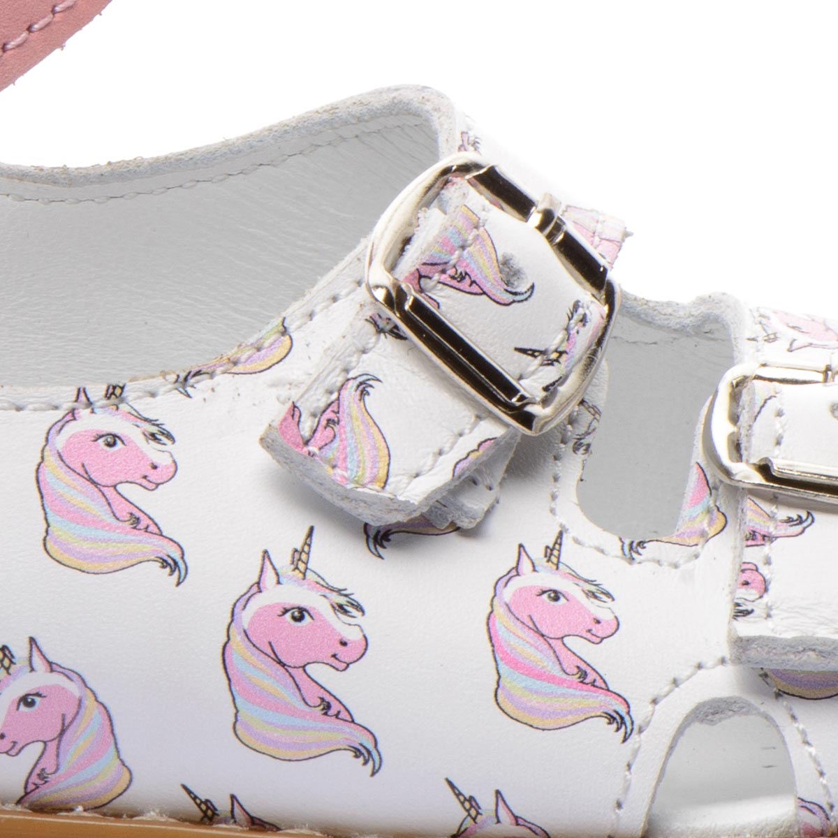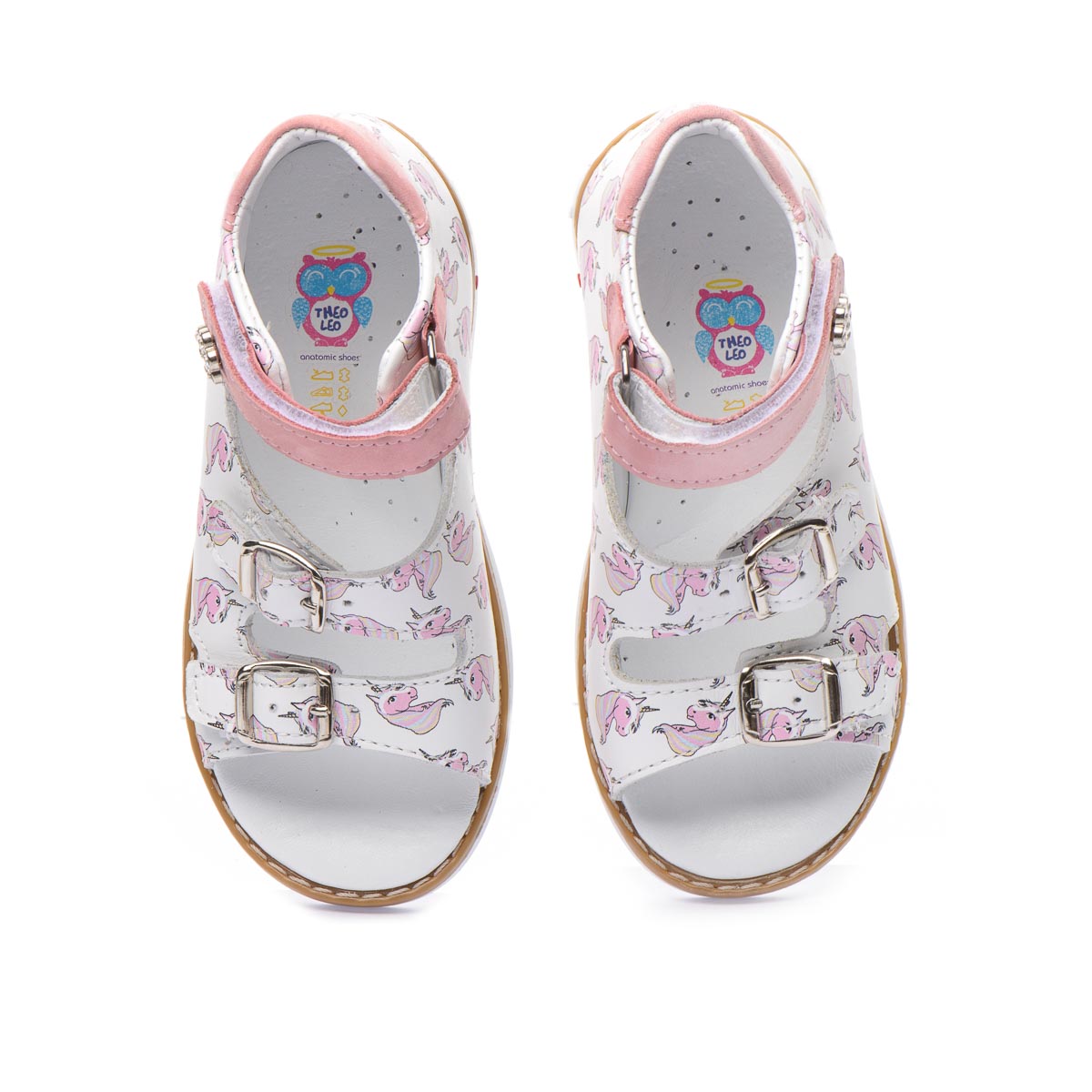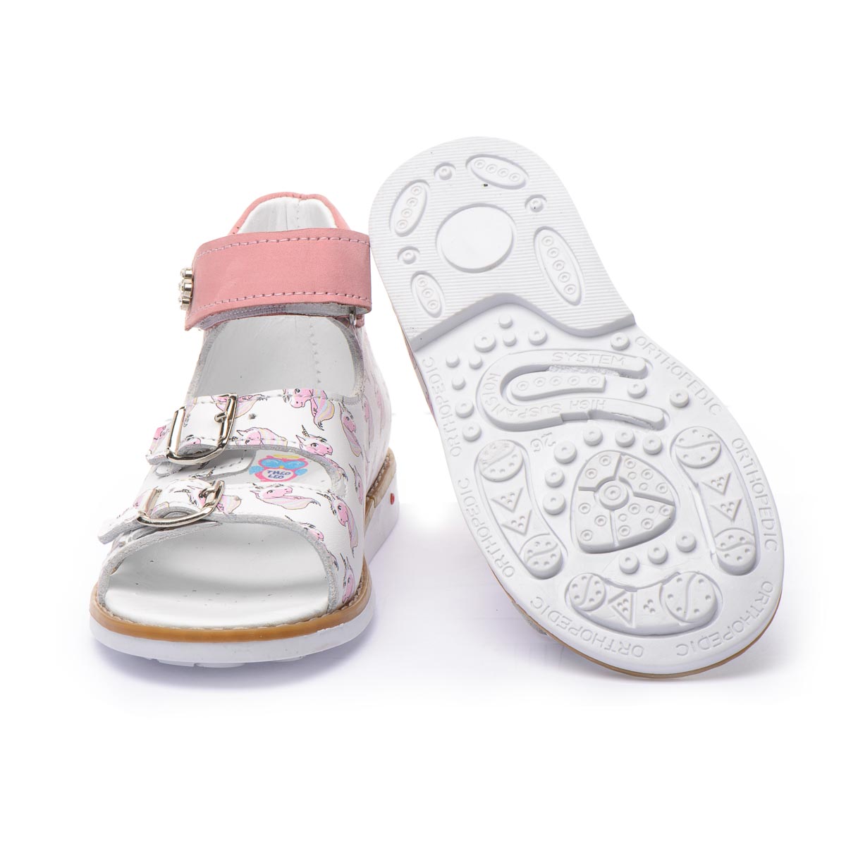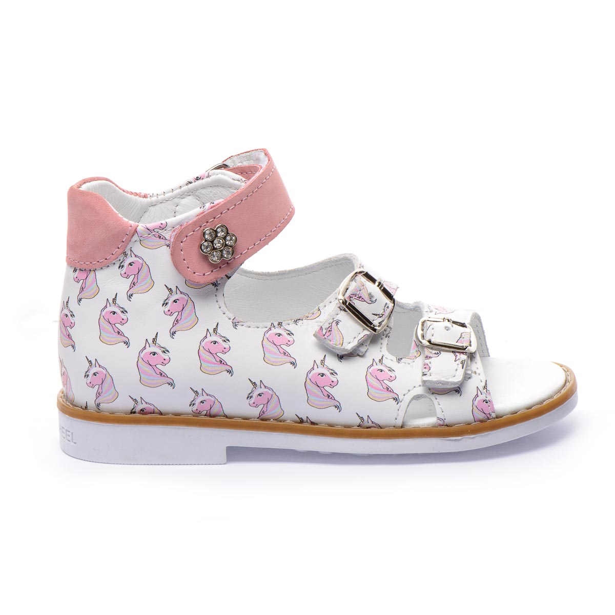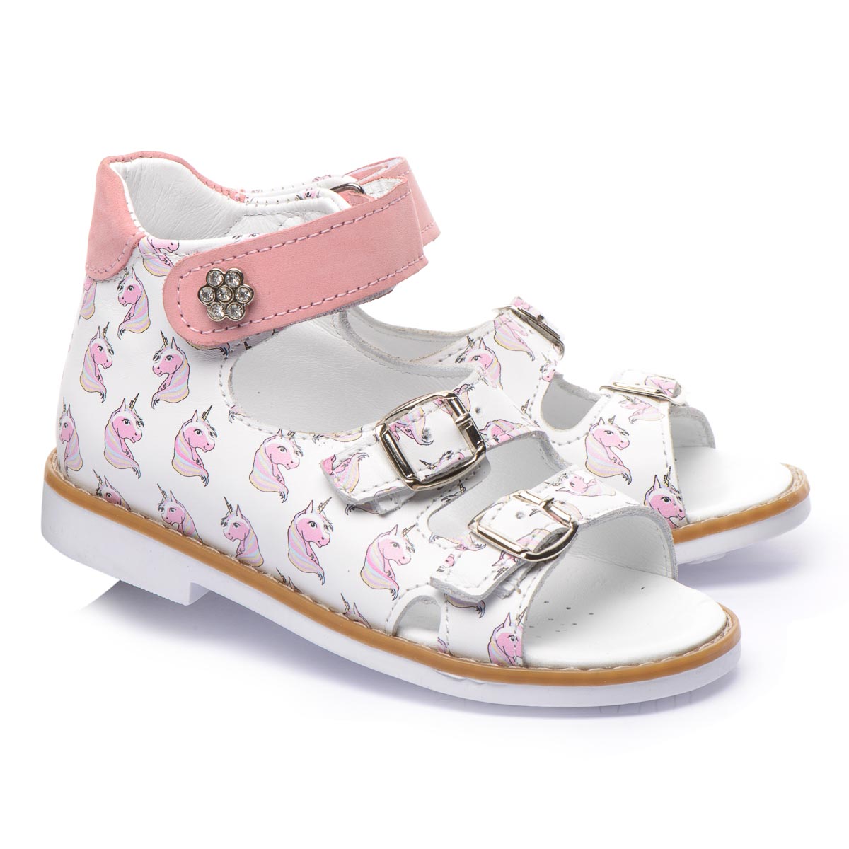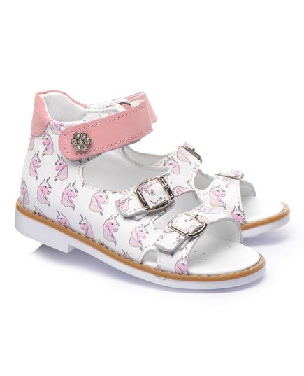 Босоножки изготовленными из белой натуральной кожи с ярким рисунком единорога, что наверняка понравится вашему ребенку. Две пряжки позволяют идеально подогнать обувь под индивидуальную ширину стопы вашего ребенка, а застежка-липучка легко зафиксировать обувь на ножке. Для обеспечения правильного развития стопы, здоровья ног и максимального комфорта, обувь имеет: