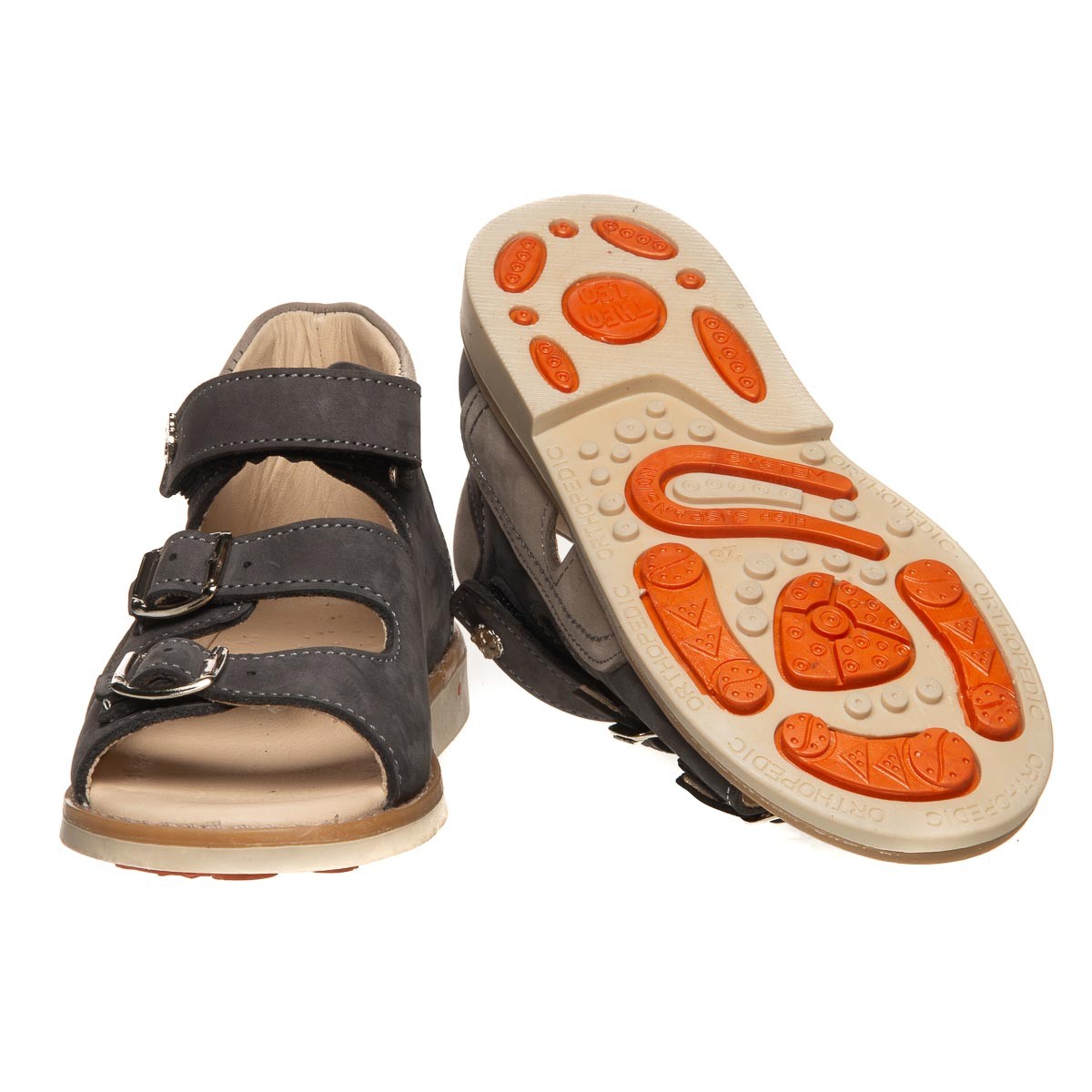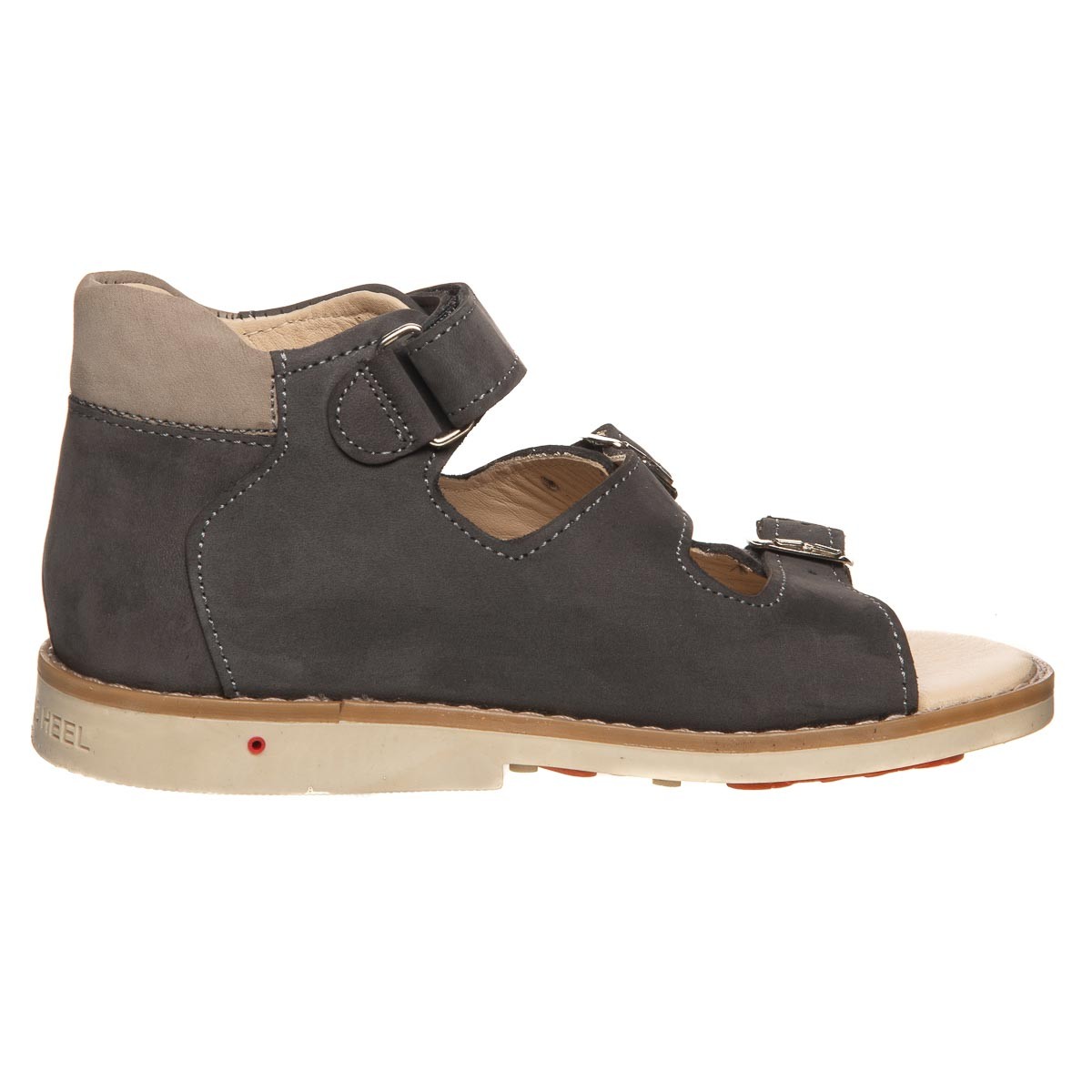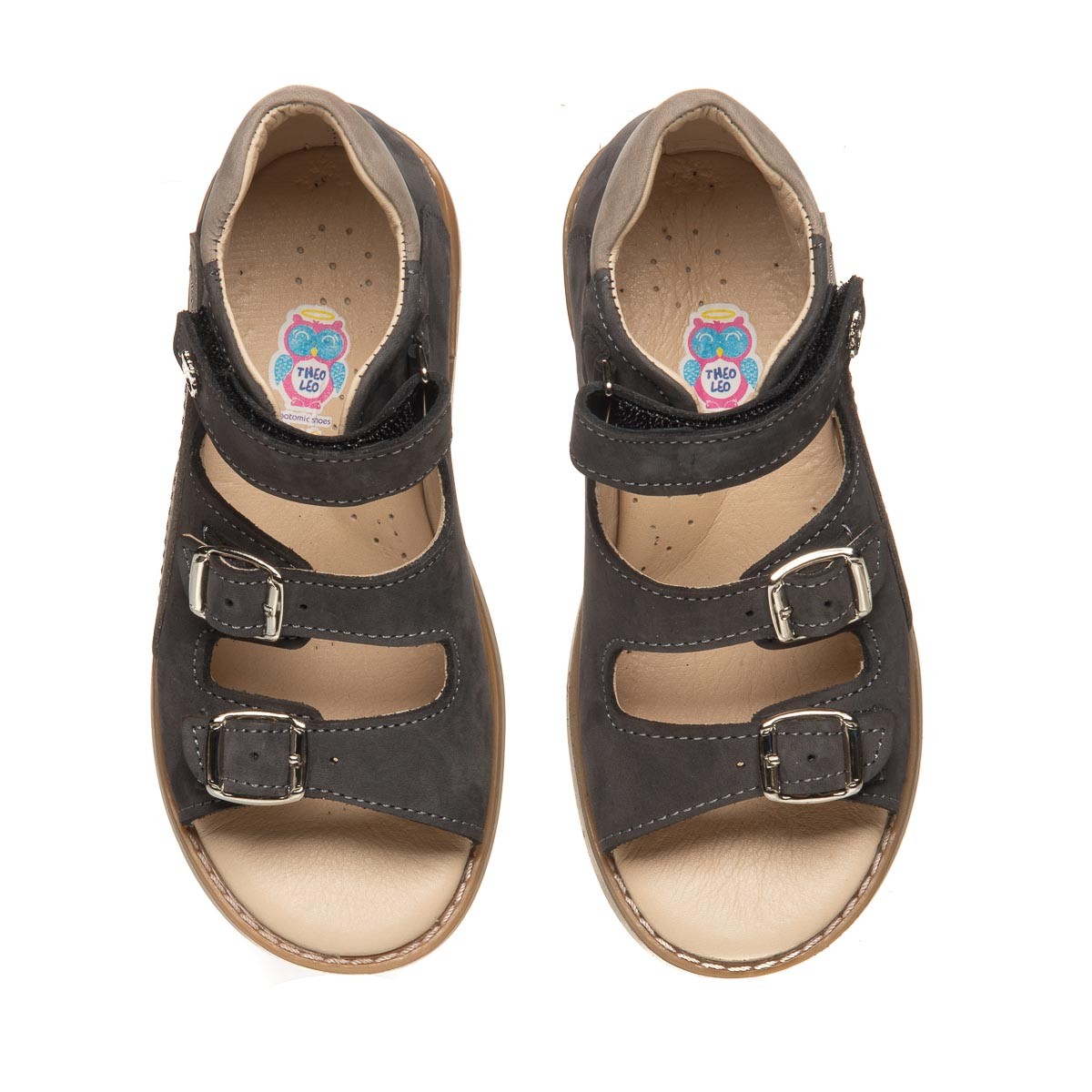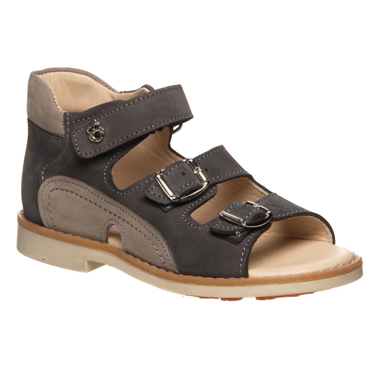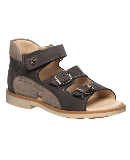 Темно-серые летние босоножки для мальчика, выполнены из натурального нубука, приятного на ощупь. Оснащены удобной застежкой на липучке и парой ремешков. Для обеспечения правильного развития стопы, здоровья ног и максимального комфорта, обувь имеет: