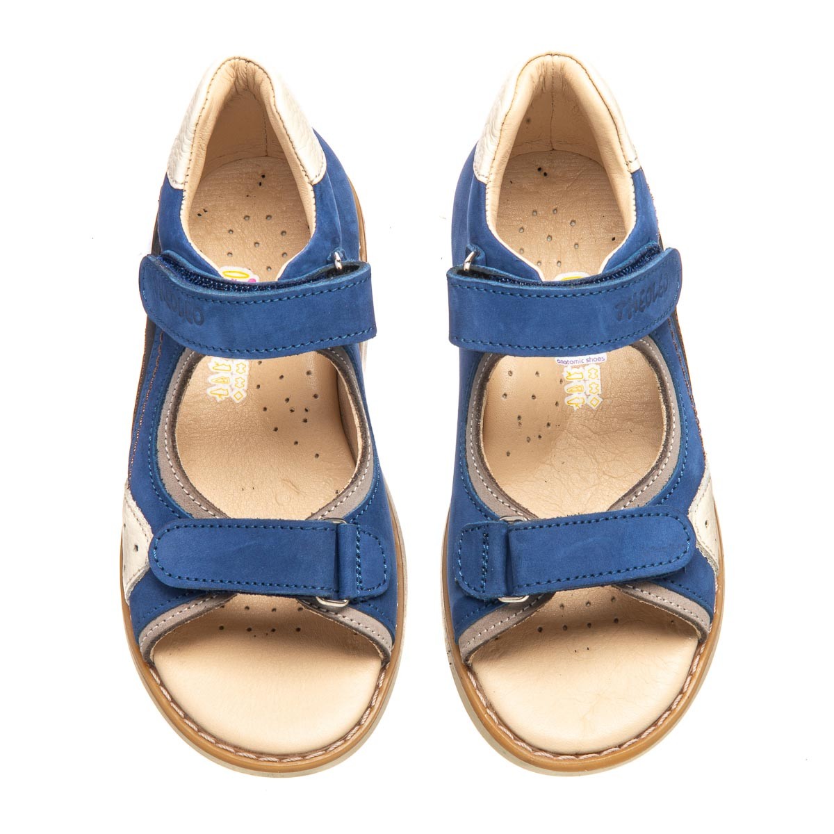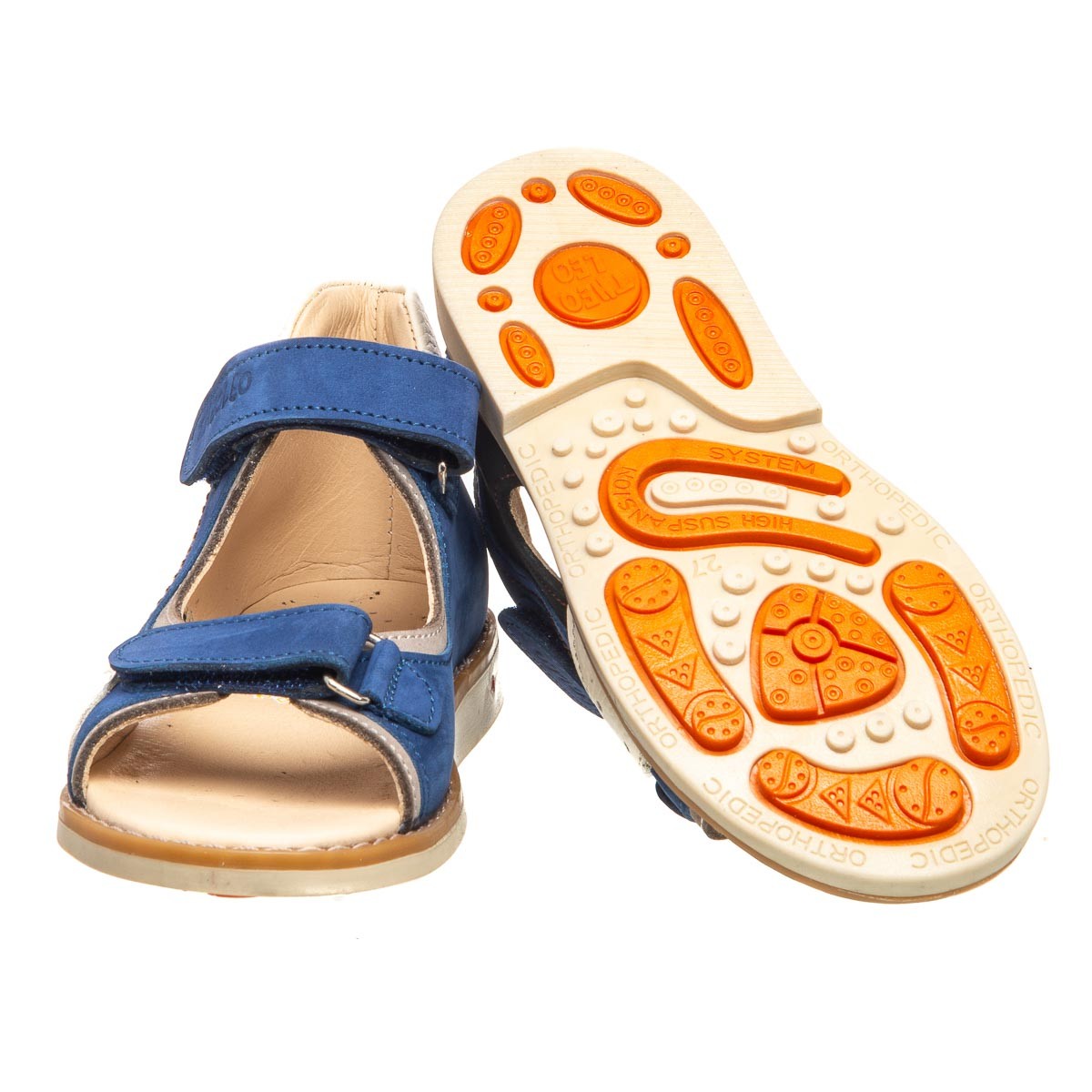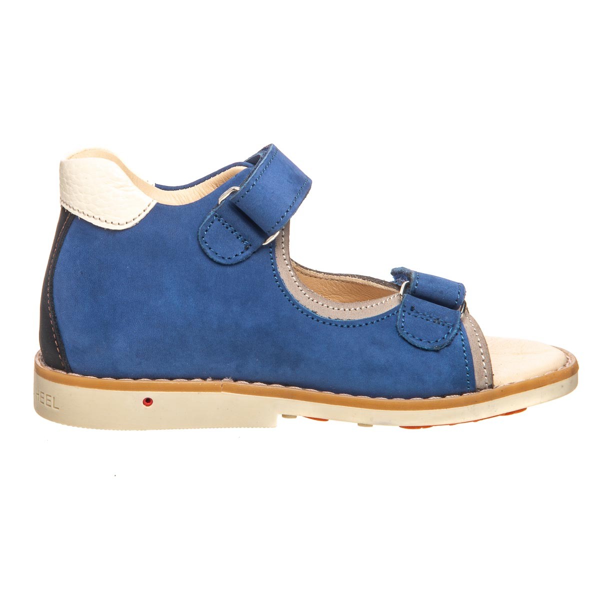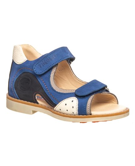 Босоножки для мальчика из натурального нубука синего цвета, декорированы разноцветными вставками. Внутренняя подкладка и стелька из натуральной кожи, стелька с анатомическим супинатором обеспечивает комфорт и поддержку стопы. Благодаря двум липучкам, босоножки легко надевать и надежно фиксировать на ножке. Подошва из термопластичной резины гарантирует удобство и устойчивость на различных поверхностях.