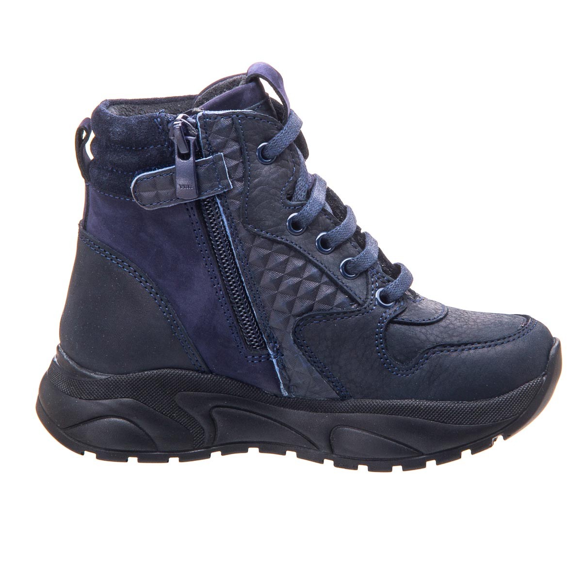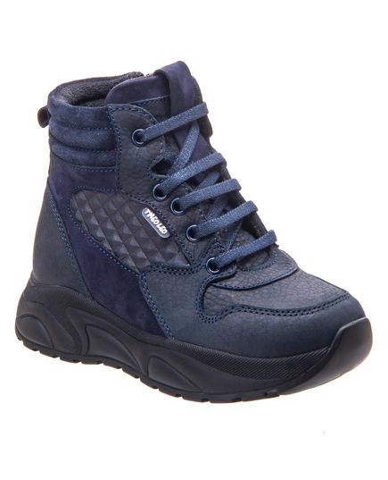 Синие детские ботинки изготовлены из натуральных материалов - кожи и нубука, отличаются не только ярким синим цветом, но и качеством. Имеют завышенный задник, что надежно поддерживает лодыжку, шнурки обеспечивают отличную фиксацию ножки. А боковая молния добавляет легкость в обувании и снятии. Ортопедическая стелька обеспечивает максимальный комфорт и поддержку, что важно для здорового развития стопы вашего ребенка. Обеспечьте своему ребенку комфорт и стиль с помощью наших ботинок!
