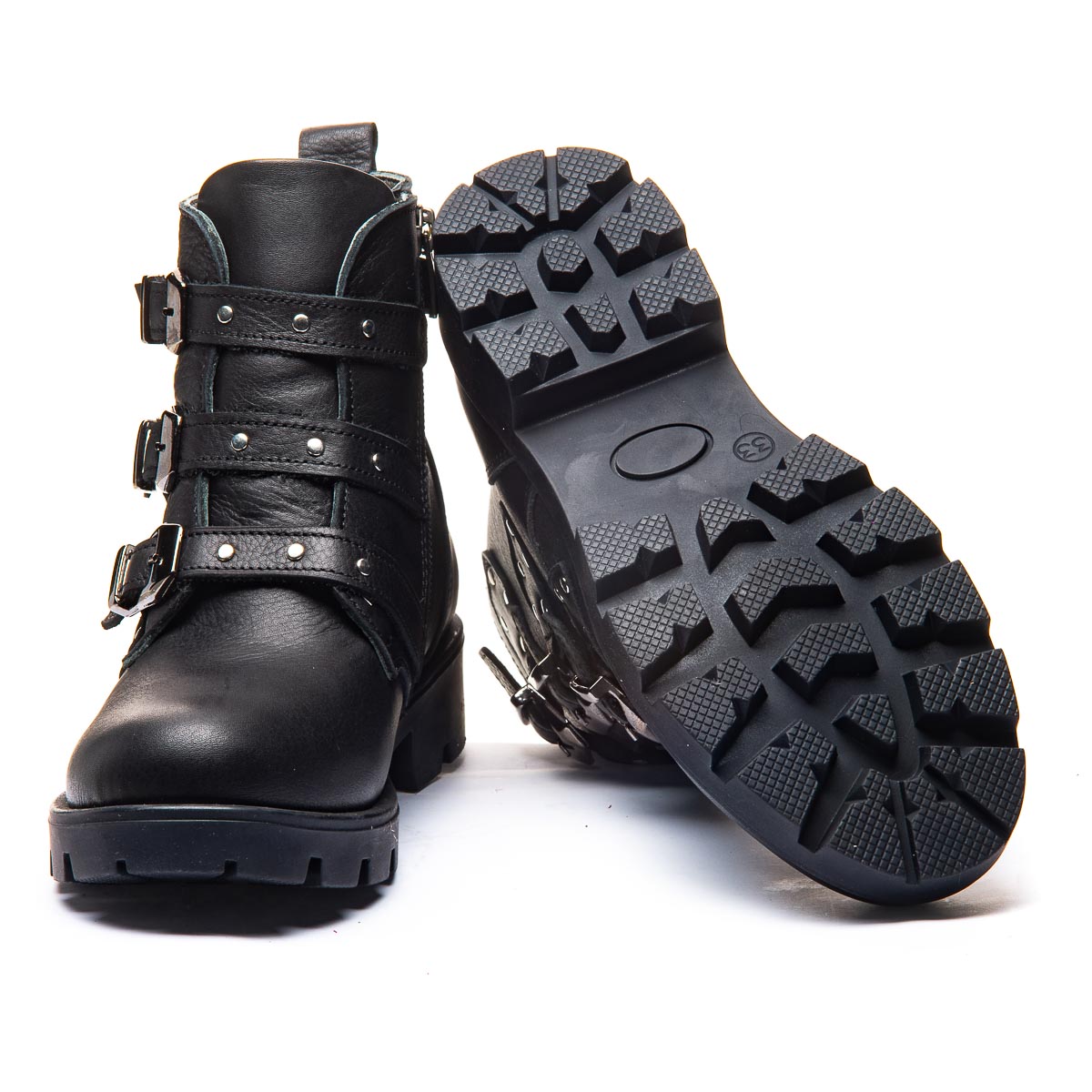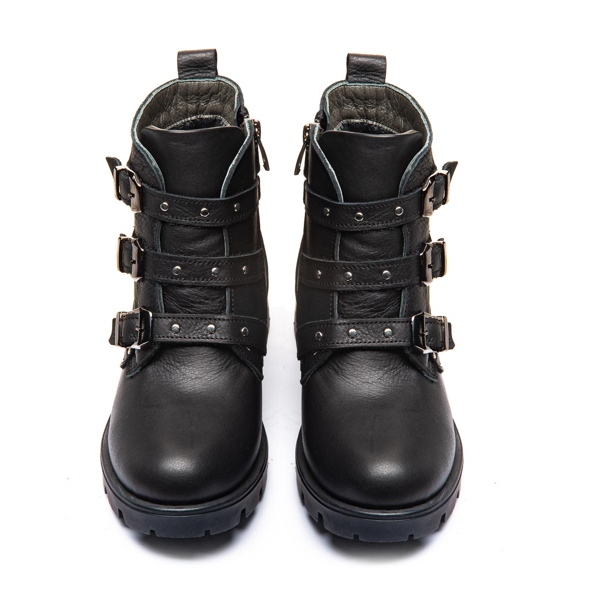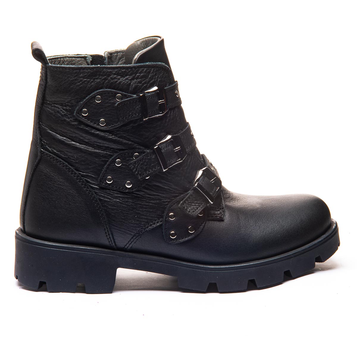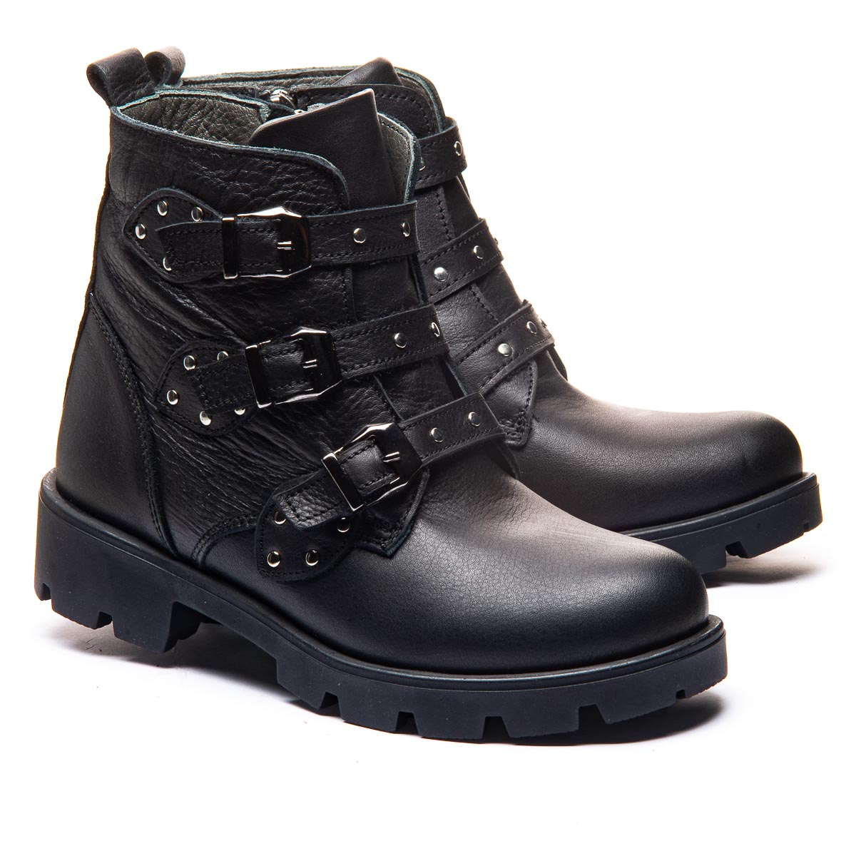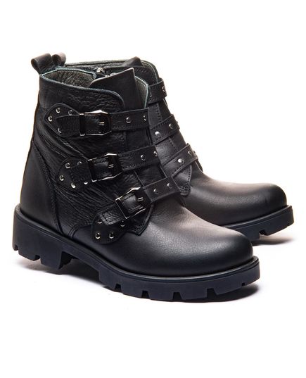 Черные кожаные сапоги для девочек поражают своим неповторимым дизайном: металлические элементы и декоративные застежки подчеркивают стильный характер. Застежка - молния обеспечивает легкость в использовании, а высококачественная кожа гарантирует долговечность и комфорт. Ботинки оборудованы теплой флисовой подкладкой, кожаной стелькой с анатомическим супинатором. Твердый задник помогает удерживать пятку в стабильном и правильном положении. Независимо от того, это повседневная прогулка или особое событие, эти сапоги сделают каждый образ завершенным и ярким.