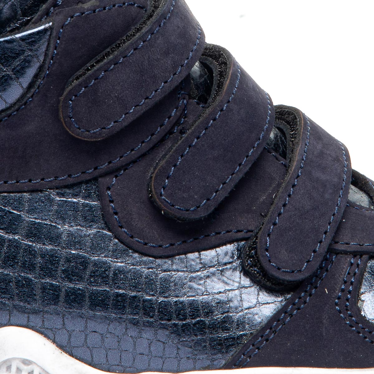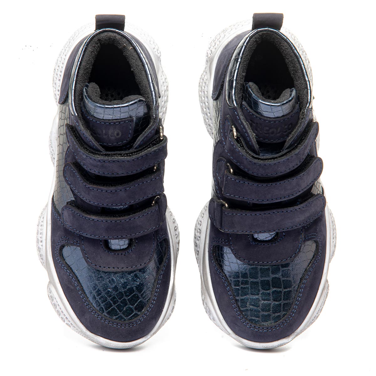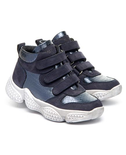 Ботинки для девочки изготовлены из натурального темно-синего нубука, дополненного синими вставками из натуральной кожи. Внутренняя подкладка из флиса, кожаная стелька и подошва из термопластичной резины обеспечивают отличную теплоизоляцию. Ортопедические характеристики, такие как жесткий задник и стелька с супинатором, гарантируют высокий уровень комфорта. Для удобства обувания ботинки оснащены тремя надежными липучками. Не упустите возможность порадовать вашу маленькую модницу стильными и комфортными ботинками!