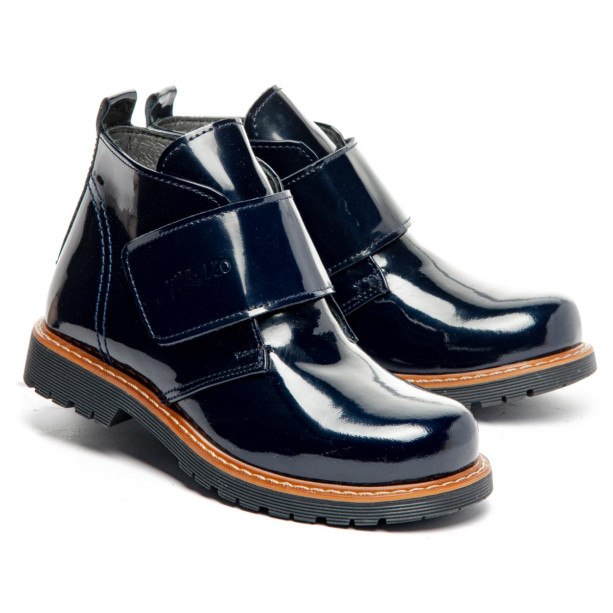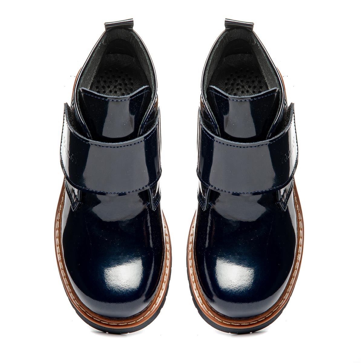 Темно-синие лакированные детские ботинки для девочек, выполненные из натуральной кожи. Одна застежка на липучке делает процесс обувания максимально простым и удобным, а подошва из термопластичной резины гарантирует надежное сцепление и безопасность на любой поверхности. Утепленные флисом, эти ботинки обеспечат ножкам тепло. Стелька кожаная с анатомическим супинатором. Ботинки сочетают в себе изящество и практичность, дополнят любой гардероб маленькой модницы.