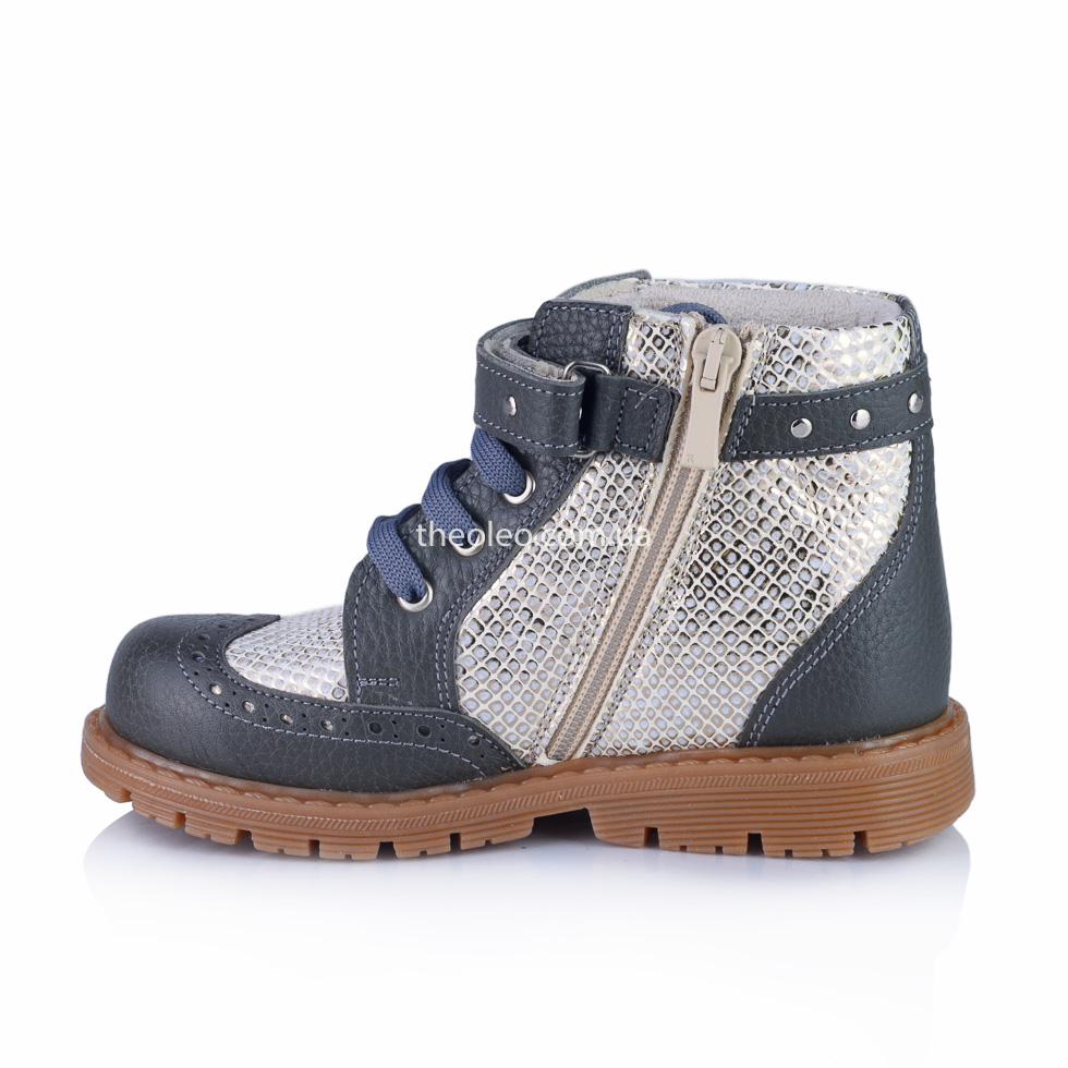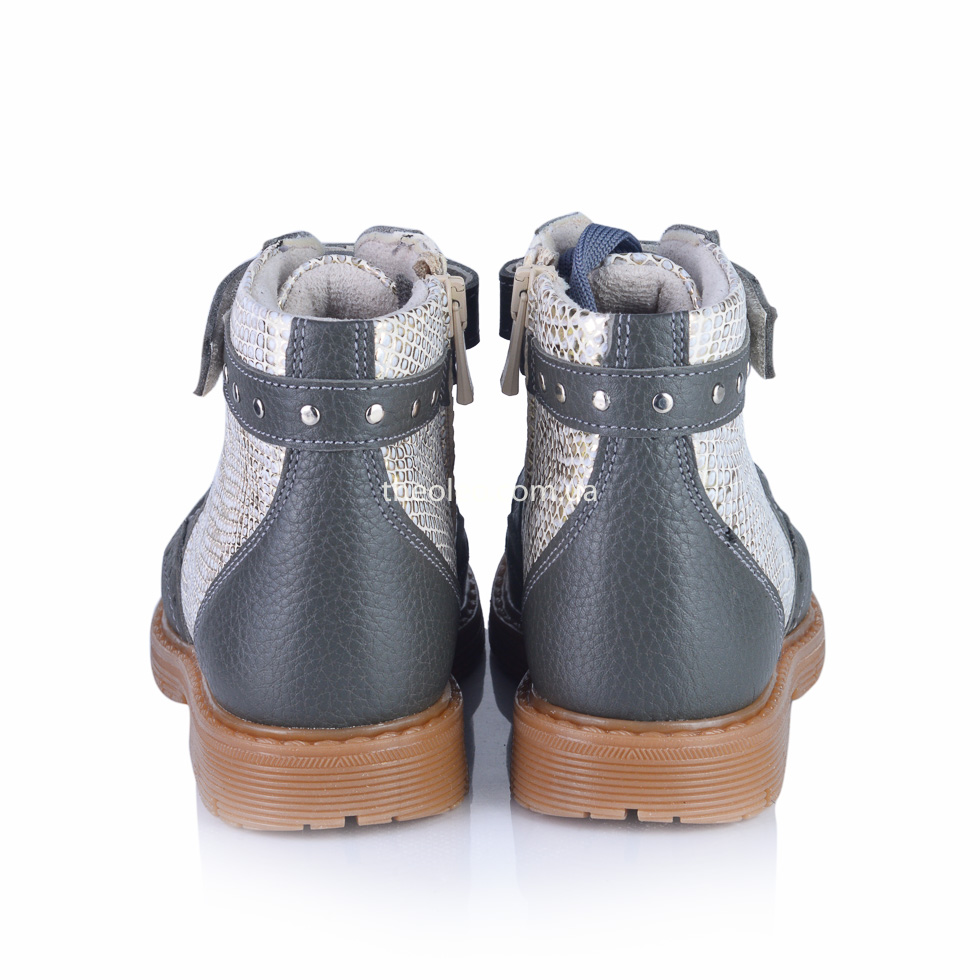 Замечательные демисезонные ботиночки для девочки выполненыиз двух видов натуральной кожи. Сочетание цветов – серого и бело-золотистого,необычны й дизайн, интересная застежка.Маленькая леди обязательно оценит по достоинству. Стелька с анатомическимсупинатором – натуральная кожа. Подкладка – утепленный флис, ножки ребенка незамерзнут весенними прохладными деньками. Фиксируются с помощью шнурков, молниина внутренней стороне и дополнительной липучкой сверху. Подошва с каблукомТомаса изготовлена из термопластиковой резины, не скользит и хорошоамортизирует при ходьбе.