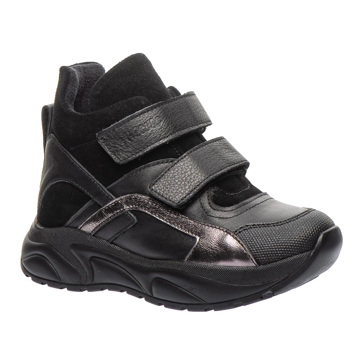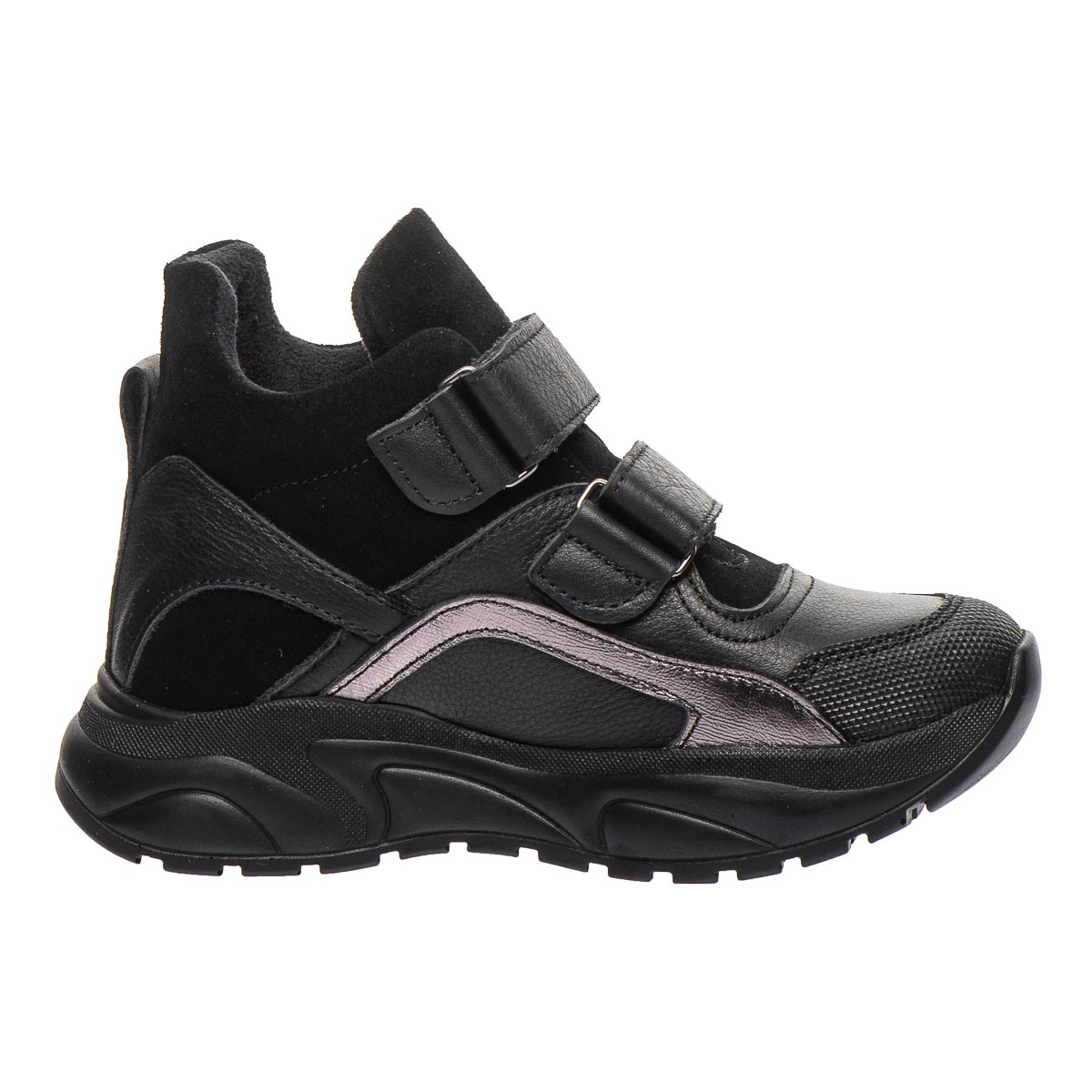 Демисезонные ботинки для девочки-модницы, изготовленные из натуральной кожи и нубука черного цвета. Две удобные застежки-липучки гарантируют легкость в использовании обуви, а также идеальное прилегание к ноге. Благодаря флисовой подкладке, ботинки станут еще более уютными и комфортными для детских ножек в холодное время года. Стелька кожаная с анатомическим супинатором. Подошва удобная, рельефная из термопластичной резины. Не ограничивайте свою дочь в выборе стильной и удобной обуви - выберите эти красивые демисезонные ботинки, которые станут неотъемлемой частью ее гардероба!