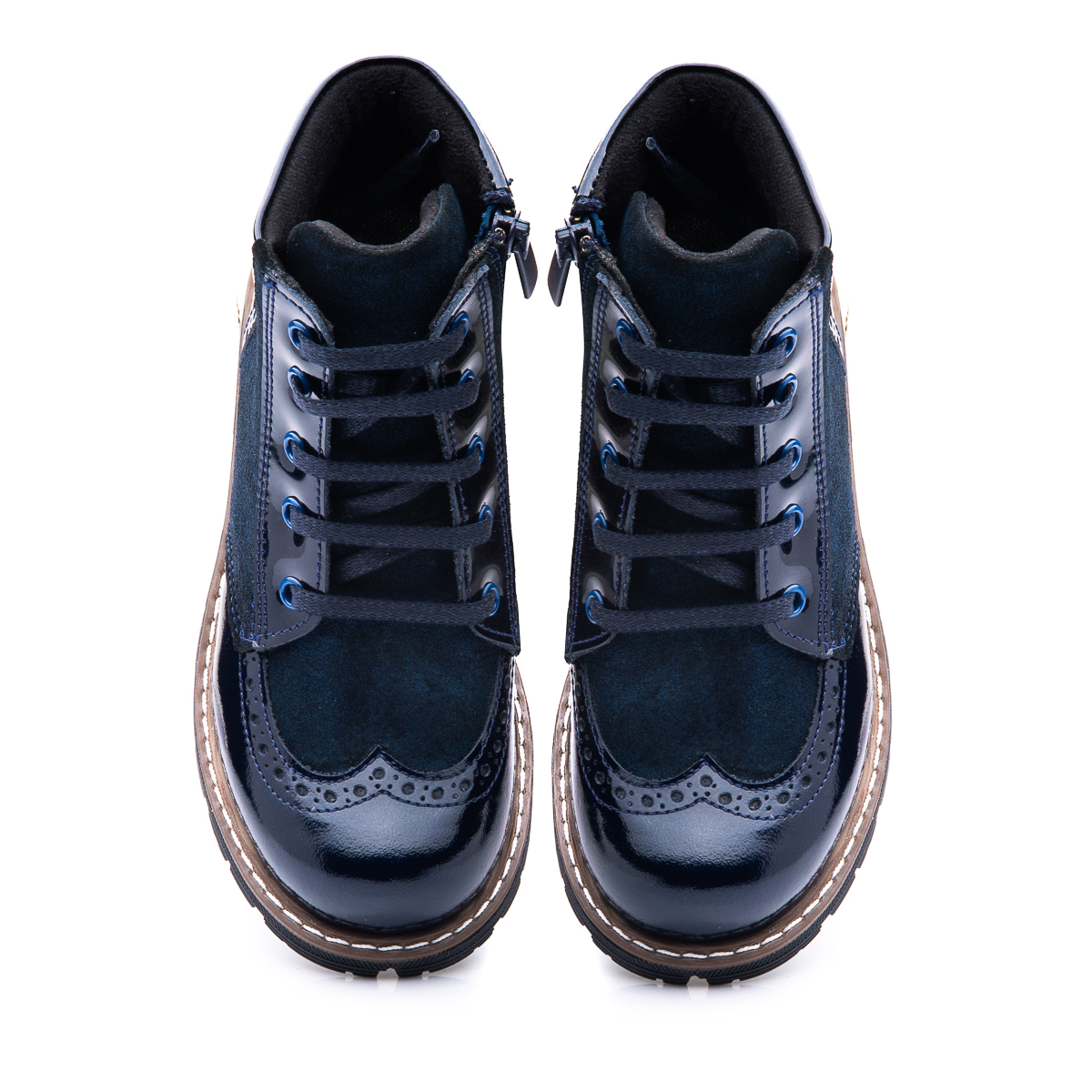 Демисезонные синиеботинки для девочек с очень интересным дизайнерским оформлением. Эта модельстанет прекрасным дополнением к осеннему гардеробу и подойдет как к курточке,так и к пальто. Ботинки застёгиваются и расстёгиваются с помощью молнии, чтозначительно облегчает их надевание. Теплая и мягкая подкладка из флиса не дастзамерзнуть, а подошва из термопластичной резины не пропустит ни одной капли. Вних также присутствует анатомический супинатор, который проследит за здоровьемвашего ребенка.Такие ботинки непременно обеспечат теплую и комфортабельнуюосень.
