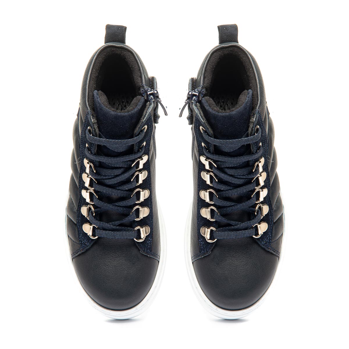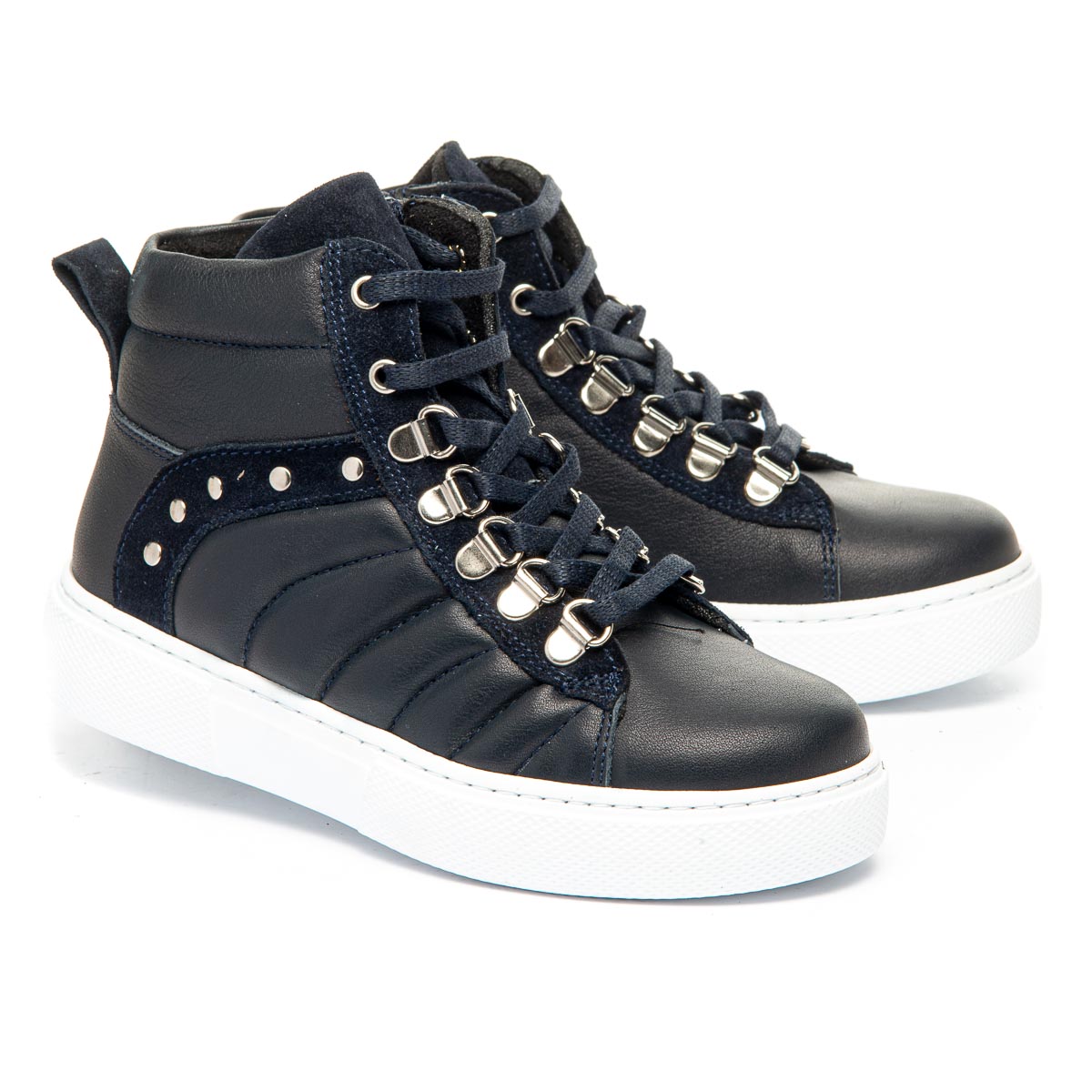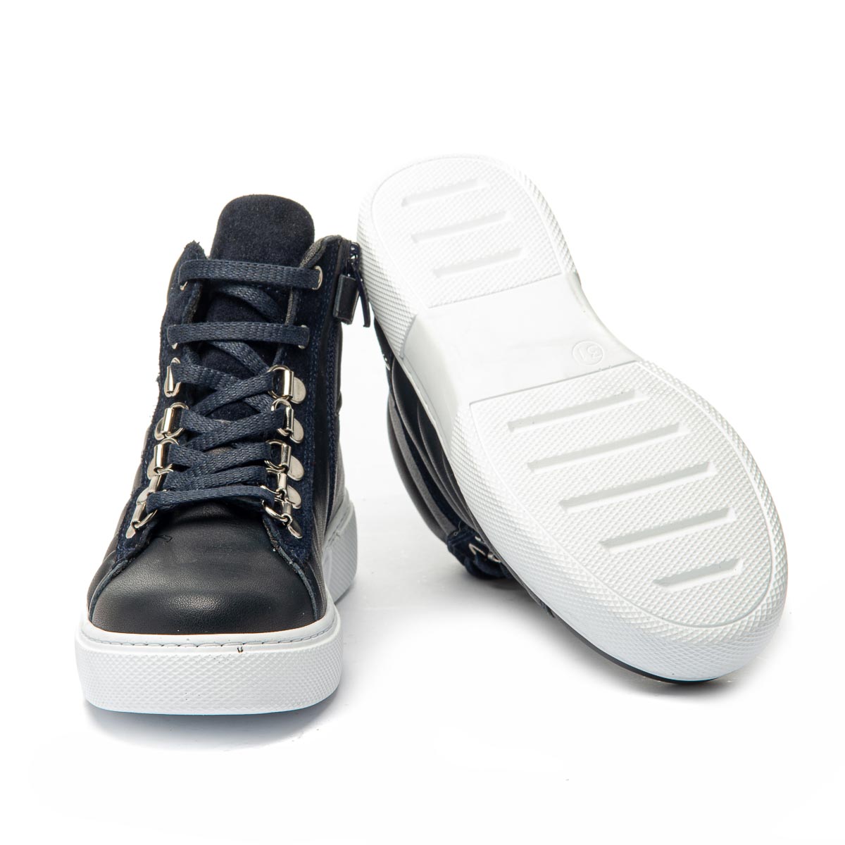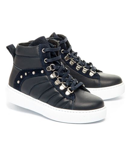 Демисезонные ботинки для девочки изготовлены из натуральной кожи синего цвета. Модель оснащена удобной молнией и стильной шнуровкой, которая обеспечивает надежную фиксацию на ноге. Материал подкладки - флис, гарантирует тепло и комфорт в прохладную погоду. Кожаная стелька с супинатором - съемная. Белая спортивная подошва изготовлена из термопластичной резины, не скользит, хорошо амортизирует и износостойкая. Эти ботинки сочетают стильный дизайн, комфорт и надежность, идеально подойдут для активного ежедневного ношения.