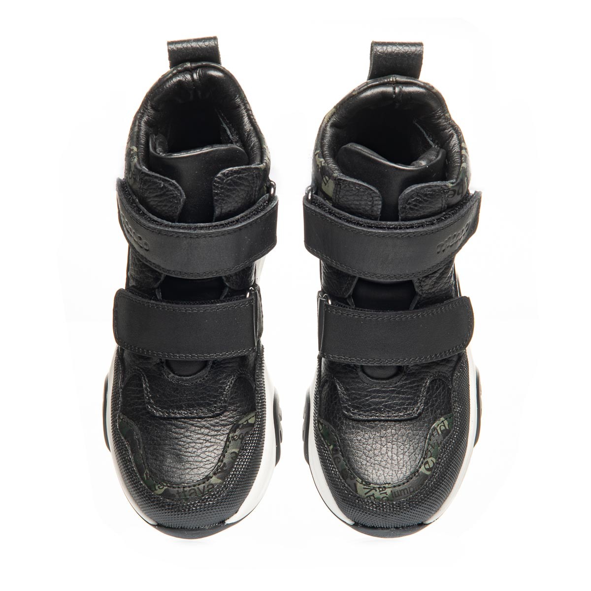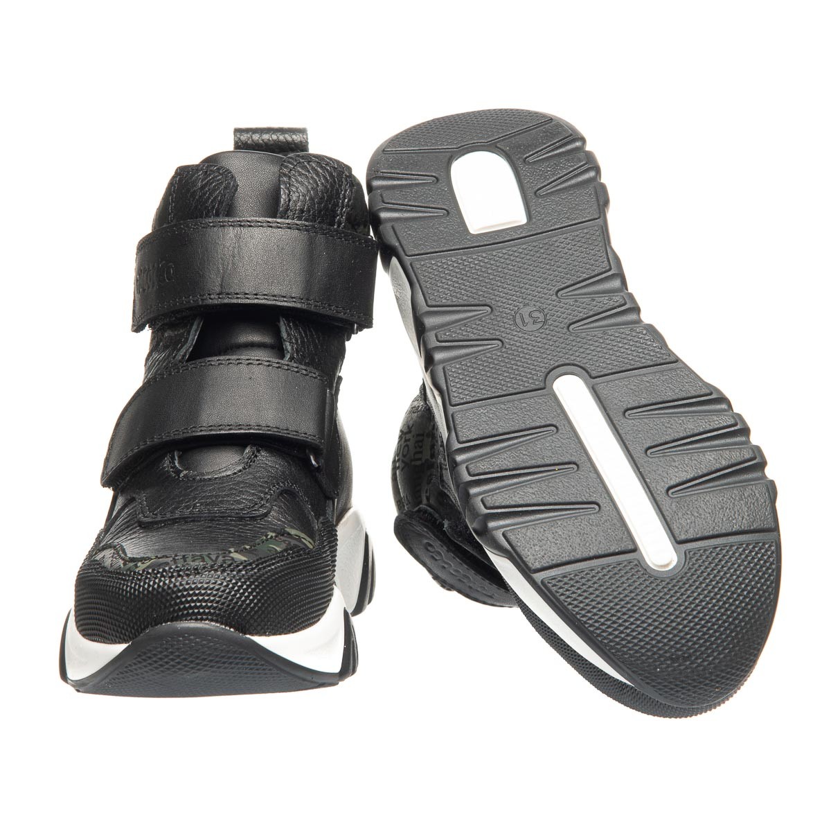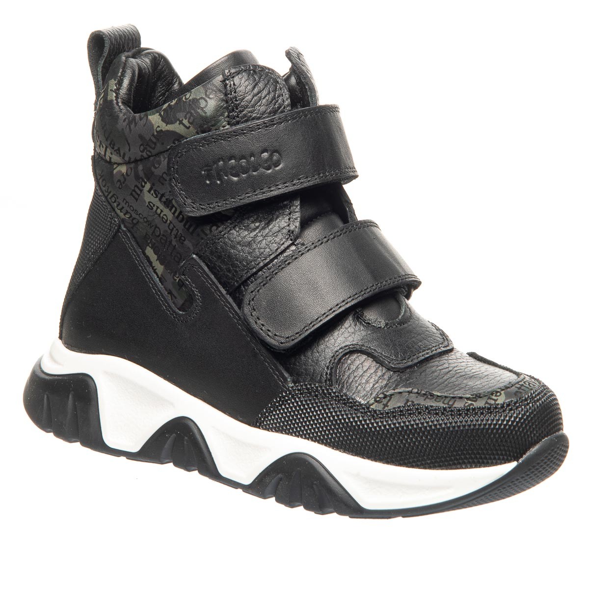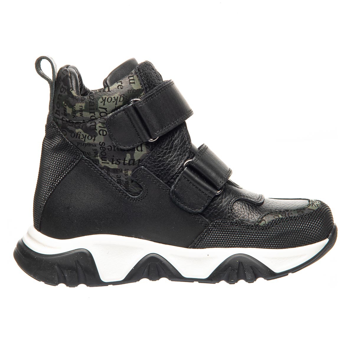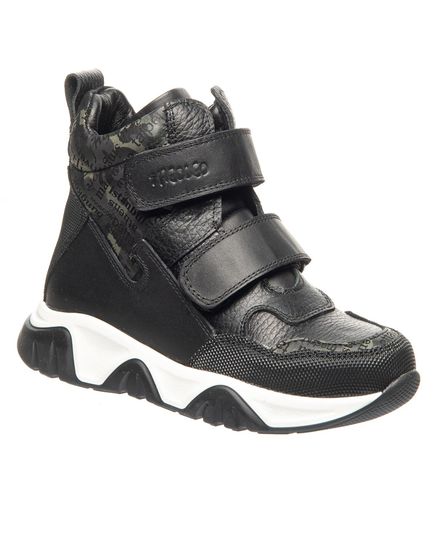 Ботинки для мальчиков отличаются оригинальным дизайном, изготовленные из натуральной кожи, они имеют специальные прорезиненные вставки на боках, носках и пятках, что обеспечивает дополнительную защиту обуви. Особый интерес придает декор в виде газетного принта, который делает эту модель неповторимой. Удобные застежки на двух липучках позволяют легко обувать ботинки и регулировать посадку. Бело-черная подошва добавляет образу завершенности. Эти ботинки - идеальный выбор для мальчиков, которые любят экспериментировать со стилем, не жертвуя при этом комфортом.