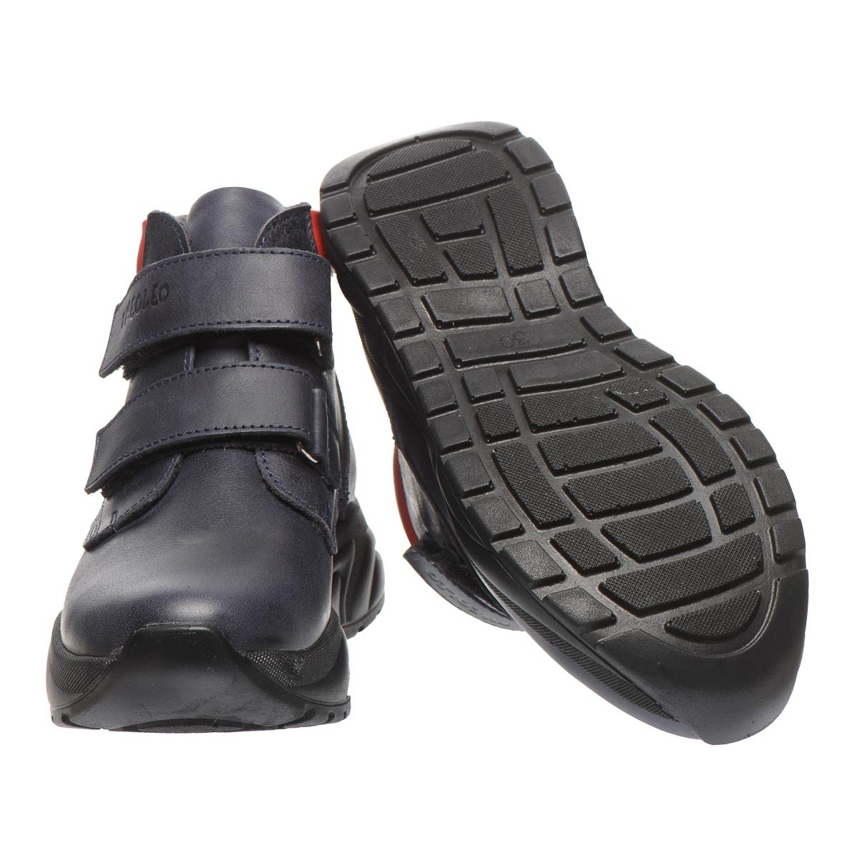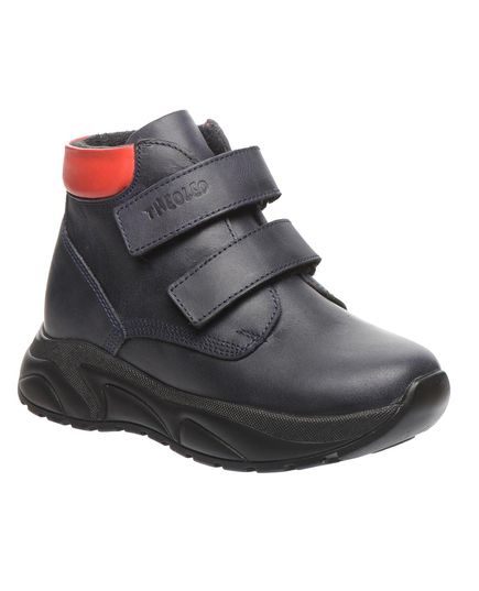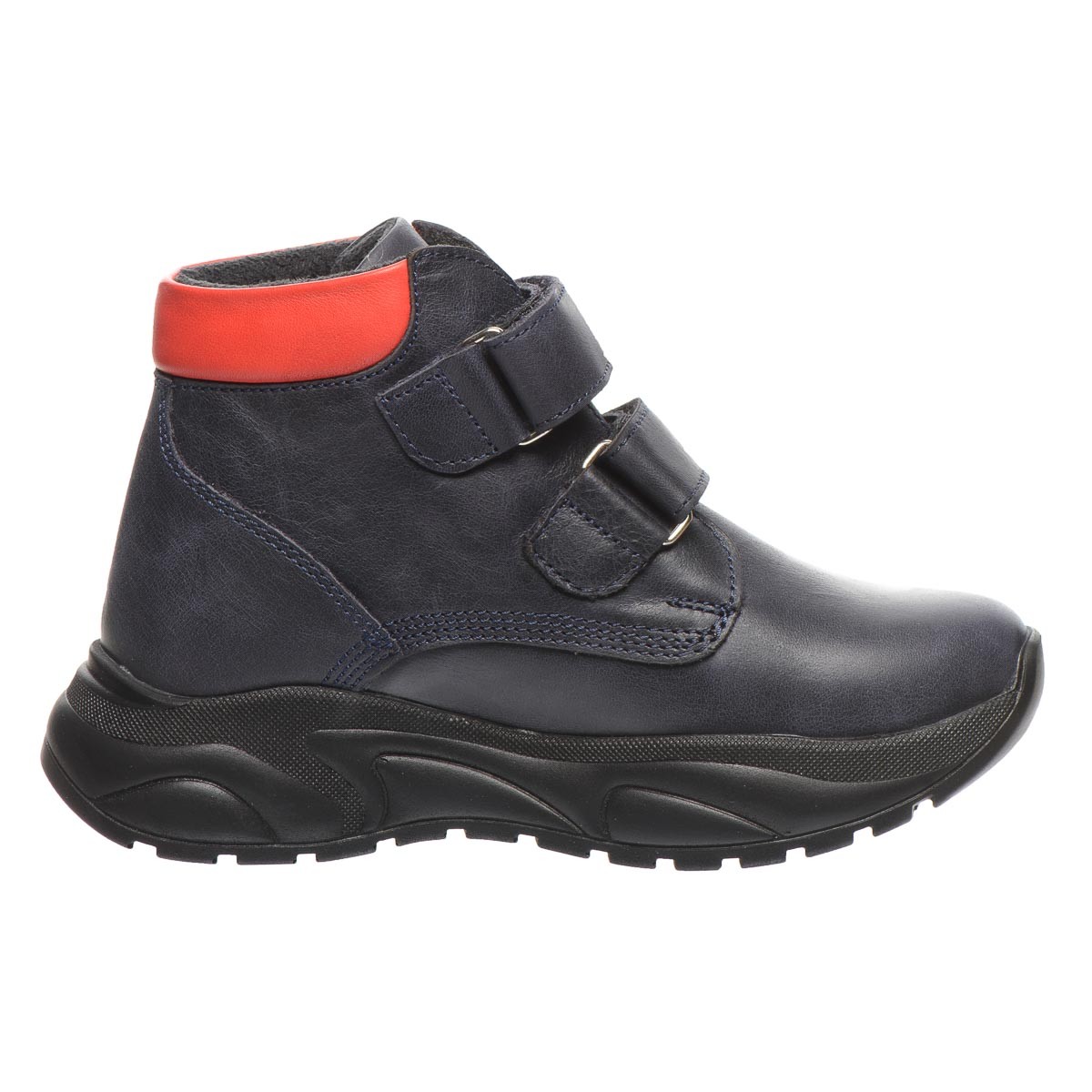 Детские демисезонные ботинки для мальчика изготовлены из натуральной синей кожи и утеплены мягким флисом для комфортного ношения в прохладные дни. Модель на спортивной подошве, которая обеспечивает отличное сцепление с поверхностью. Жесткий задник и стелька с супинатором способствует правильному положению стопы. Две липучки на застежке упрощают процесс обувания, что делает эти ботинки идеальным выбором для активных мальчиков. В такой паре обуви ваш сын станет настоящей звездой осеннего сезона.