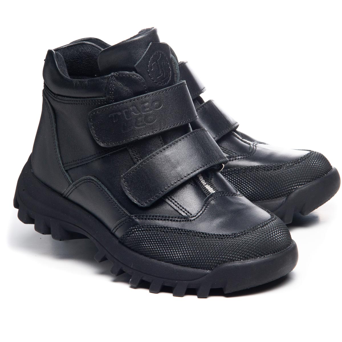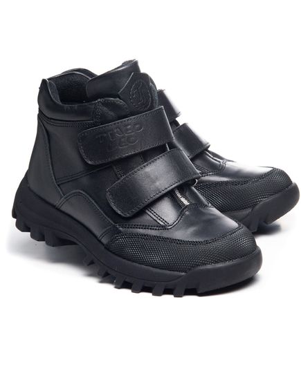 Очень стильные и практичные демисезонные ботинки, которые помогут создать безупречный осенний образ. Изготовлены из высококачественной натуральной кожи черного цвета, гармонирует с любым стилем. Надежные липучки сделают процесс обувания мгновенным и удобным. Защитная вставка на носке обеспечит долговечность ботинок, помогая сохранить их безупречный вид и защитить наиболее уязвимые участки от повреждений. Их внутренняя часть утеплена флисом, а стелька кожаная. Оптимальную поддержку для стопы обеспечит твердый задник и супинатор на стельке.
