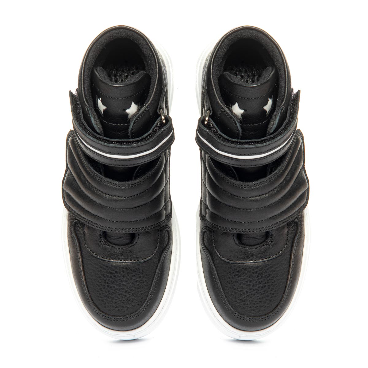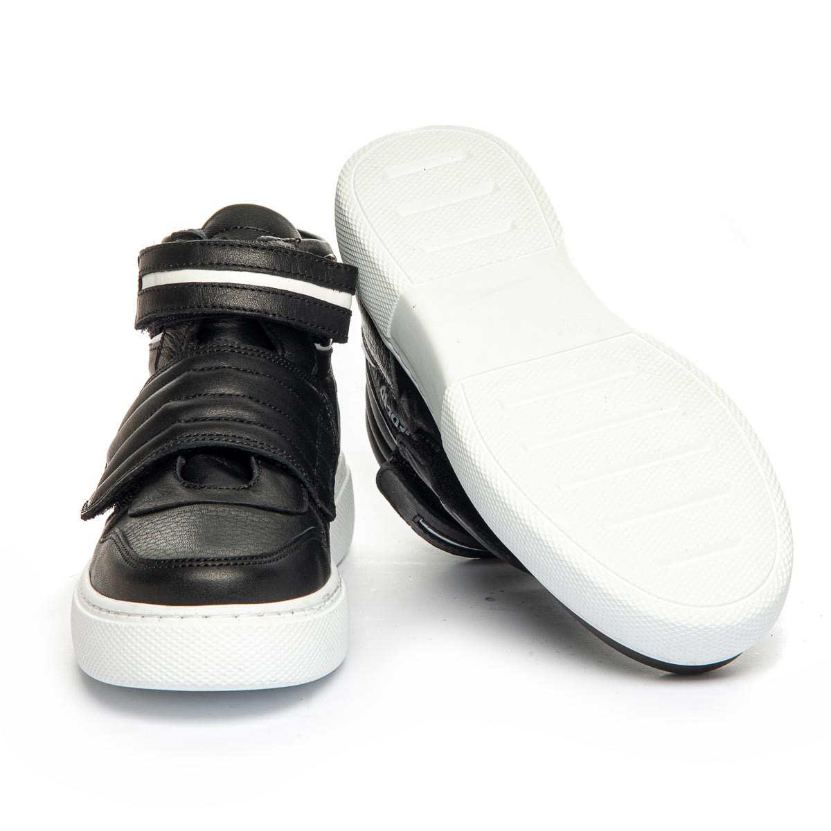 Стильные демисезонные ботинки, из натуральной кожи, идеально подойдут для активного времяпровождения в прохладную погоду. Удобная застежка на липучках не только добавляет спортивного шарма ботинкам, но и обеспечивает легкость и быстроту надевания. Внутренняя подкладка из мягкого флиса обеспечивает тепло, а стелька из натуральной кожи с супинатором поддержит здоровье детских ножек. Черный цвет идеально сочетается с любыми образами, позволяя легко комбинировать ботинки со стильными куртками, джинсами и т.д.