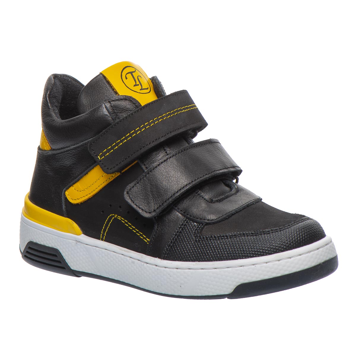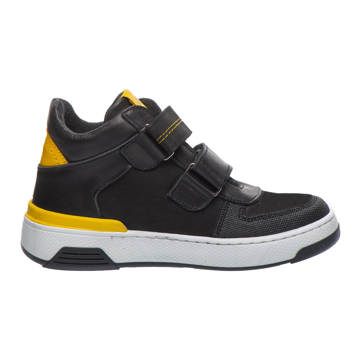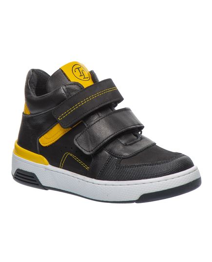Детские демисезонные кеды, утепленные мягким флисом, прекрасно подойдут для холодных и пасмурных дней осени или весны. Изготовлены из высококачественной натуральной кожи и нубука, основной цвет обуви - черный, а яркие желтые вставки создают эффектный контраст. Легкая и гибкая подошва, которая не скользит, гарантирует безопасность на любой поверхности. Благодаря ортопедическим элементам, таким как жесткий задник и анатомическая стелька, эти кеды поддерживают здоровое развитие детских ножек и обеспечивают комфорт во время каждого шага. Эта обувь сочетает стильный дизайн, тепло и заботу о здоровье, что делает их идеальным выбором для детей.