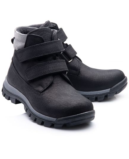 Демисезонные ботинки для мальчика выполнены из натуральной черной кожи, созданные в спортивном стиле. Благодаря удобным двум липучкам, они легко и надежно фиксируются на ножке. Внутренняя отделка - флис, который обеспечивает тепло, а стелька с супинатором из натуральной кожи. Подошва с глубоким протектором гарантирует надежное сцепление с любой поверхностью, делая эти ботинки идеальным выбором для любой погоды.