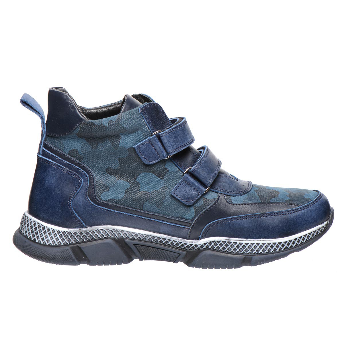 Ботинки из натуральной кожи в синем хаки цвете станут отличным выбором для демисезонного периода. Внутренняя подкладка из флиса обеспечивает тепло, а анатомическая стелька с супинатором - поддерживает здоровое развитие стопы. Благодаря двум липучкам обувание становится быстрым и комфортным. Подошва из термопластичной резины не скользит и хорошо амортизирует.