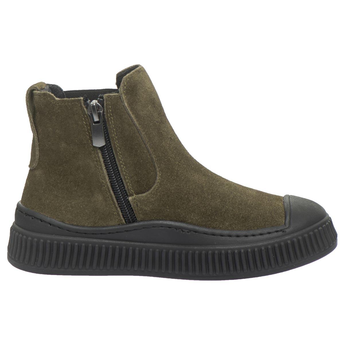 Демисезонные ботинки в стиле челси из натурального нубука - стильная и практичная модель в нейтральном цвете, которая подойдет и девочкам, и мальчикам. Мягкий верх гарантирует комфорт, а флисовая подкладка добавляет тепла в прохладную погоду. Стелька выполнена из натуральной кожи и оснащена анатомическим супинатором для правильного формирования стопы и максимального комфорта. Молния сбоку облегчает обувание, а защищенный носок повышает износостойкость обуви.  Подошва легкая и устойчивость к износу. Идеальное сочетание стиля, комфорта и долговечности.