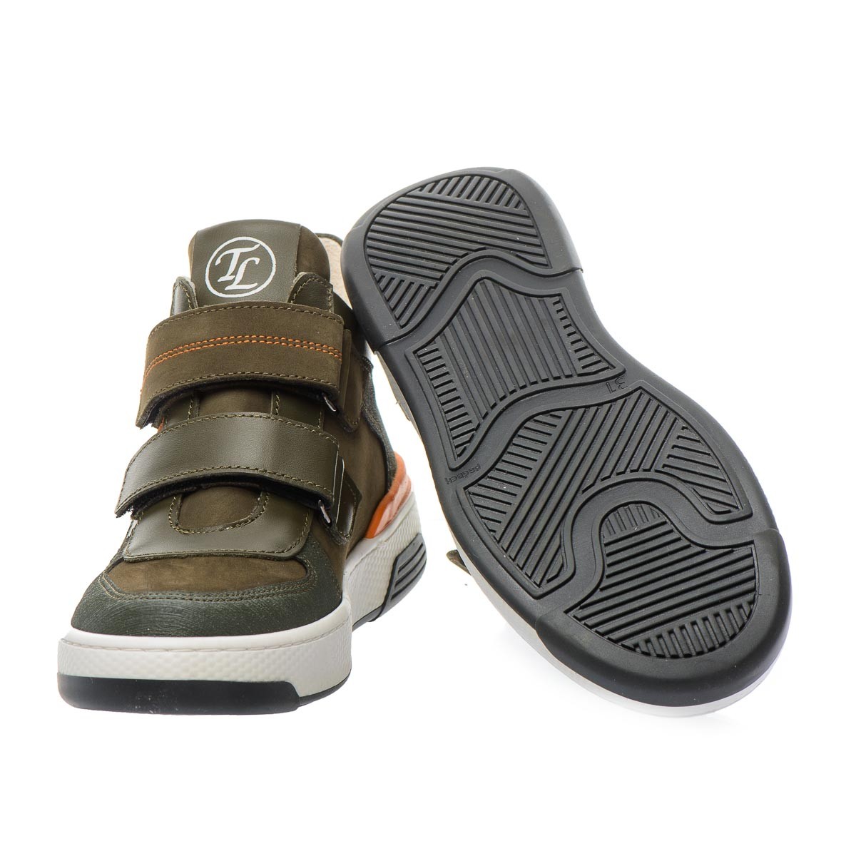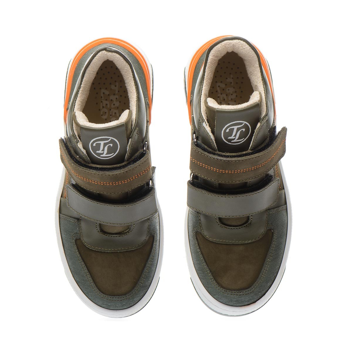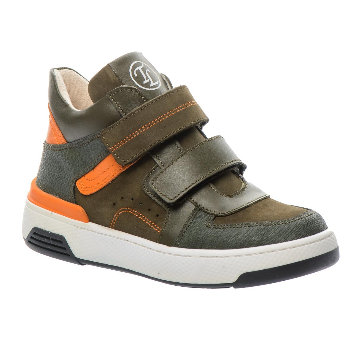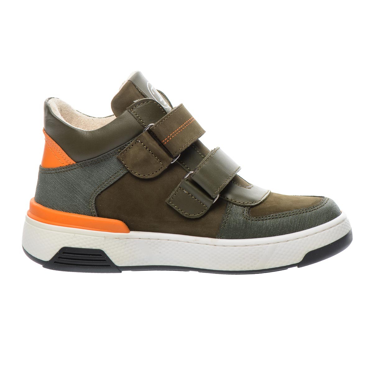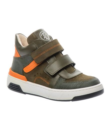 Стильные демисезонные ботинки для мальчика, сочетающие современный дизайн и ортопедические элементы. Изготовленные из натуральной кожи и нубука, они обеспечивают комфорт благодаря жесткому заднику, стельке с подушечкой-супинатором. Быстрое обувание гарантируют застежки-липучки. Цвет хаки и контрастные оранжевые вставки и декоративные швы придают эффектный вид, а носок и пятка укреплены материалом «неубивайка» для дополнительной защиты.