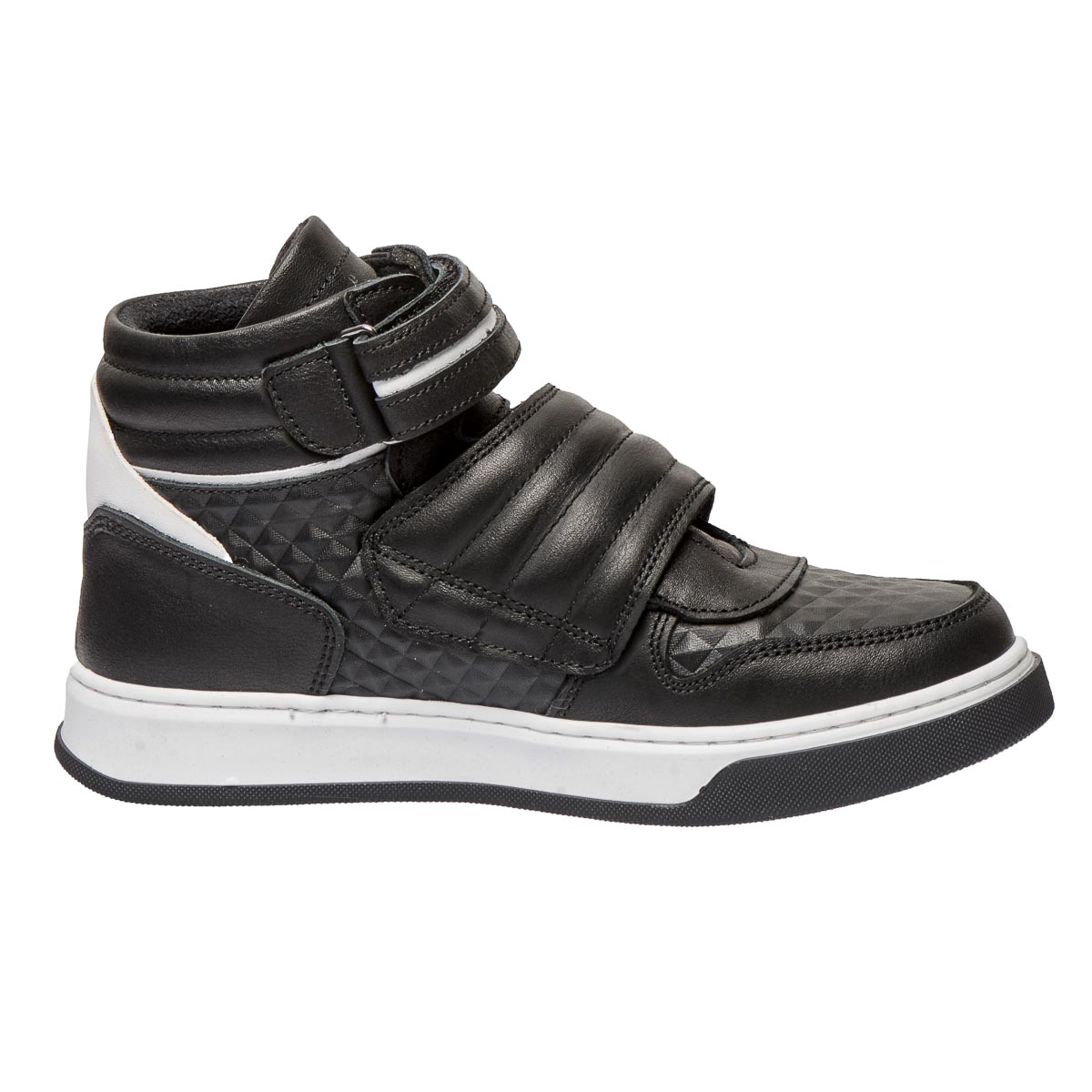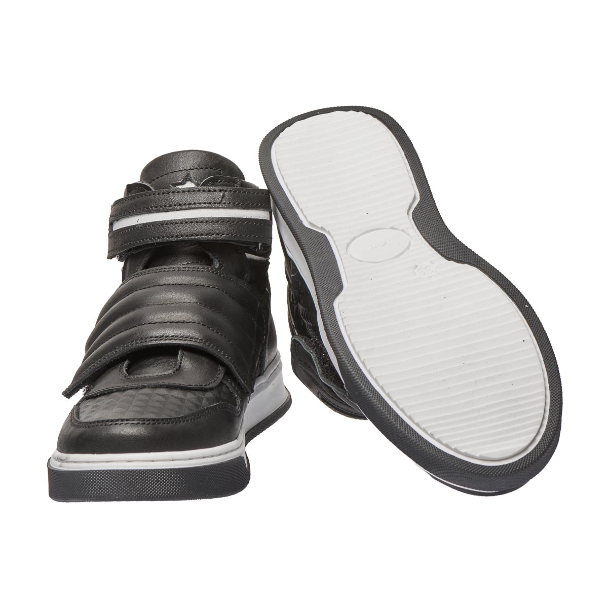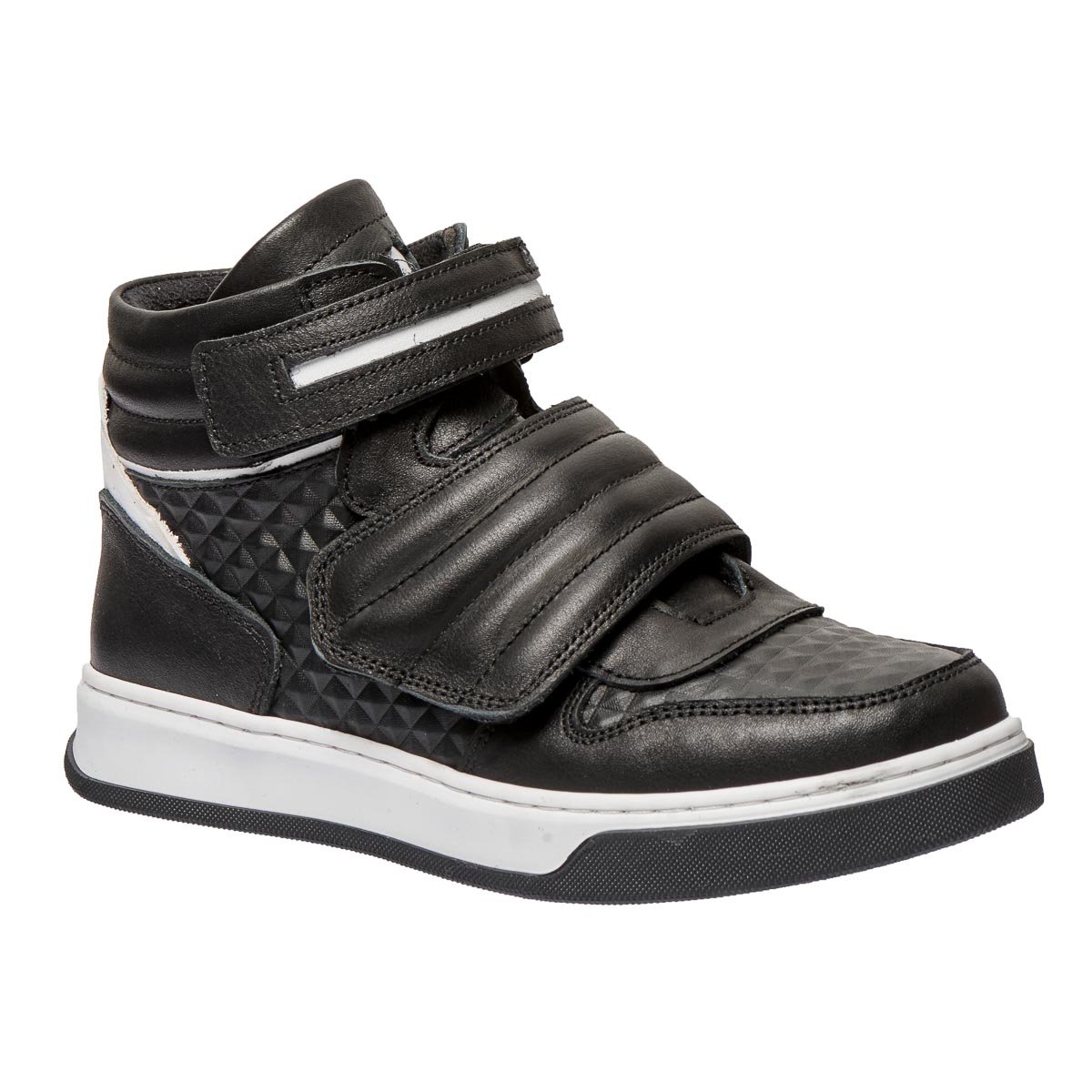 Детские демисезонные ботинки черного цвета с белыми вставками, оснащенные застежками на липучках, - идеальный выбор для прохладной погоды. Изготовленные из высококачественной натуральной кожи, они обеспечивают как долговечность, так и комфорт. Ботинки имеют ортопедические элементы: жесткий задник, поддерживающий пятку в правильном положении, и ортопедическая стелька с супинатором. Легкая, гибкая, нескользящая подошва гарантирует стабильность и удобство при ходьбе, позволяя ребенку двигаться уверенно и легко.