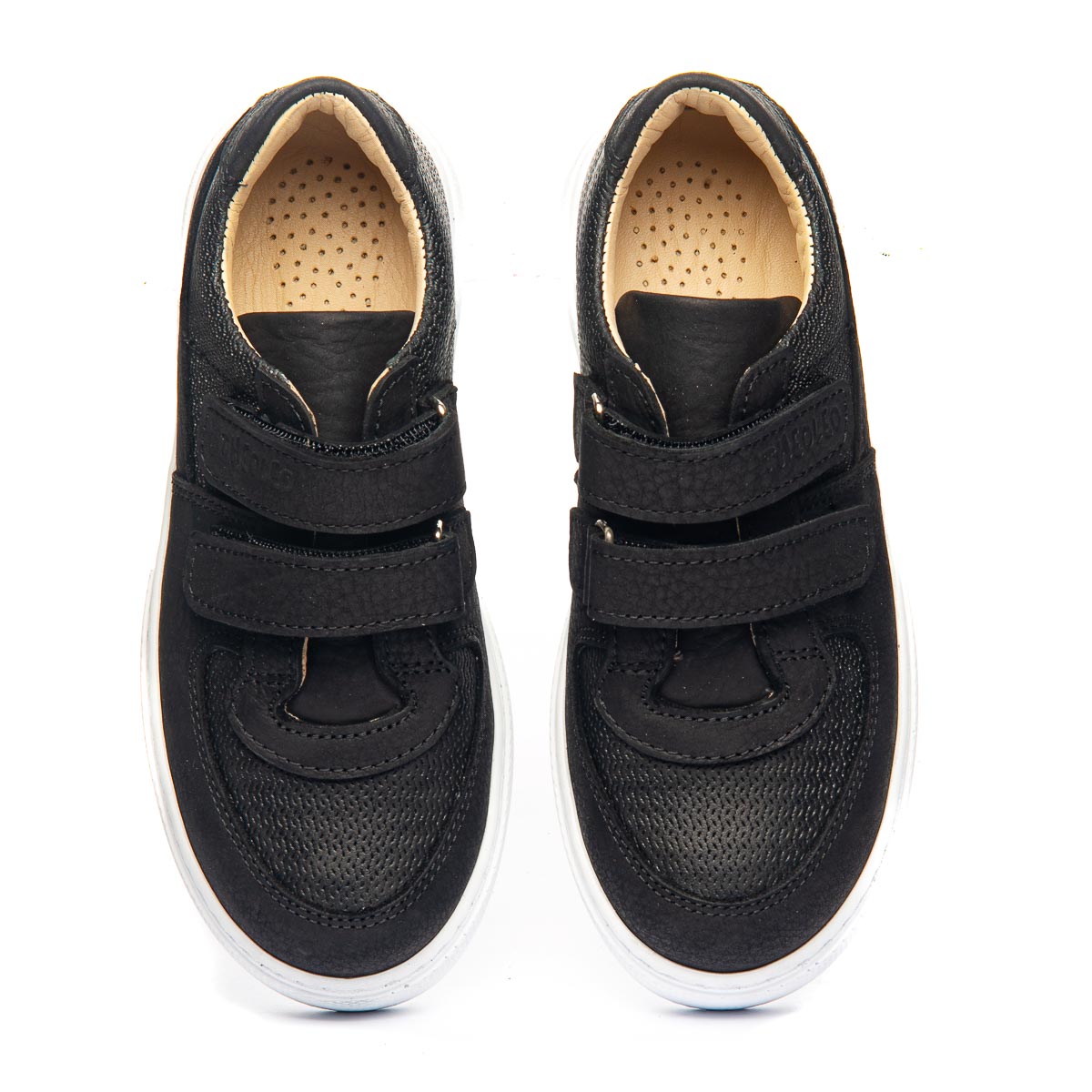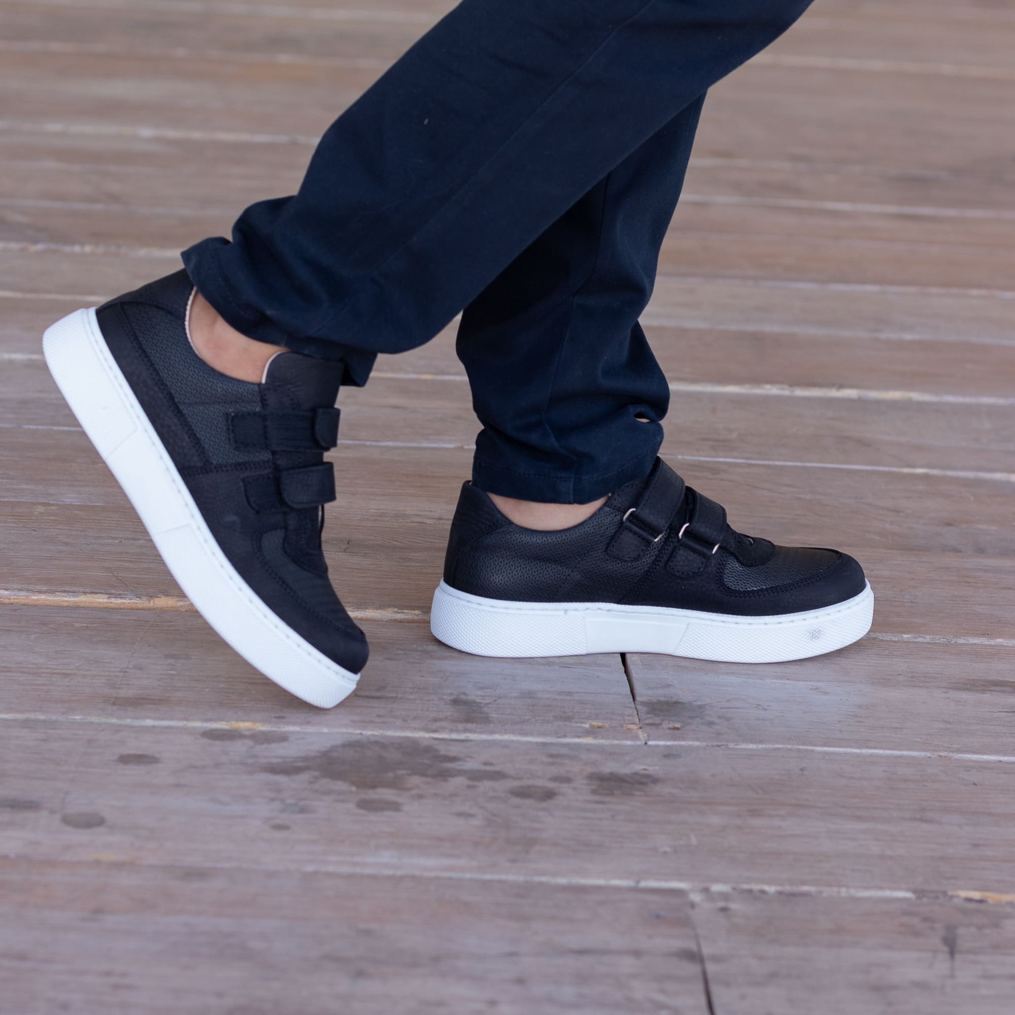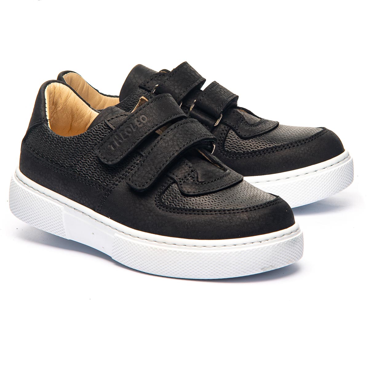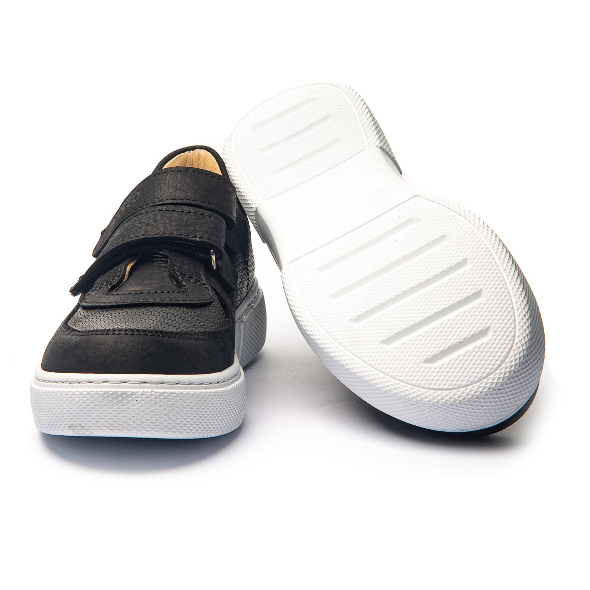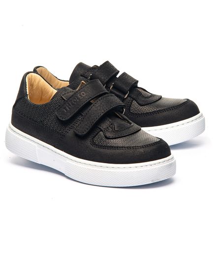 Стильные и удобные кеды из натуральной кожи черного цвета. Имеют элегантный дизайн и двойные липучки, что обеспечивает легкую и быструю фиксацию обуви по ножке. Белая подошва не только контрастирует с черным цветом верха, но и обеспечивает отличную амортизацию и износостойкость, что делает эти кеды идеальным выбором для активных детей. Анатомический супинатор снимает лишнюю нагрузку с ног, способствуя правильному развитию стоп. Прекрасно подойдут для повседневного использования, например в школе: обеспечат комфорт при ходьбе, поддержат здоровье ножек и, конечно, прикуют взгляды своей стильностью.