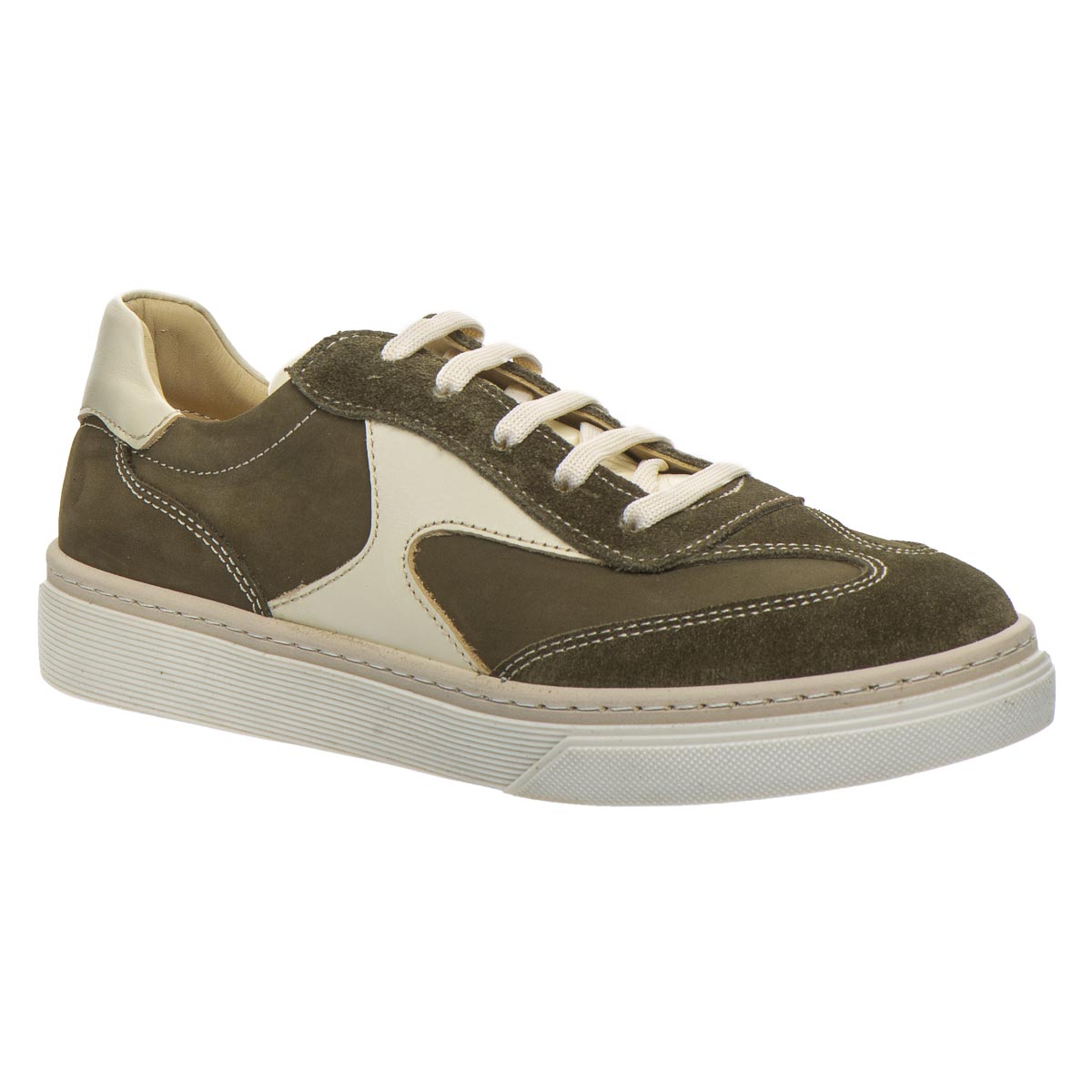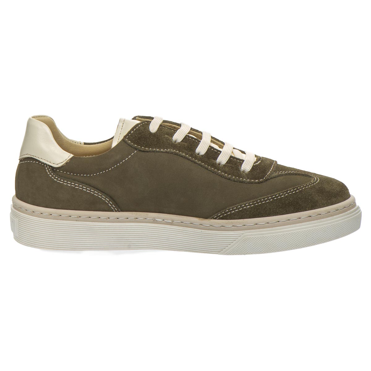 Эти кеды - удачное сочетание лаконичного дизайна, натуральных материалов и заботы о здоровье ног. Универсальный цвет хаки легко подходит к любому гардеробу. Материалы: натуральная кожа и нубук - прочные, дышащие и приятные на ощупь. Комфорт и поддержка: ортопедическая стелька с супинатором снимает нагрузку с ног, а укрепленная пятка фиксирует стопы для правильного положения. Шнуровка позволяет идеально регулировать фиксацию на ноге, а сдержанный, но стильный вид делает эту модель универсальной - от повседневных образов до городского casual.