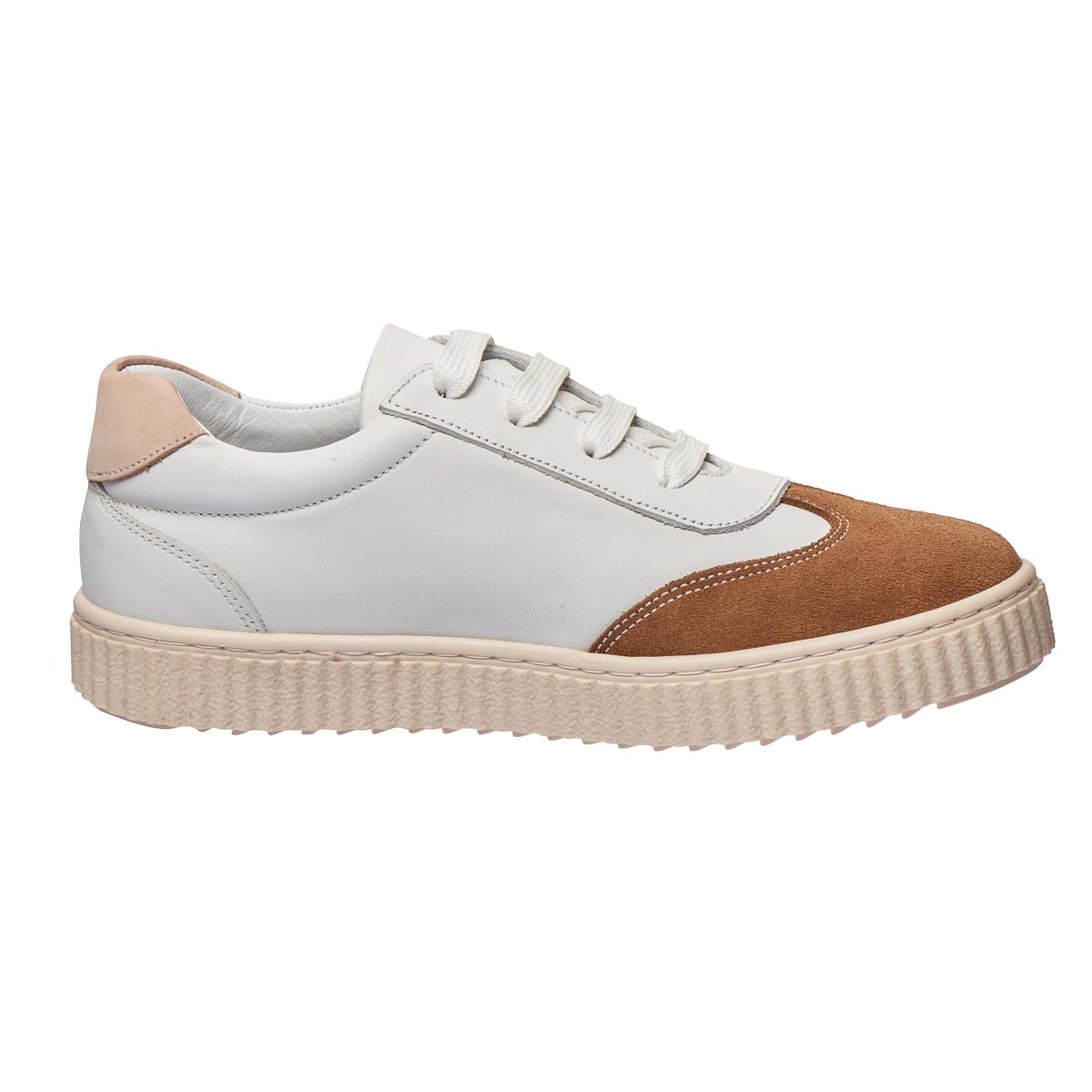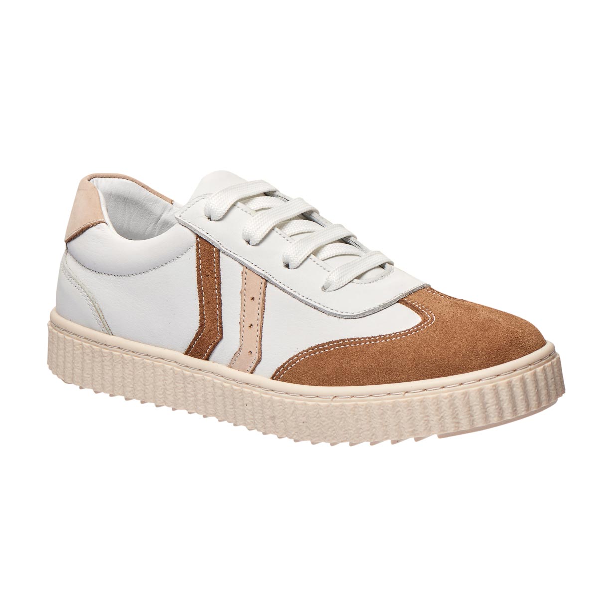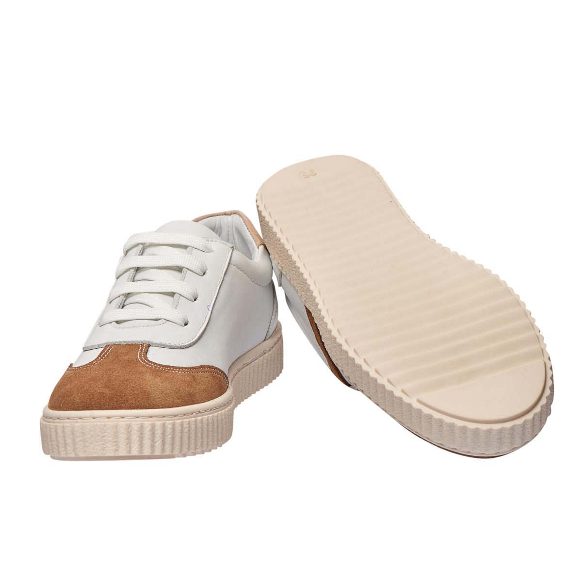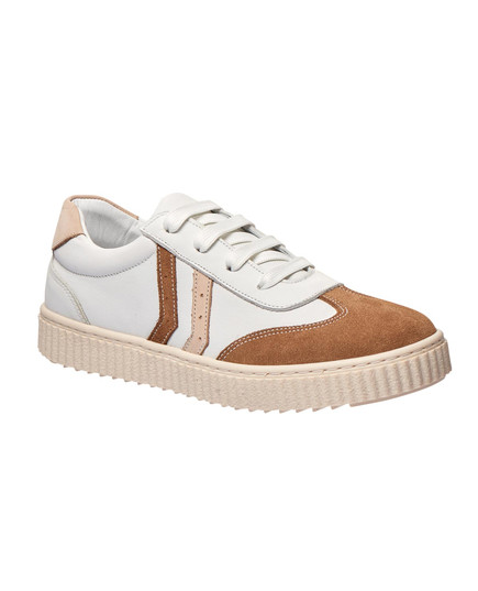 Модные детские кеды отличаются яркой цветовой гаммой, состоящей из оттенков бежевого и белого. Изготовлены из натуральной кожи и нубука, они имеют классическую шнуровку для надежной фиксации. Гибкая подошва из термопластичной резины вместе с комфортной анатомической стелькой обеспечивают отличный уровень комфорта в течение всего дня. Эти кеды сочетают стильный дизайн и высокий уровень удобства.