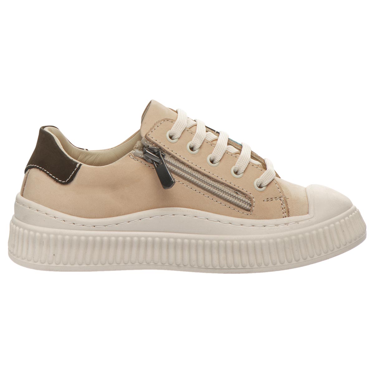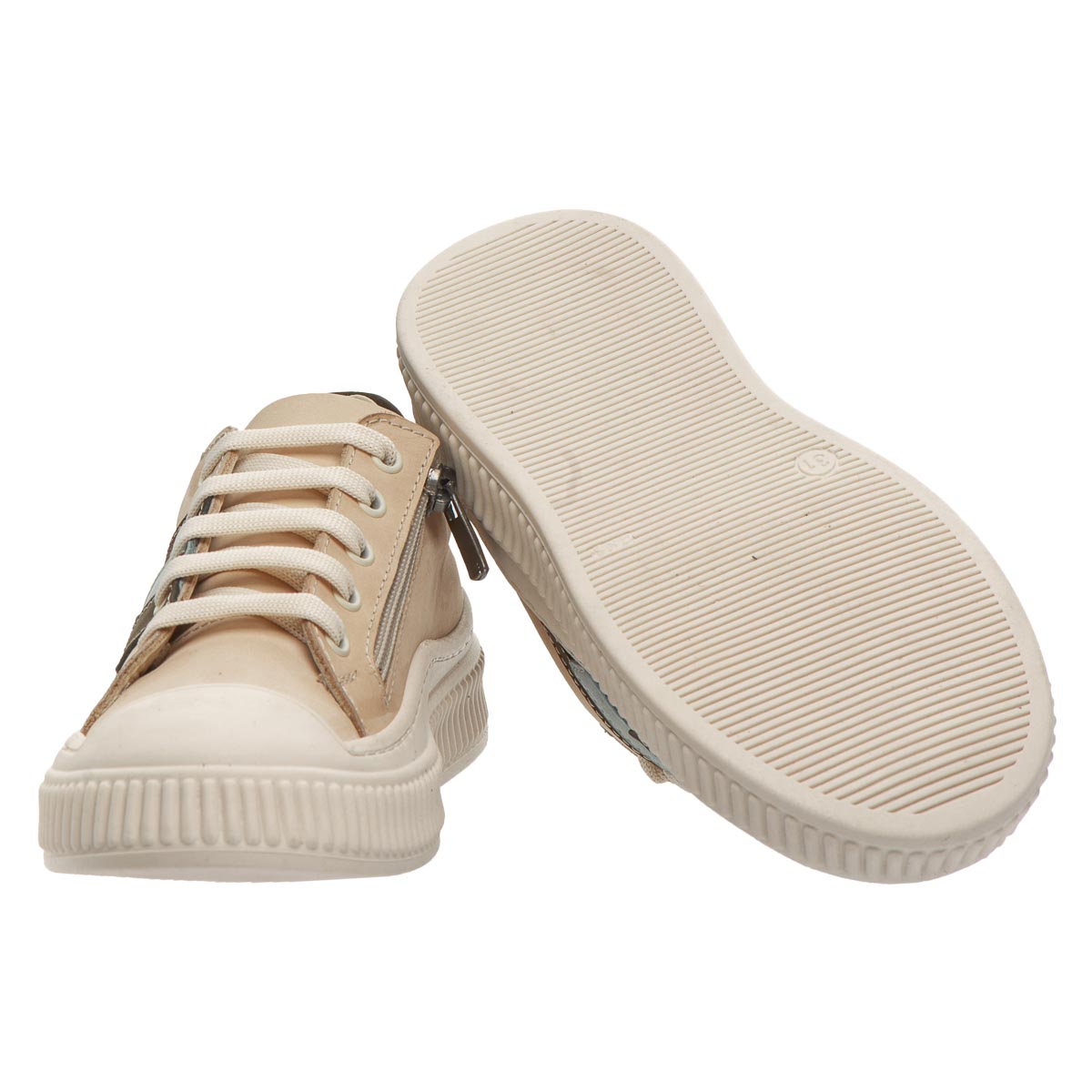 Детские кеды в бежевых тонах - это сочетание элегантности и стиля. Мягкий натуральный нубук не только дарит приятные ощущения на ощупь, но и обеспечивает идеальный микроклимат для детских ножек, сохраняя комфорт в течение всего дня. Удобство: кроме шнурков, кеды оснащены молнией, что делает их легкими в использовании даже для самых маленьких. Ортопедическая поддержка: анатомическая стелька с супинатором способствует правильному развитию ножек и обеспечивает поддержку в нужных точках. Безопасность и стабильность: термопластичная резина на подошве гарантирует отличное сцепление, делая каждый шаг стабильным и безопасным.