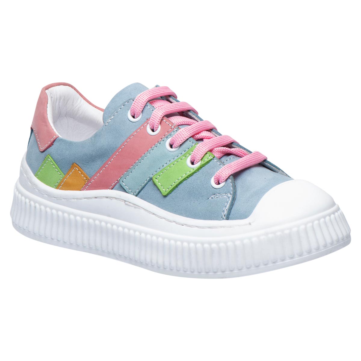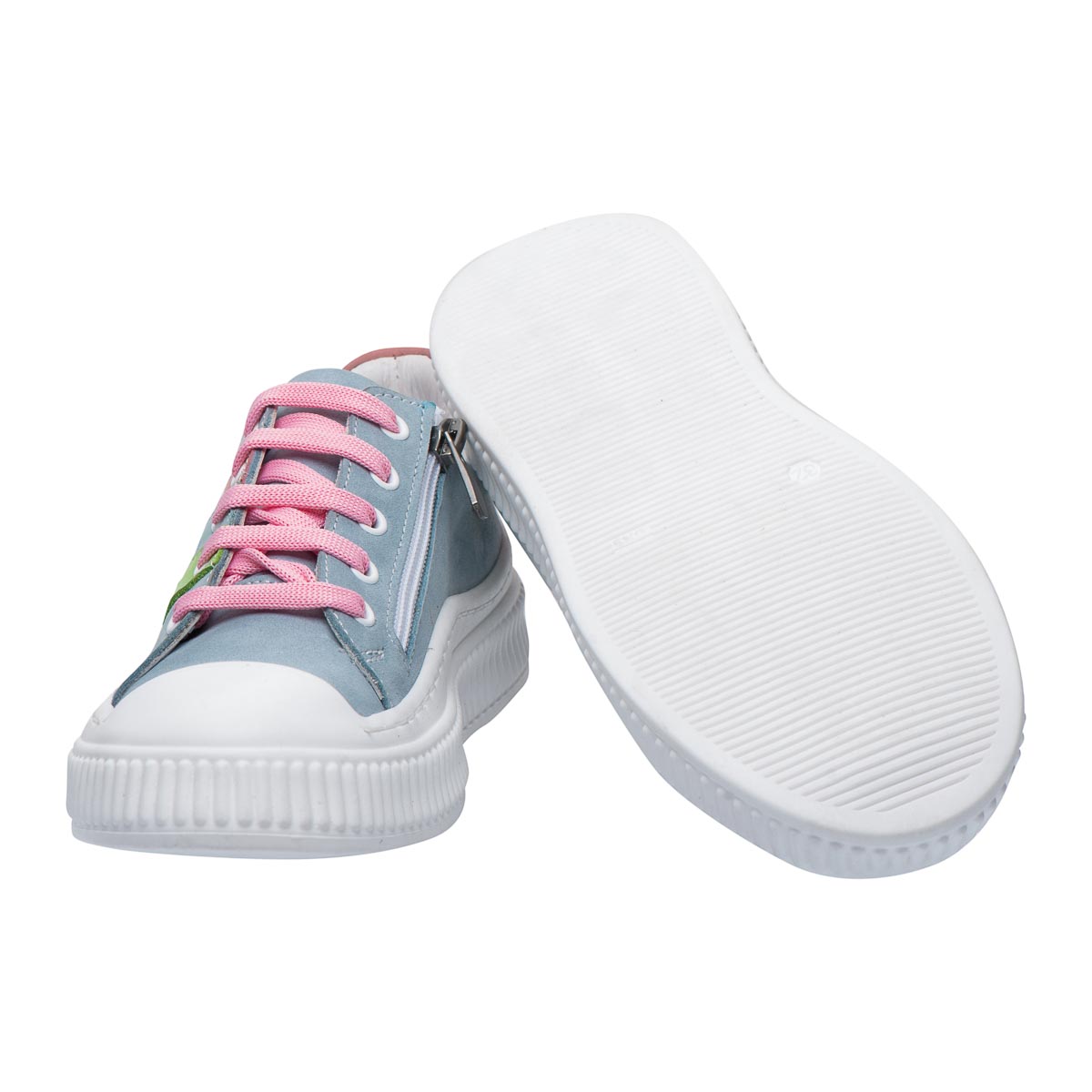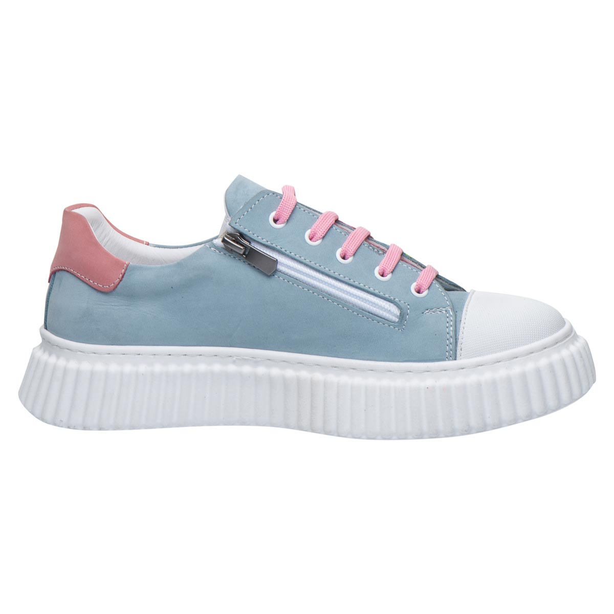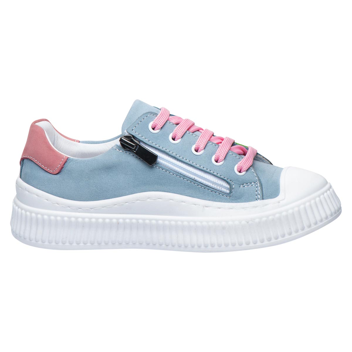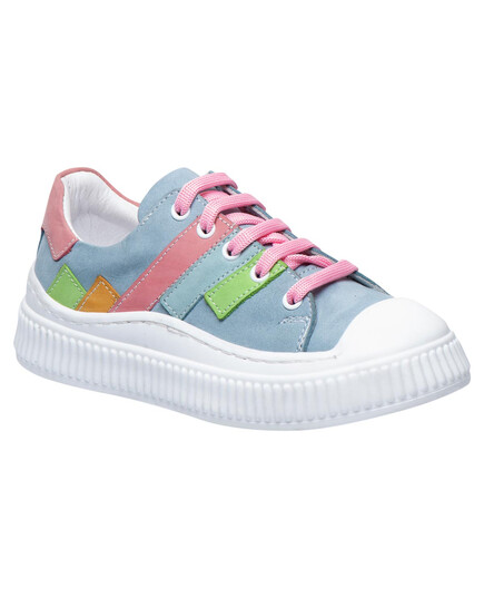 Кеды для девочек из нубука в нежно-голубом оттенке с цветными вставками. Натуральный нубук отличается мягкостью, приятен на ощупь и помогает поддерживать оптимальный микроклимат для детских ножек. Для удобства модель сочетает шнуровку и молнию, что позволяет легко обуваться даже самым маленьким. Анатомическая стелька с супинатором и твердый задник обеспечивают правильное развитие стопы и необходимую поддержку. Подошва из термопластичной резины дарит надежное сцепление с поверхностью, гарантируя устойчивость и надежность движений.