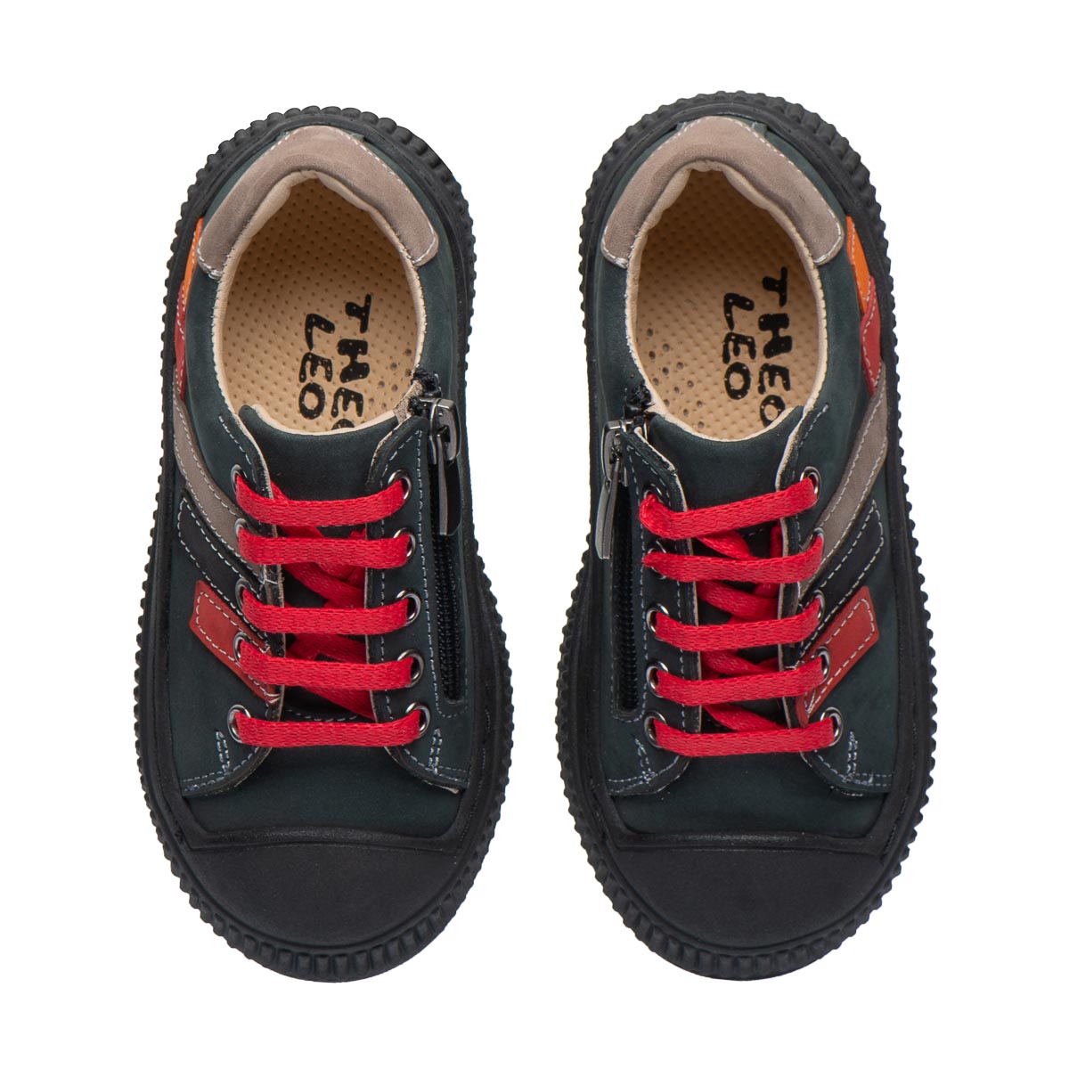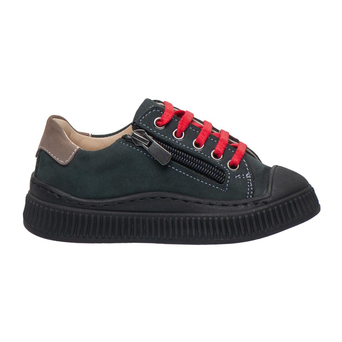 Кеды для мальчиков из натурального нубука графитового цвета с красными шнурками. Мягкий нубук приятен на ощупь и создает комфортный микроклимат для детских ножек в течение всего дня. Для удобства модель оснащена шнуровкой и молнией, что делает обувание простым и быстрым. Анатомическая стелька с супинатором и твердый задник способствуют правильному формированию стопы и обеспечивают необходимую поддержку. Подошва из термопластичной резины гарантирует надежное сцепление с поверхностью, даря стабильность и уверенность в каждом шаге.