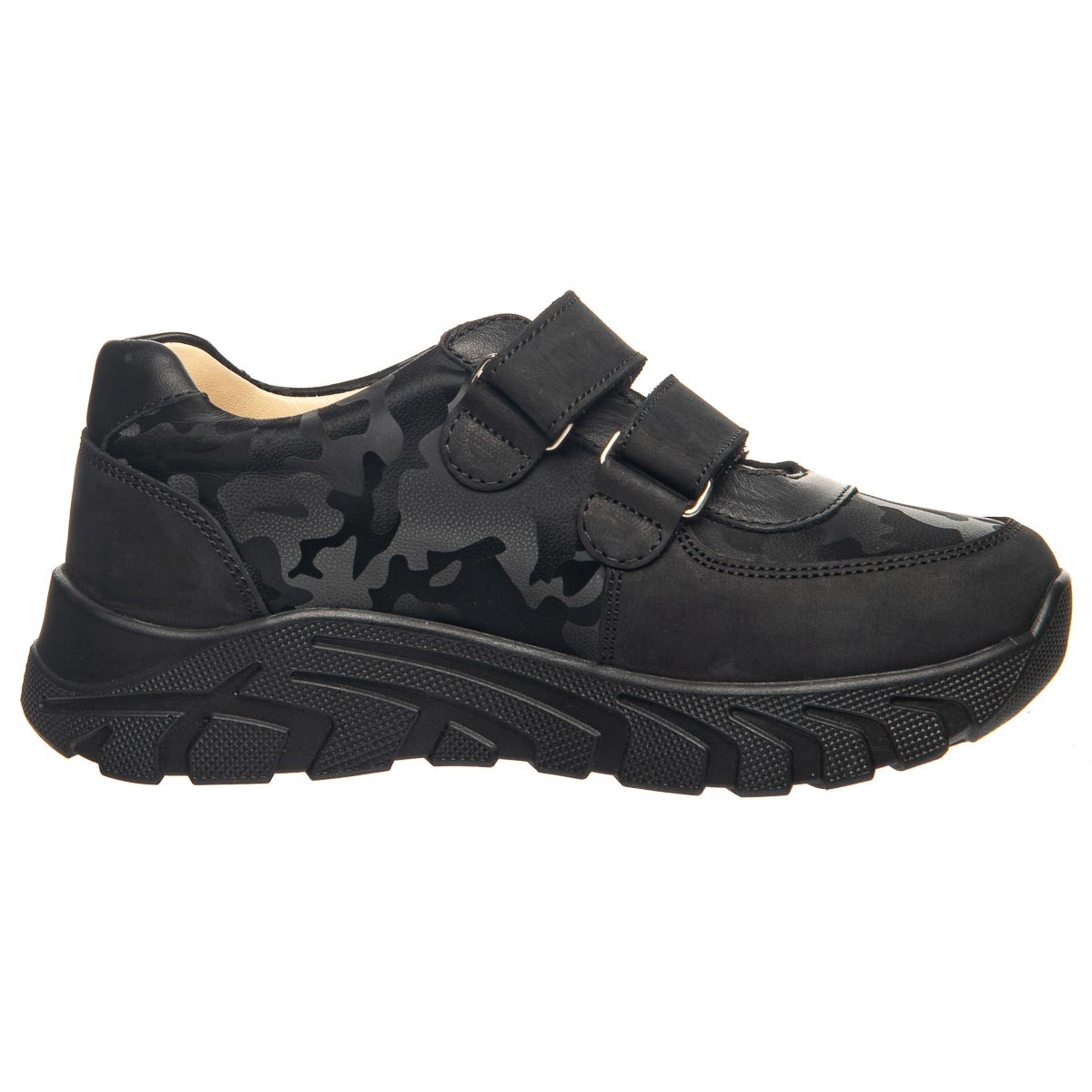 Кроссовки из натуральной кожи и нубука с модной милитари расцветкой. Эта модель оснащена двумя липучками, что обеспечивает быстрое и удобное обувание. Стелька и подкладка из натуральной кожи создают комфортные условия для ножек, а анатомический супинатор поддерживает правильное развитие стоп. Удобная подошва обеспечивает максимальный комфорт и надежное сцепление, не скользя на различных поверхностях.