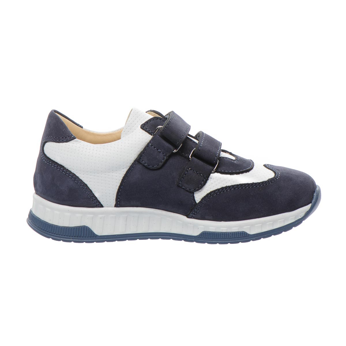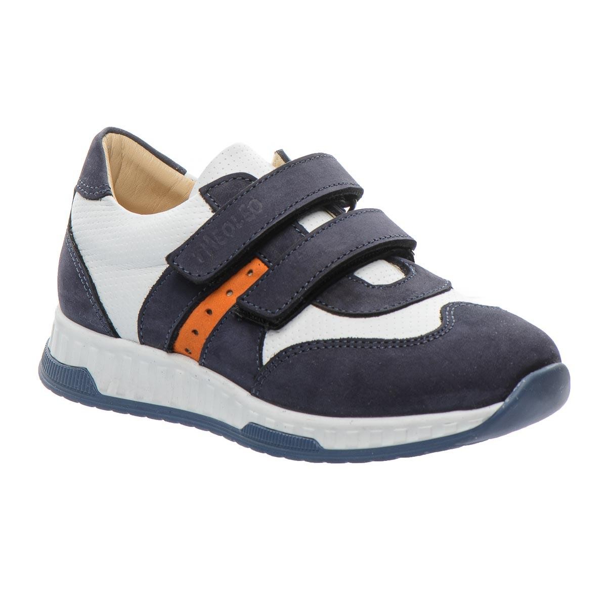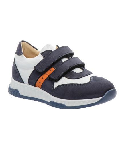 Кроссовки для мальчика выполнены из натурального нубука, их бело-синий дизайн с яркими оранжевыми вставками делает обувь эффектной и стильной. Две липучки-застежки позволяют легко надевать и снимать обувь. Ортопедическая стелька с анатомическим супинатором поддерживает правильное положение стопы, уменьшая нагрузку на суставы и мышцы. А жесткий задник оказывает дополнительную поддержку. Подошва из термопластичной резины. Ваш ребенок будет в восторге от такой стильной обуви.