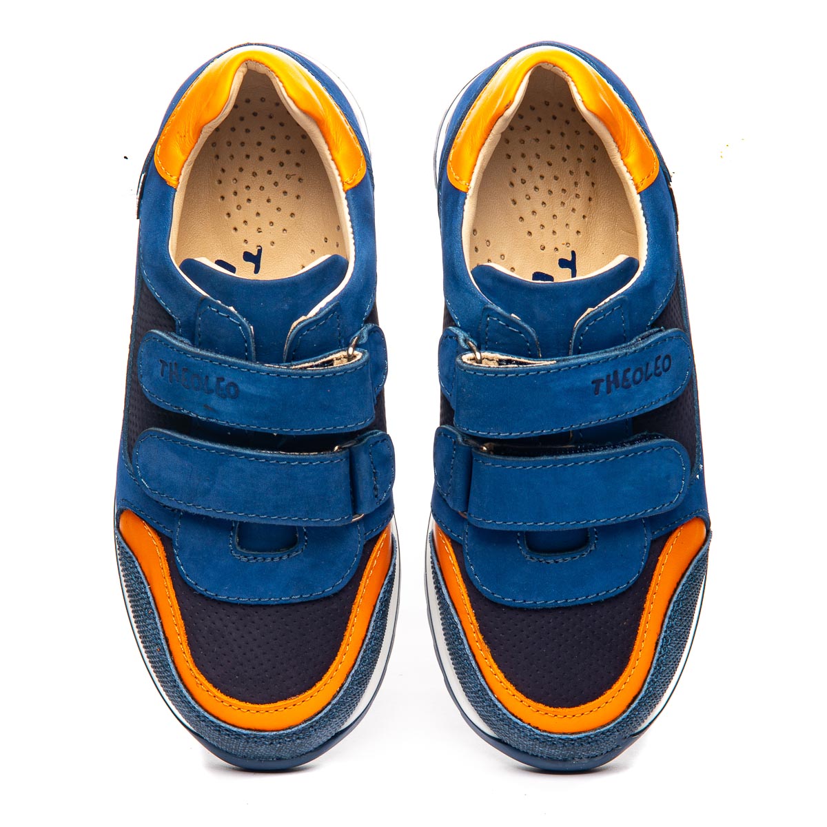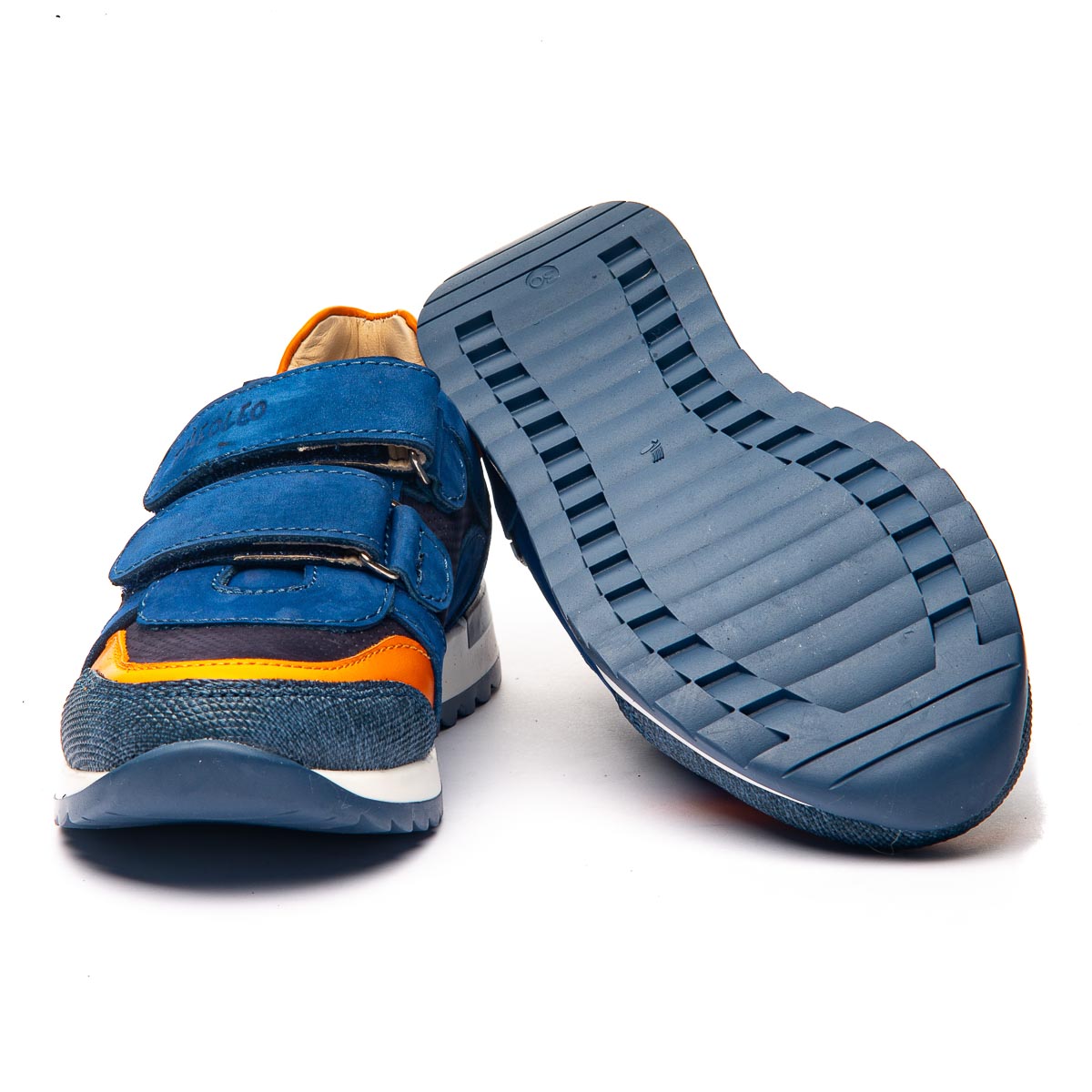 Эта яркая модель кроссовок синего и оранжевого цветов, привлекает внимание и придает индивидуальности каждому образу. Изготовлены из натурального нубука, имеют защитную дугу на носовой части обуви. Способ застегивания кроссовок это всего две липучки. Подошва из термопластичной резины. Кроссовки имеют специальные свойства, направленные на обеспечение здорового развития ножек вашего ребенка. Стелька с анатомическим супинатором обеспечивает правильное положение стопы, а жесткий задник оказывает дополнительную поддержку. Кроссовки станут отличным дополнением к спортивному или кэжуальному образу вашего ребенка.