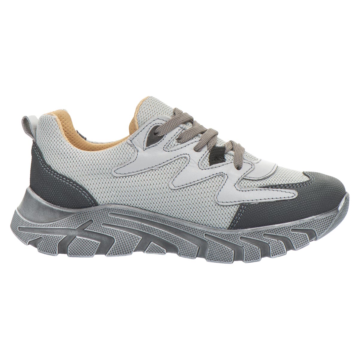 Модель изготовлена в сочетании натуральной кожи и текстиля, что обеспечивает комфорт, а долговечность обеспечит усиленная вставка в области носка, которая защищает обувь от износа. Стильная палитра из нескольких оттенков серого делает обувь универсальной для ежедневного использования. Внутри - ортопедическая стелька с анатомическим супинатором, что способствует здоровому формированию стопы и снижает нагрузку на мышцы и суставы. Жесткий задник обеспечивает дополнительную стабилизацию. Идеально подойдут как для школы, так и для прогулок в свободное время.