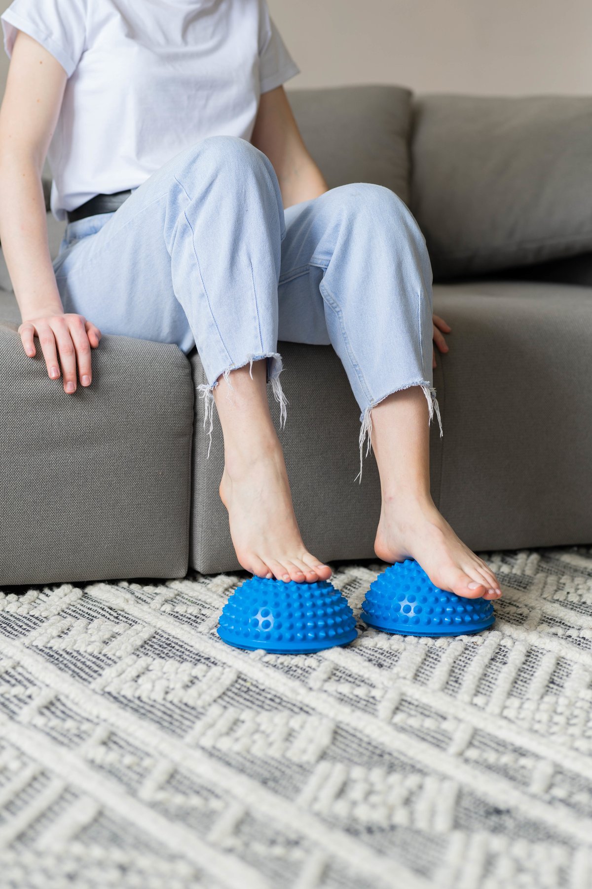 Массажер-полусфера игольчатая широко используется для массажа и рефлексогенного воздействия на подошвенную поверхность стоп. Шипы стимулируют нервные окончания и расслабляют. Также эффективна она для тренировки вестибулярного аппарата на равновесие и координацию движений. Их используют не только для активно-пассивного массажа стоп, но и для разработки голеностопного сустава.