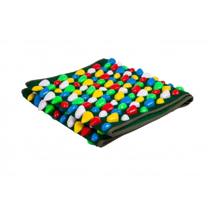 Ортопедический массажный коврик (дорожка с «камешками») изготовлен в виде дорожки из плотной ткани, на которой надежно закреплены рельефные пластиковые элементы. Благодаря имитации морской гальки изделие эффективно воздействует на акупунктурные точки стопы, стимулирует кровообращение и быстро снимает усталость ног.