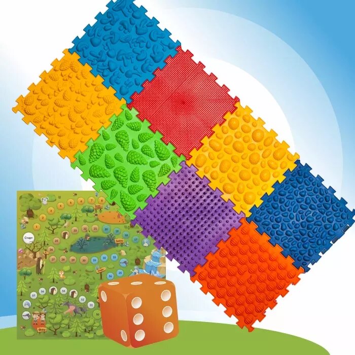 Массажный коврик-пазл «Микс» (8 модулей) + игра «Лесные приключения»