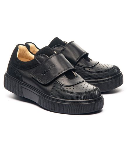 Детские мокасины для мальчика, изготовленные из натуральной кожи черного цвета. В качестве застежки - одна удобная липучка. Прорезиненная накладка на носовой части обуви - это не только стильная деталь, но и функциональный элемент, который предназначен для защиты обуви от сбивания, что продлевает ее срок службы. Стелька кожаная с анатомическим супинатором. Твердый задник обуви помогает удерживать пятку в стабильном и правильном положении. Эта уникальная модель обуви с легкостью дополнит любой образ.