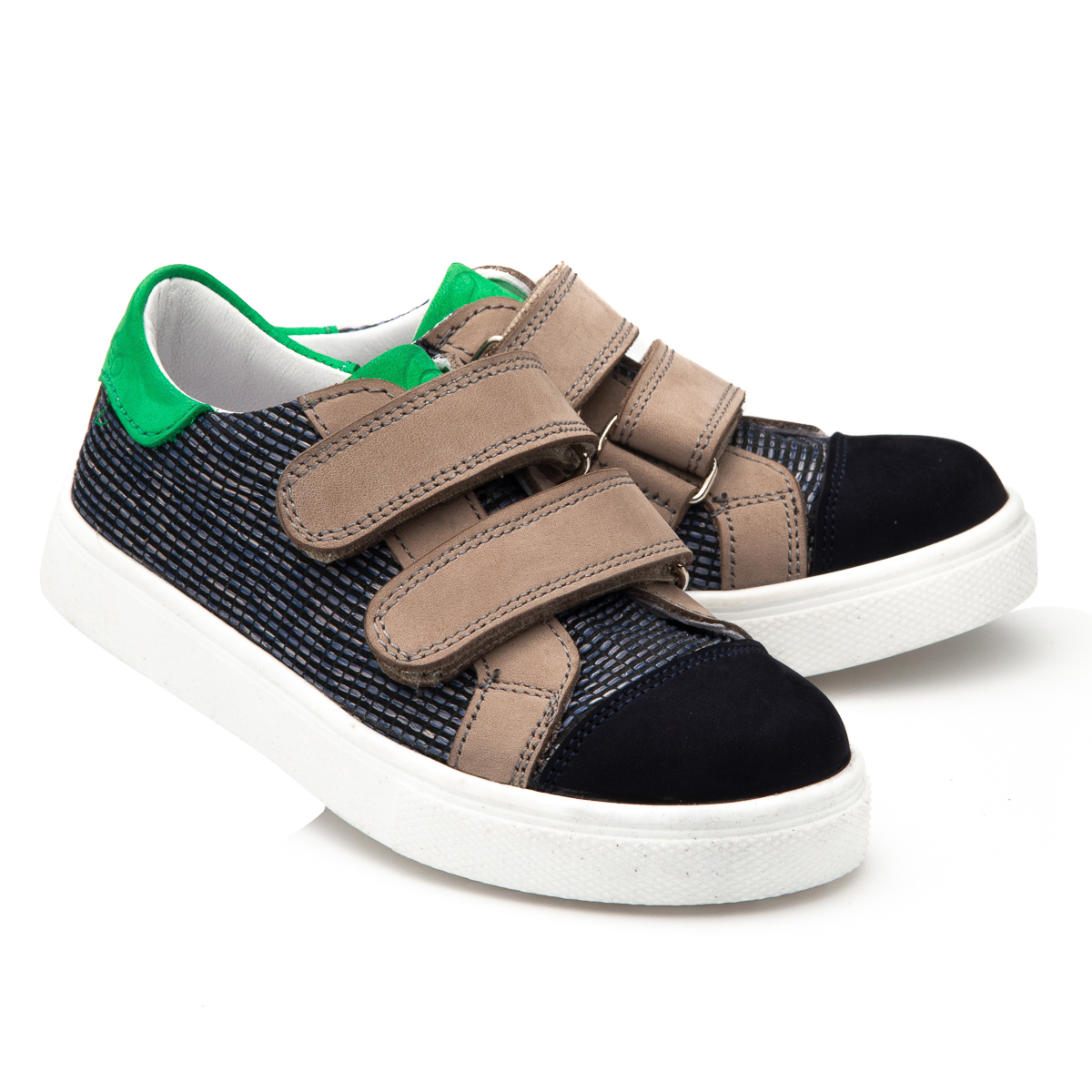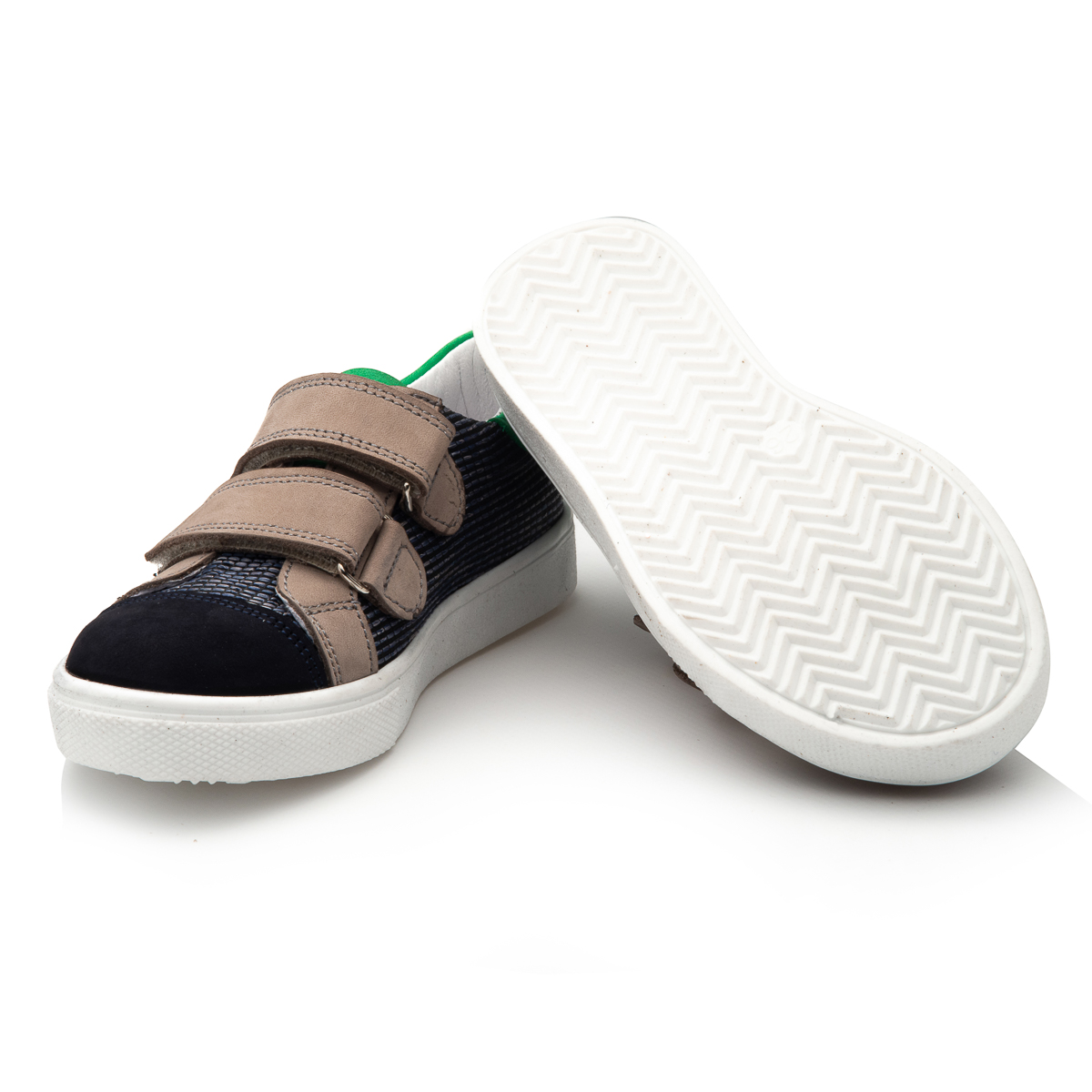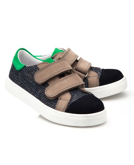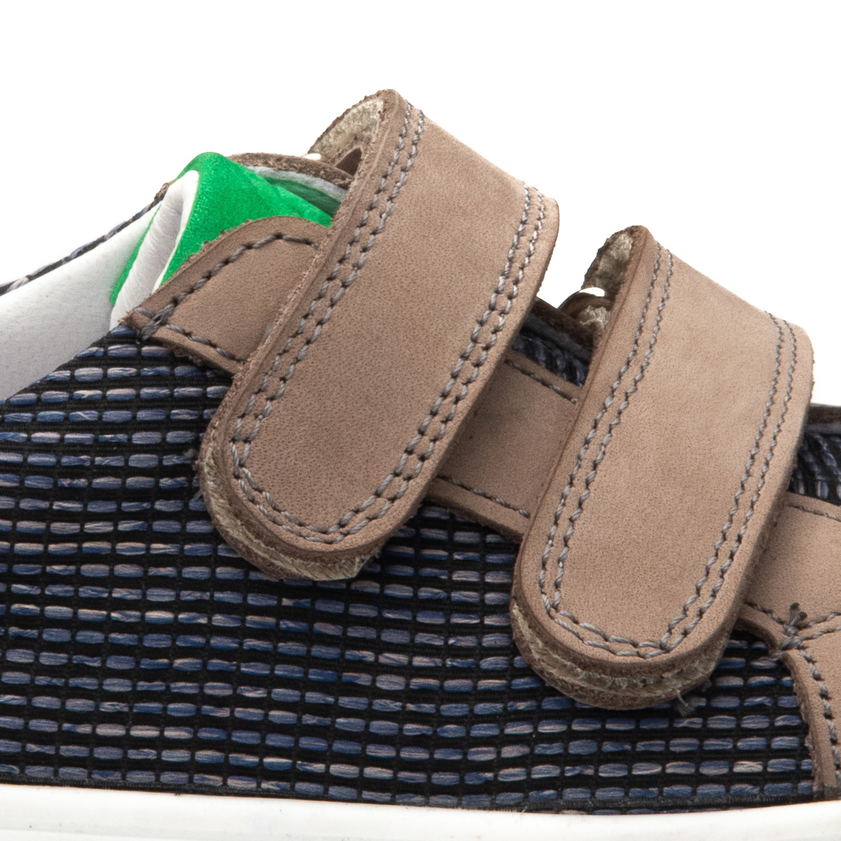 Мокасины для мальчиков, выполненные из высококачественного текстильного материала серо-черного цвета и натурального нубука - снаружи, и полностью кожаные внутри. Две удобные липучки позволяют легко надевать и снимать обувь, а также обеспечивают надежную фиксацию на ноге. Стелька с анатомическим супинатором способствует правильному формированию стопы. Подошва гибкая из термопластичной резины. Эти мокасины станут отличным выбором для вашего маленького мальчика в прохладные осенние и весенние дни.