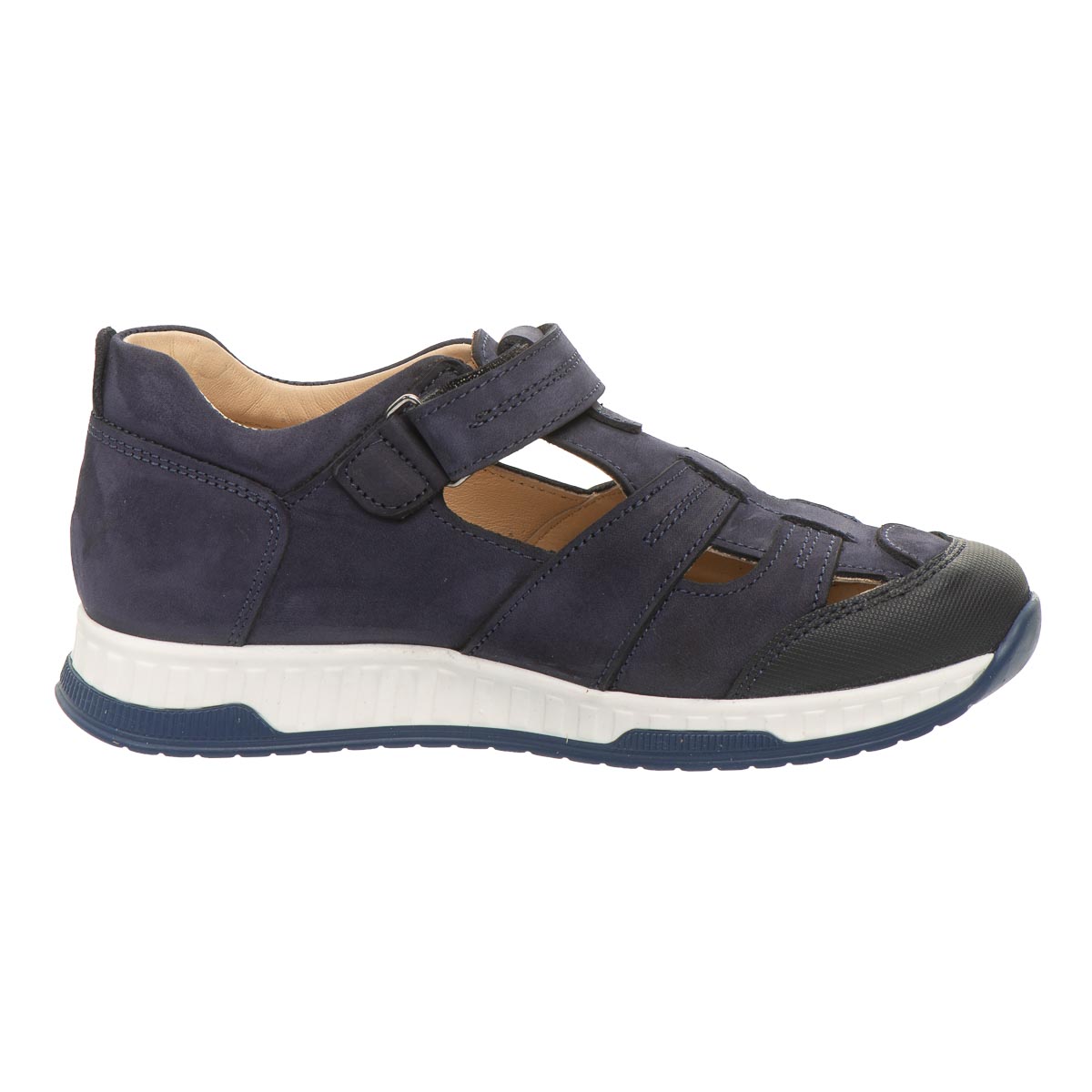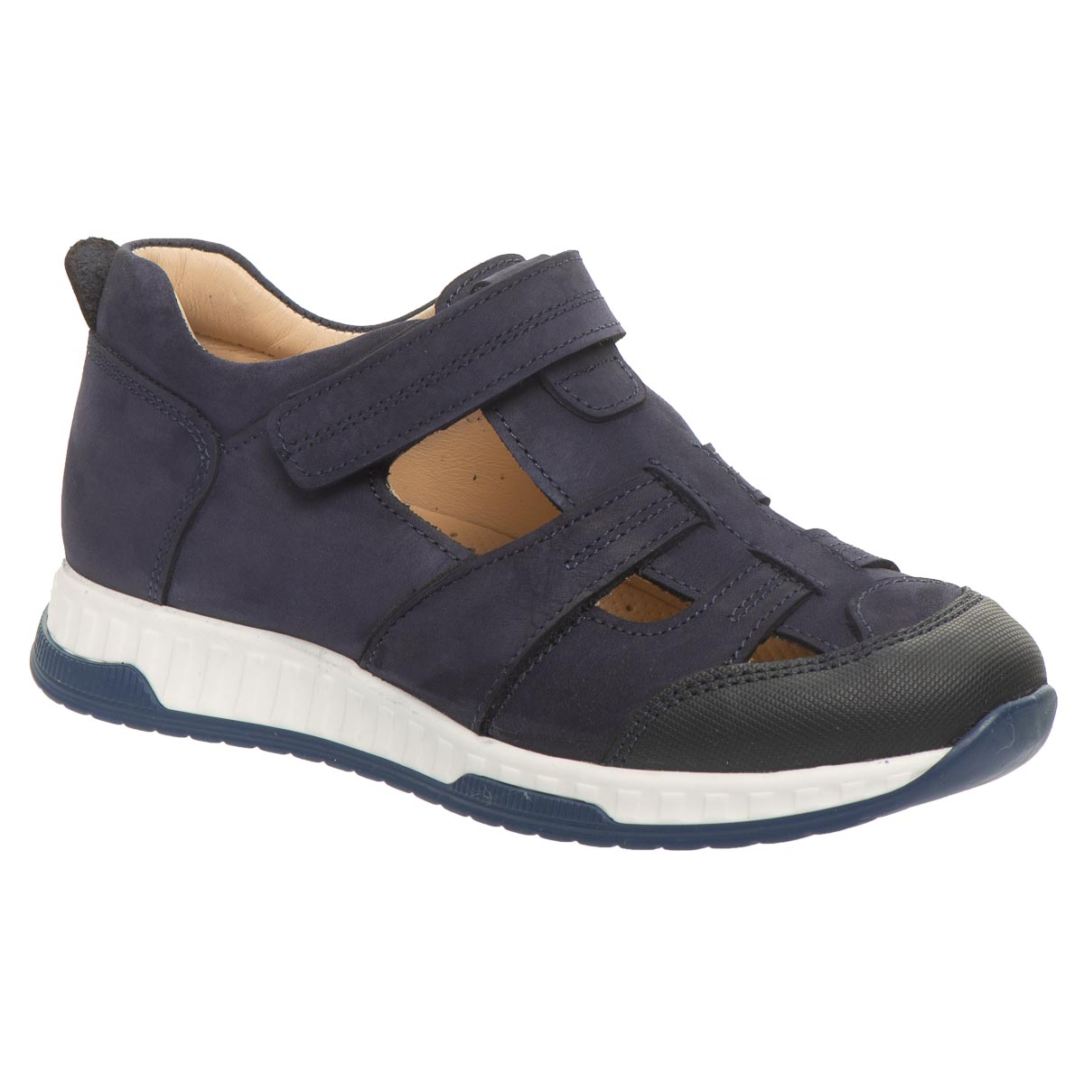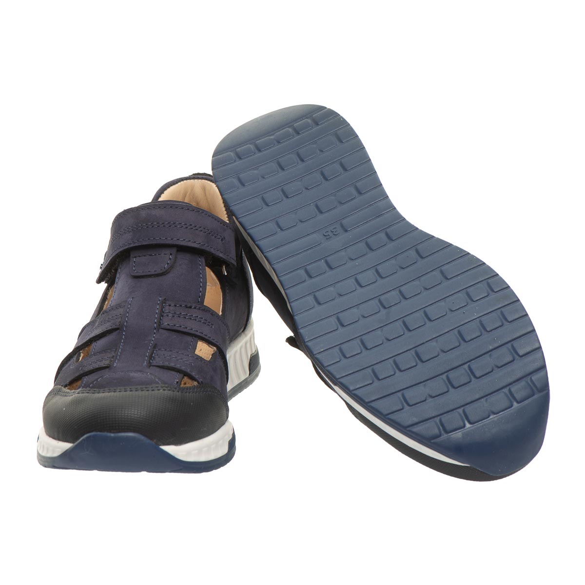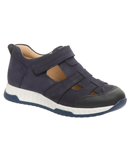Стильные и удобные детские мокасины из натурального нубука темно-синего цвета. Имеют гибкую подошву из термопластичной резины, твердый задник, анатомическую кожаную стельку с супинатором и застежку-липучку для удобного обувания. Подкладка - натуральная кожа. Идеальны для школьных будней и жарких дней.