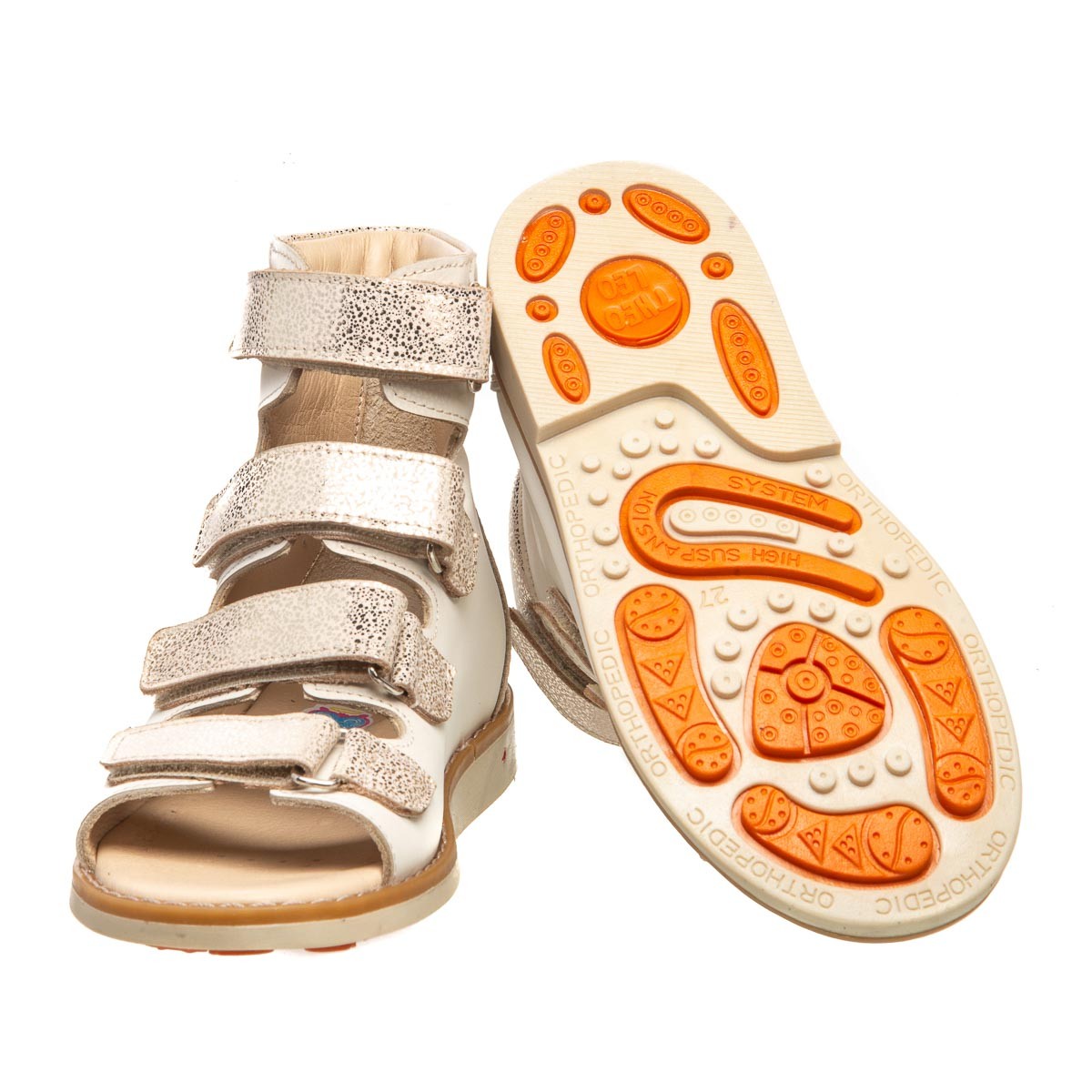 Вашей маленькой моднице нужны босоножки, сочетающие в себе элегантность и заботу о здоровье? Ортопедические босоножки из натуральной кожи молочного цвета - это идеальный выбор для активного лета. Четыре регулируемые липучки позволяют легко и быстро настроить босоножки под индивидуальные потребности каждого ребенка. При создании босоножек соблюдены все необходимые требования к ортопедической обуви: