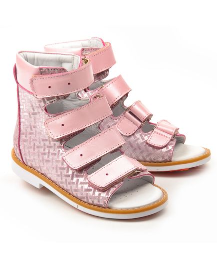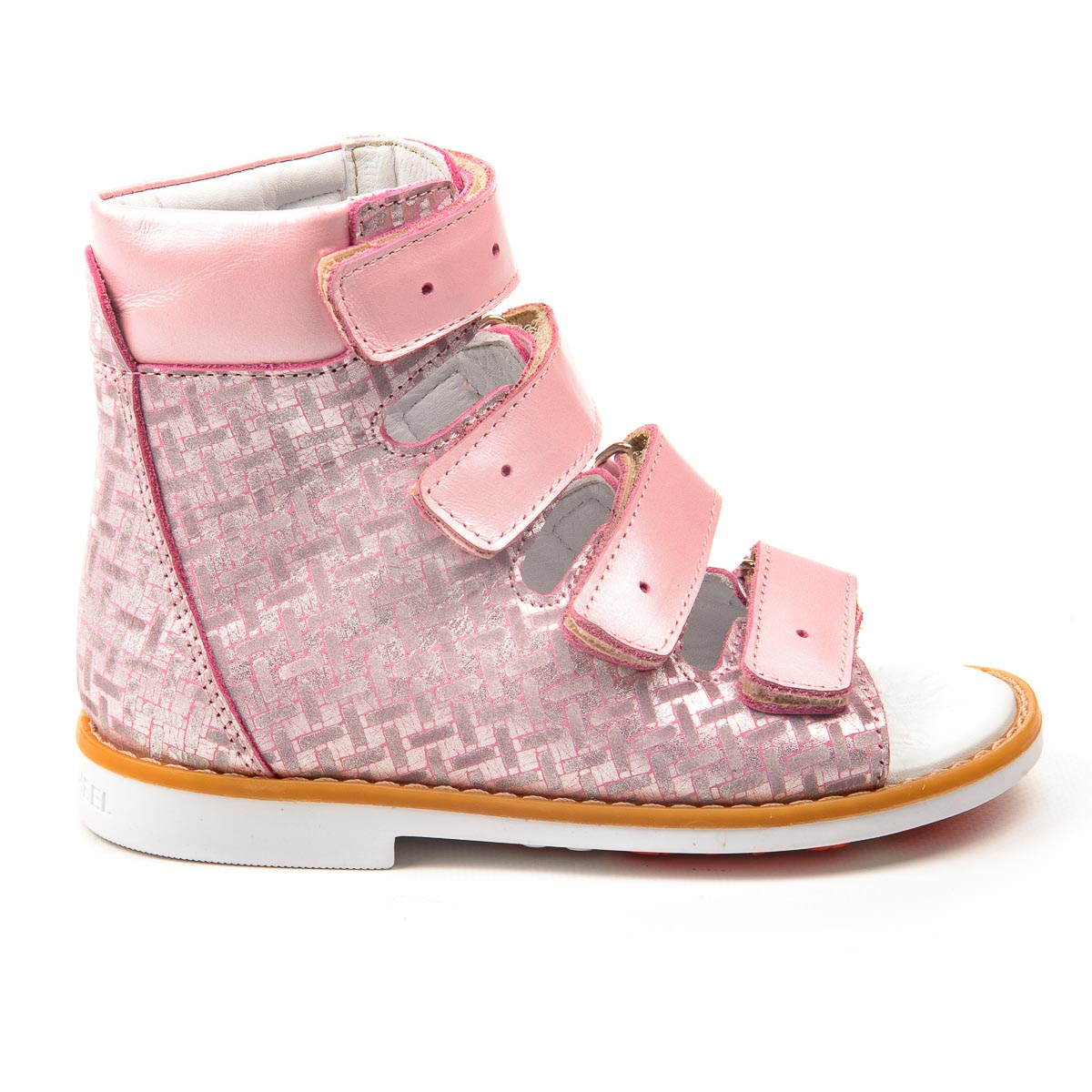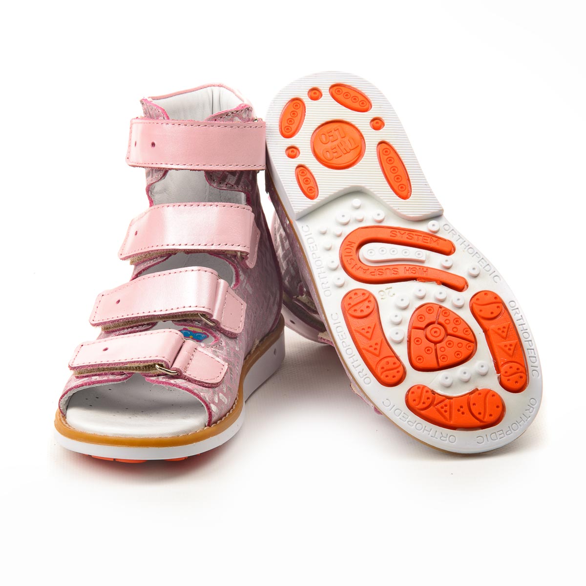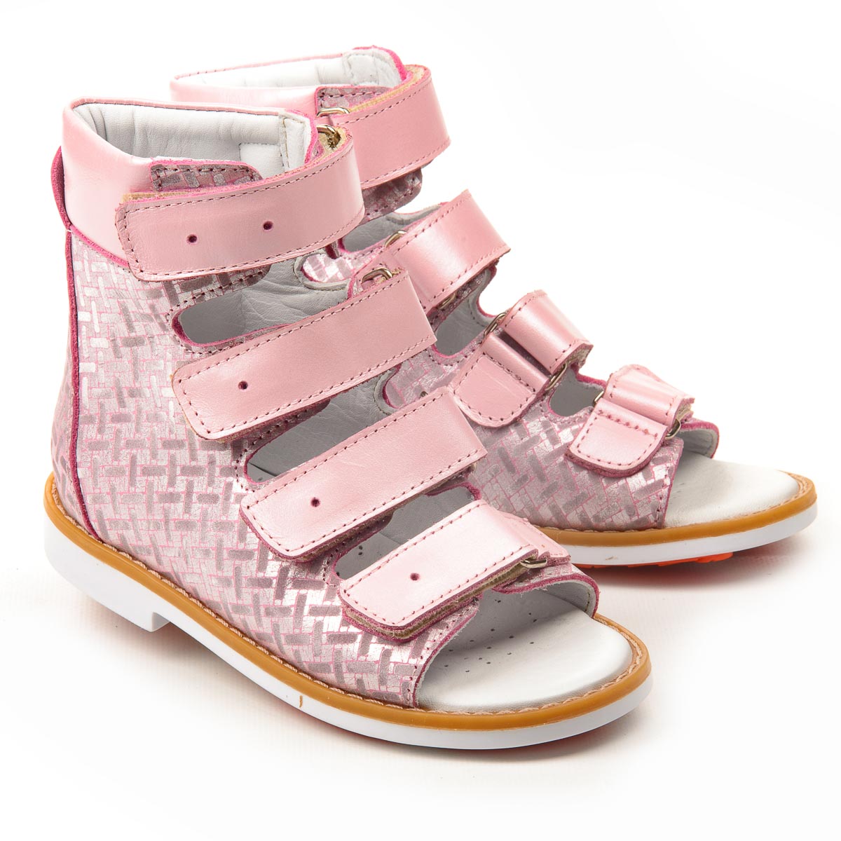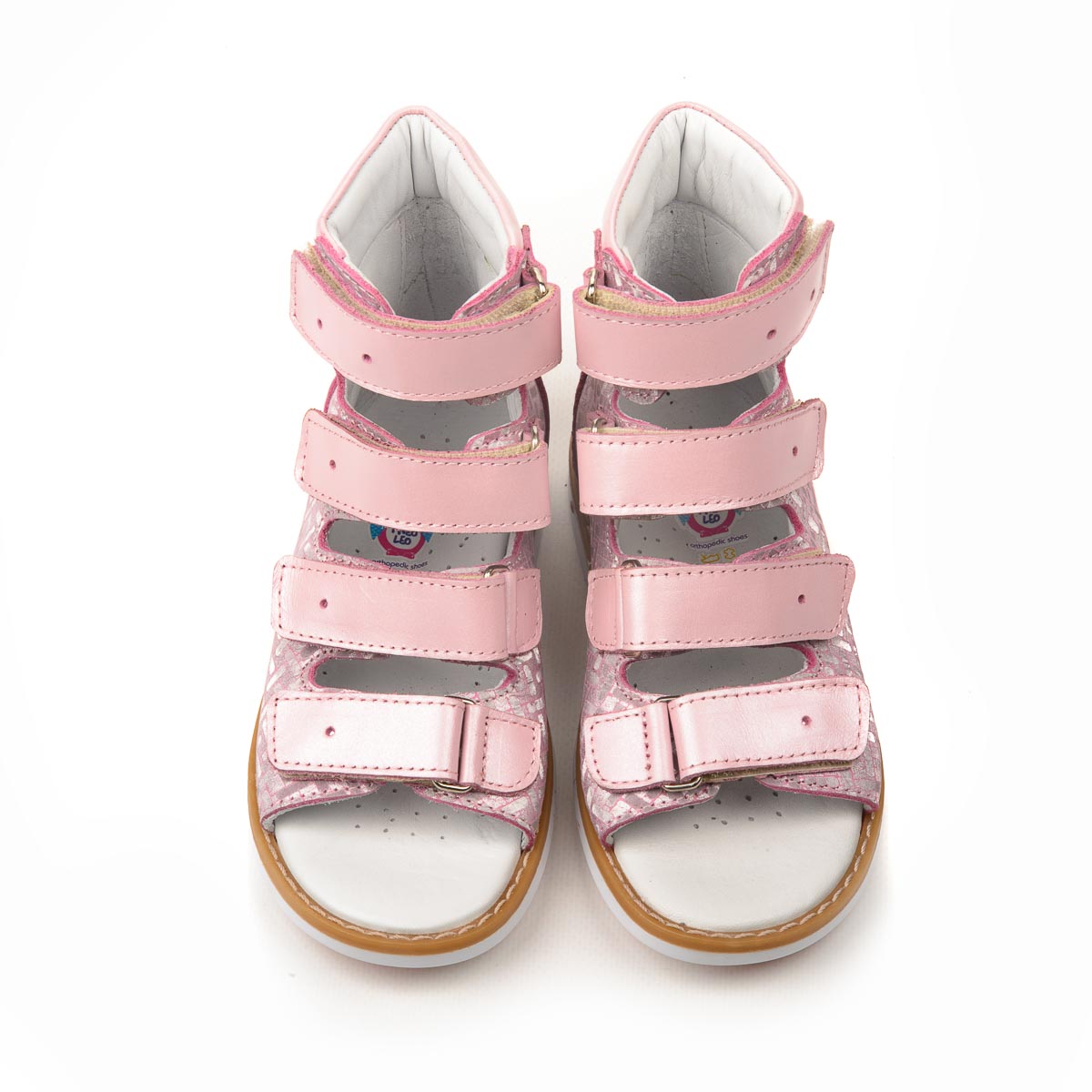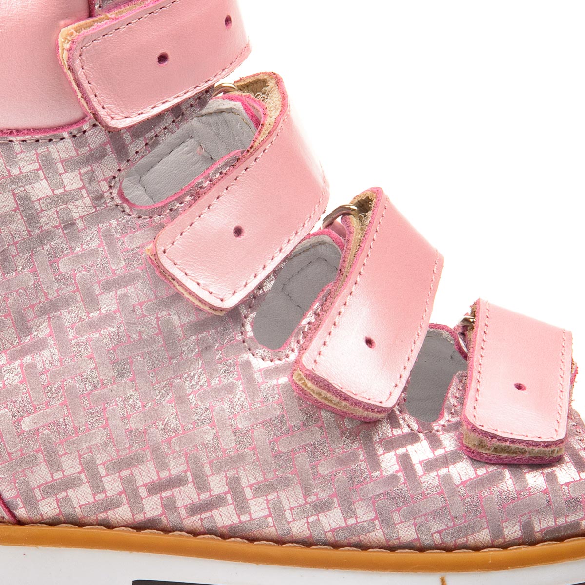 Розовые ортопедические босоножки для девочки. Выполнены из натуральной кожи. Четыре липучки обеспечат идеальную посадку на ножке вашего ребенка. При создании босоножек соблюдены все необходимые требования к ортопедической обуви: