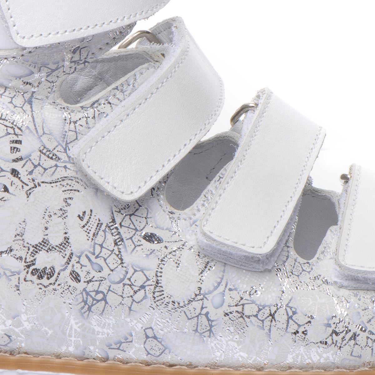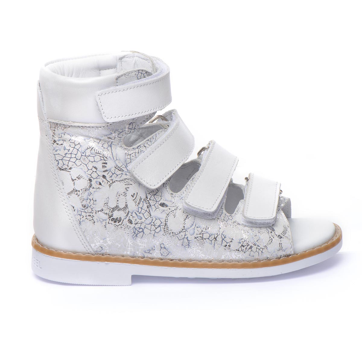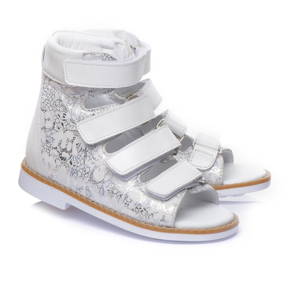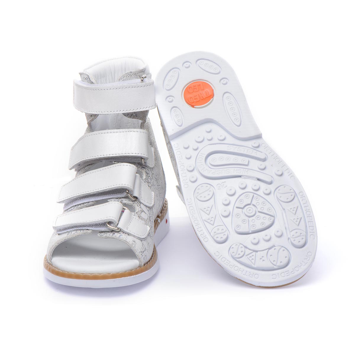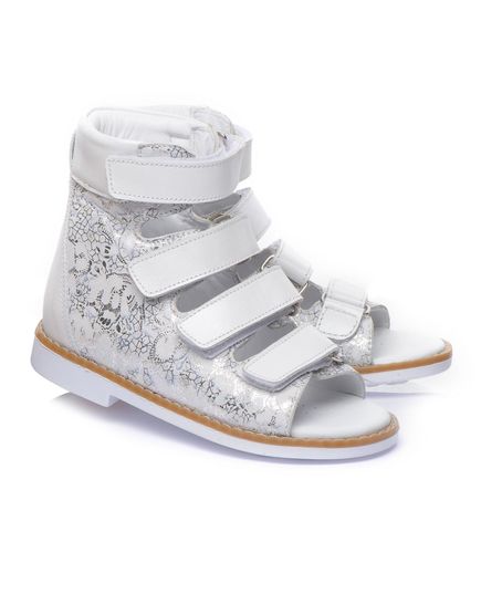 Наши белоснежные кожаные ортопедические босоножки для девочек - это воплощение элегантности и заботы о здоровье. Изготовлены из натуральной кожи, в качестве застежки имеют четыре крепкие липучки. При создании босоножек соблюдены все необходимые требования к ортопедической обуви: