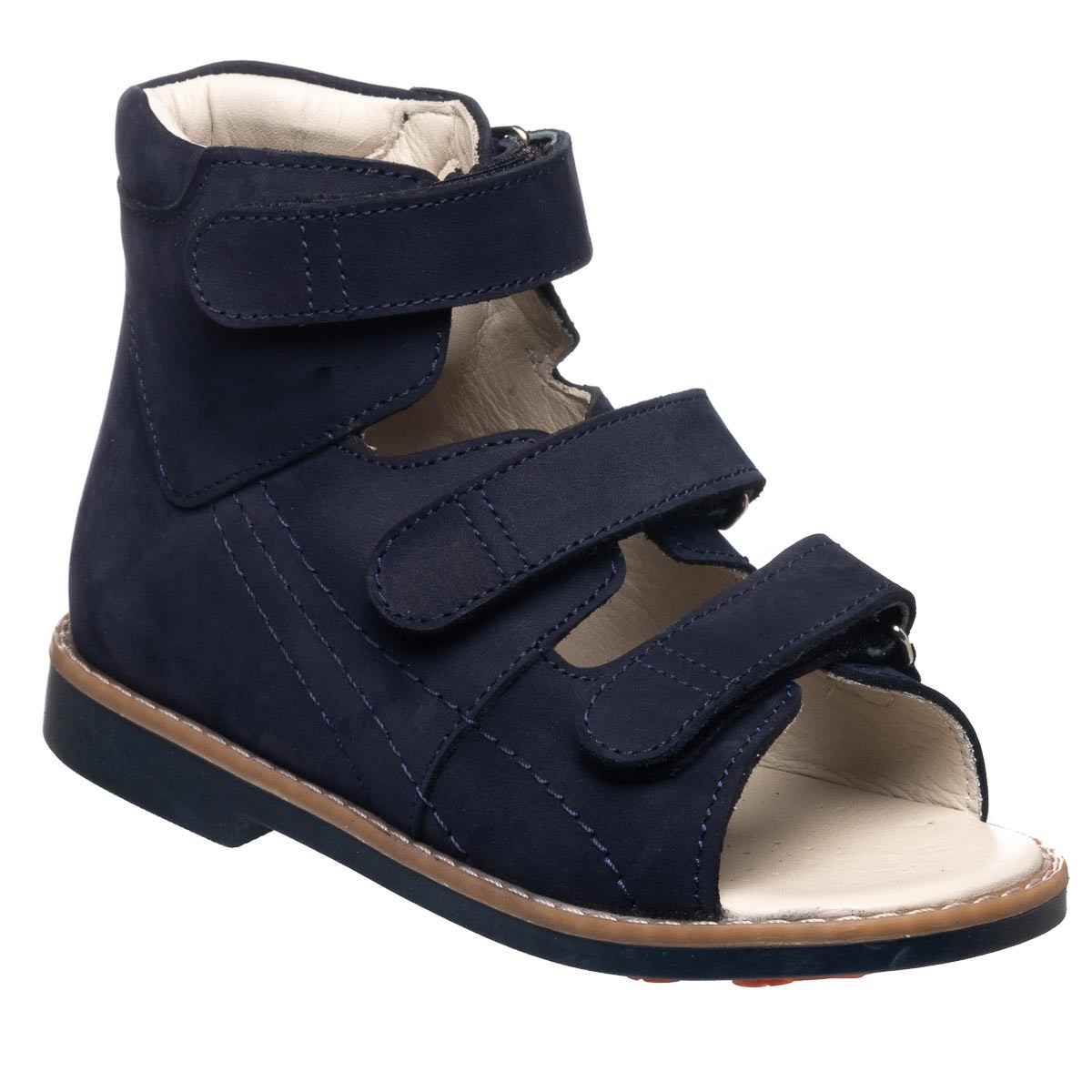 Ортопедические босоножки для мальчика, изготовлены из нубука - натурального, дышащего материала. Подкладка из натуральной кожи. Регулируемые липучки позволяют подогнать босоножки под индивидуальные потребности мальчика. При создании босоножек соблюдены все необходимые требования к ортопедической обуви: