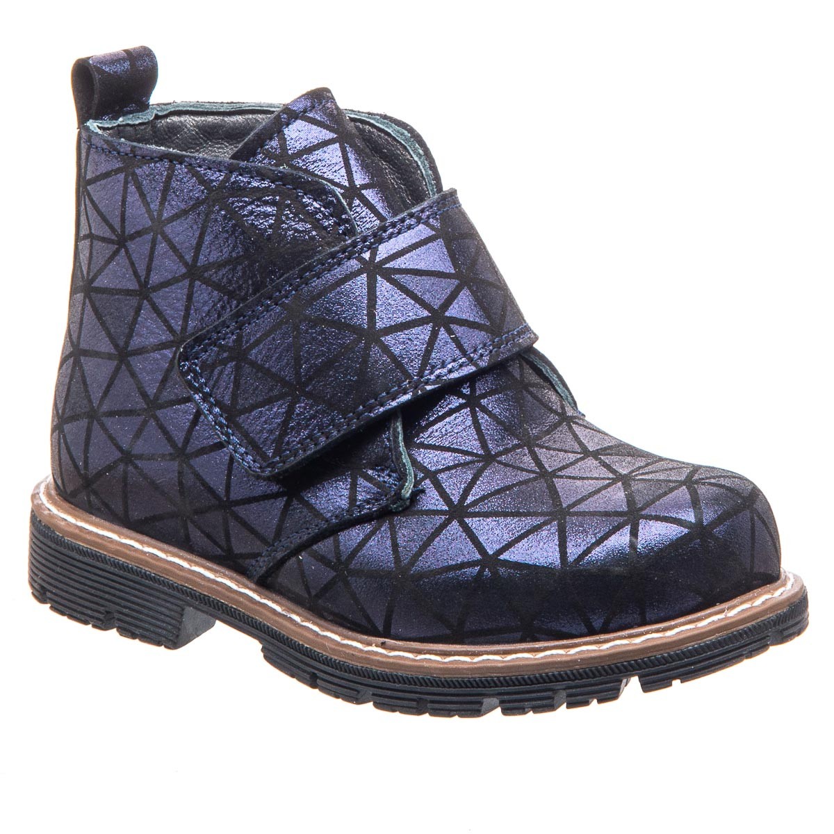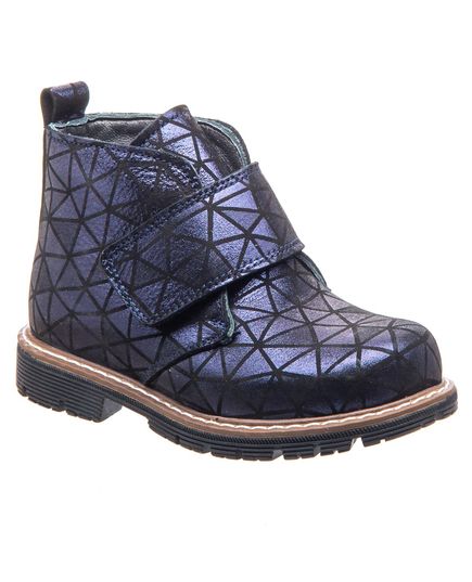 Ботинки изготовлены из натуральной кожи с оригинальным геометрическим рисунком, что придает модели стильный вид. Благодаря широкой удобной липучке, ботинки легко фиксируются на ноге. Внутренняя подкладка из флиса и стелька из натуральной кожи обеспечивают комфорт, а анатомический супинатор и каблук Томаса поддерживают здоровое развитие стопы. Гибкая, нескользкая подошва из термопластичной резины.