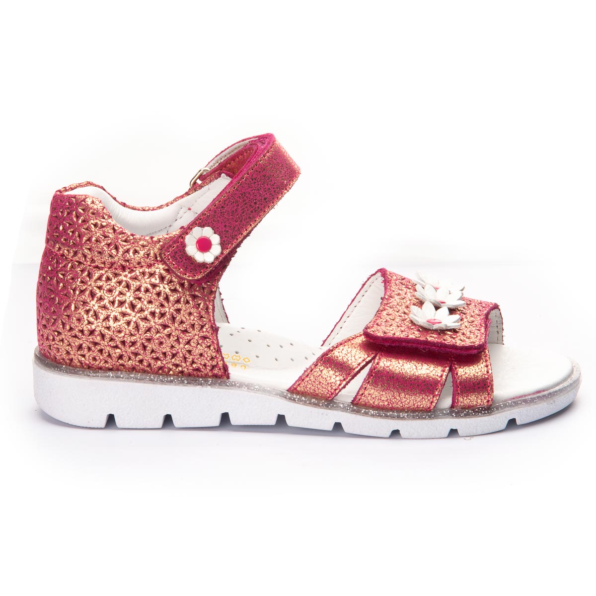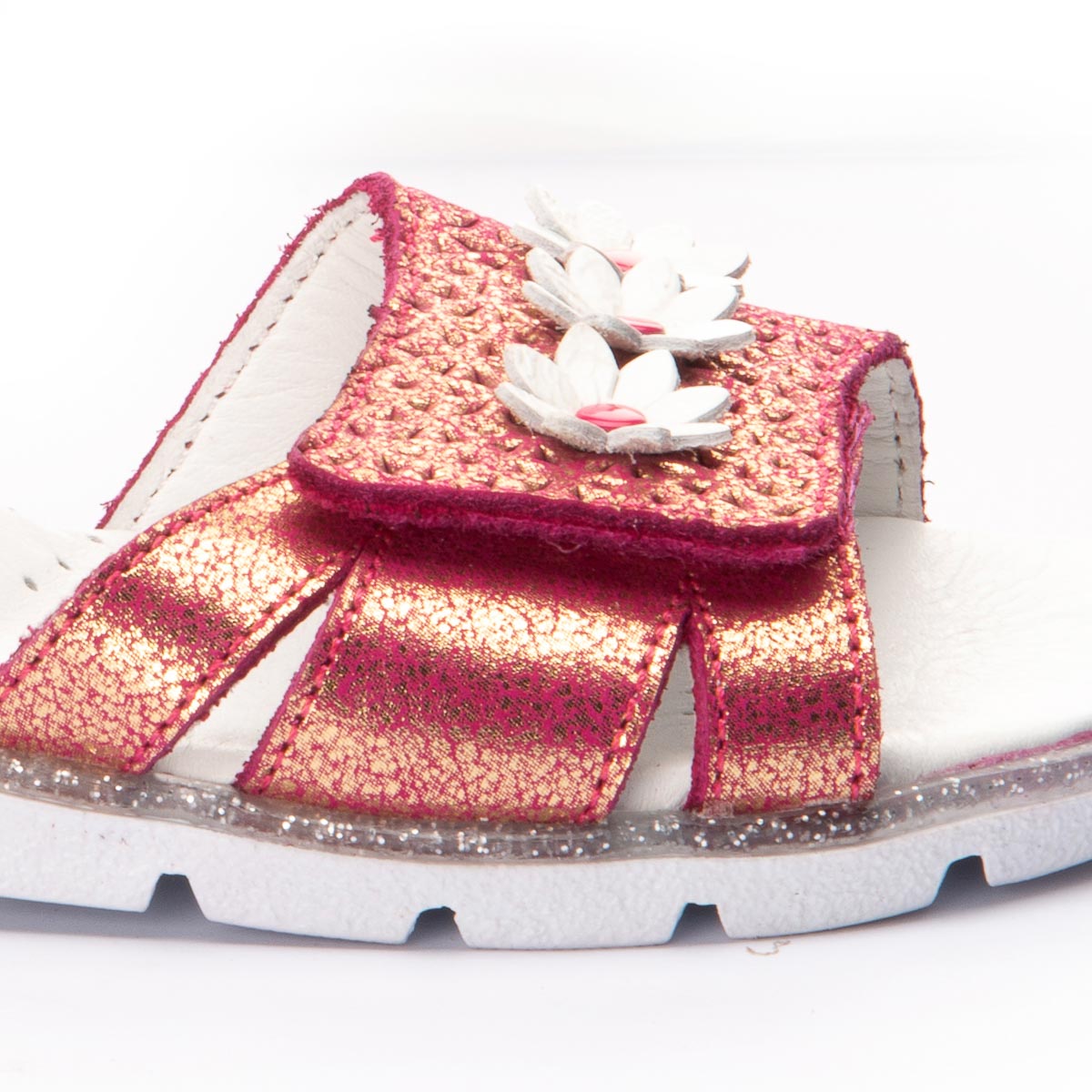 Сандалии изготовлены из натуральной кожи оттенка розового золота, что безупречно понравятся любой маленькой моднице.  Оснащены крепкими липучками: одна широкая пересекает переднюю часть стопы, а другая обеспечивает дополнительную поддержку, обхватывая лодыжку- предназначены для легкой регуляции размера и комфорта во время ношения.  Подошва изготовлена из термопластической резины, что дает отличную амортизацию и длительную износостойкость. Стелька с анатомическим супинатором. Что делает их прекрасным выбором летней обуви.