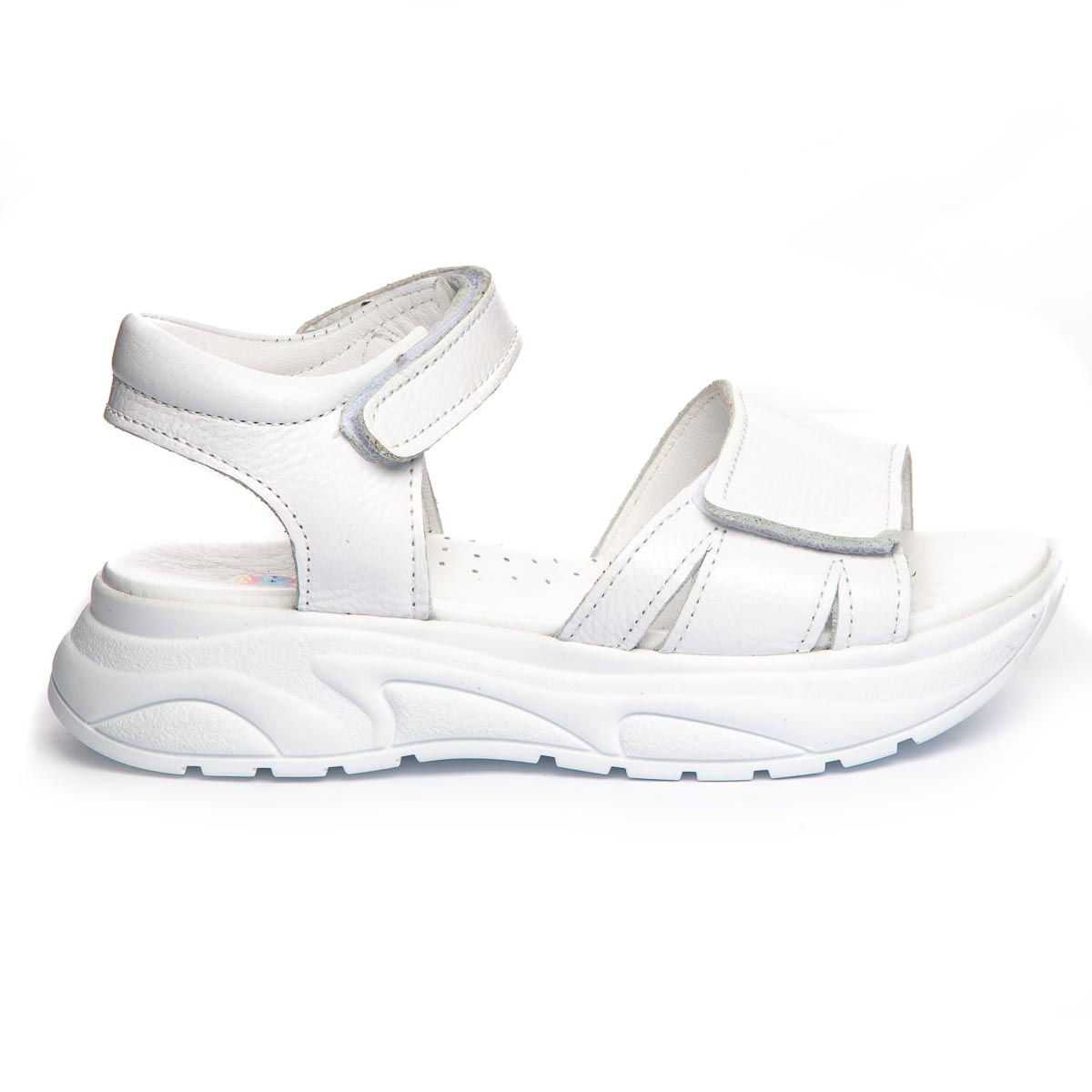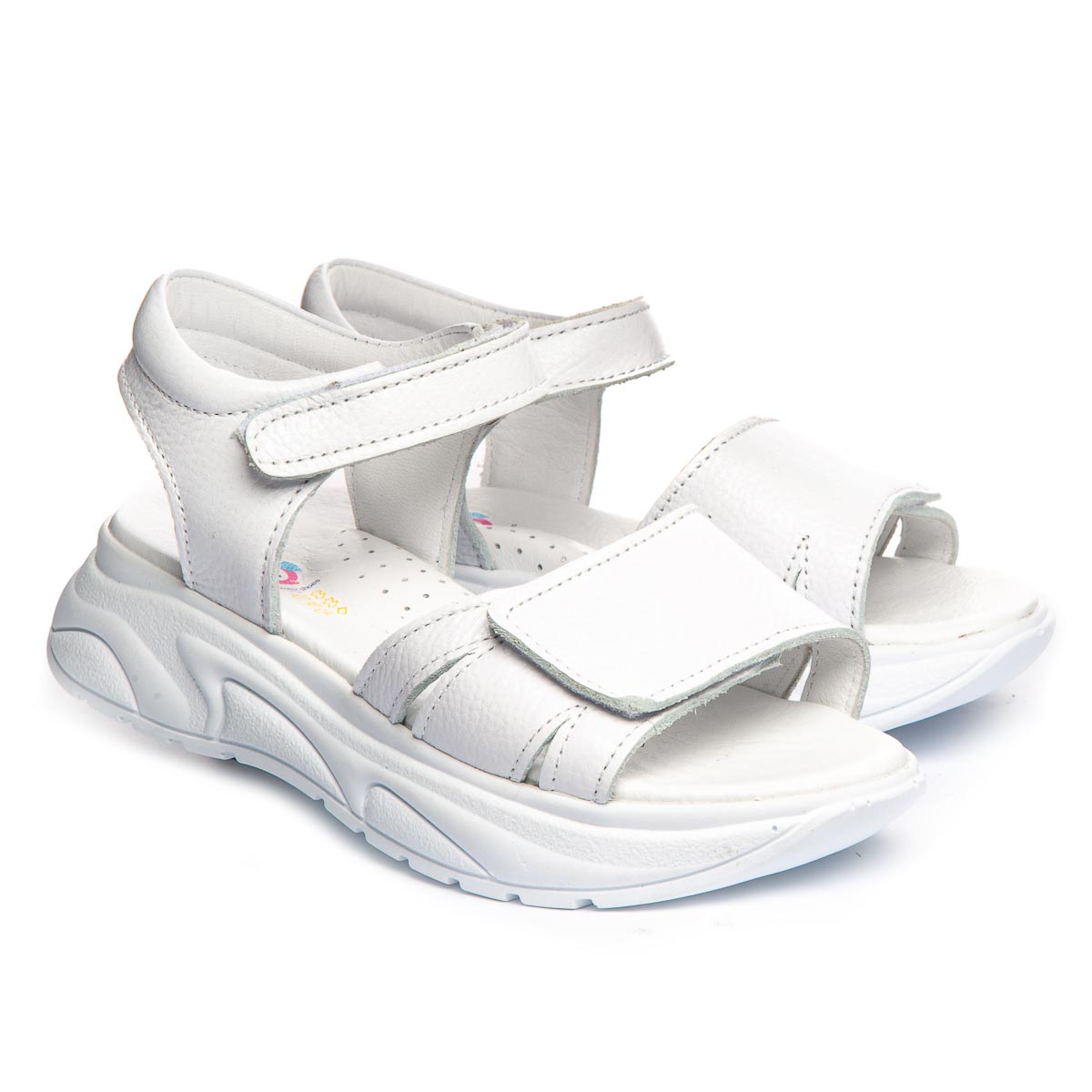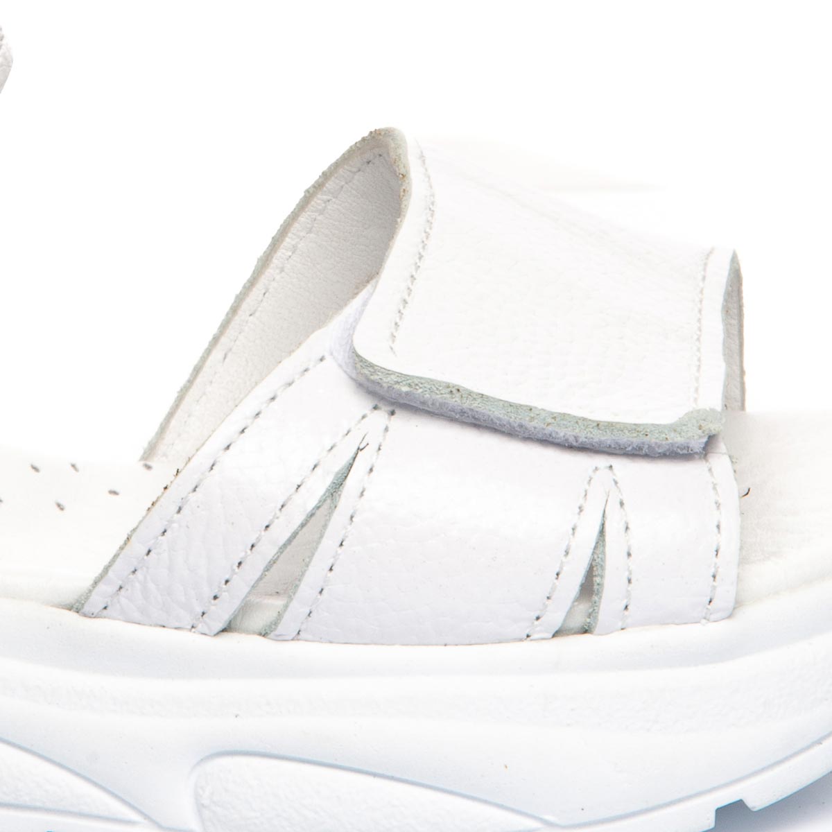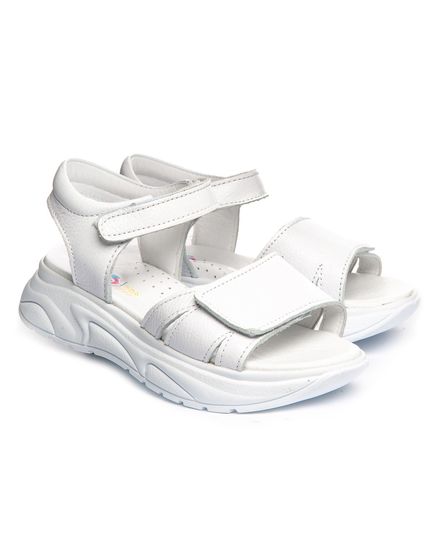 Сандалии изготовлены из высококачественной натуральной кожи белого цвета, оснащены волнистой подошвой, что придает модерность общему виду сандалий, делая их идеальным дополнением к любому летнему образу. Двойные регулируемые ремешки с липучками помогут идеально подогнать сандалии к ножке: узкие липучки позволяют легко снимать и одевать обувь, а широкие липучки - легко регулировать их посадку на ноге. Встроенный супинатор обеспечит правильное положение стопы и поддержку дуги во время ходьбы. Эти сандалии станут незаменимым элементом летнего гардероба.