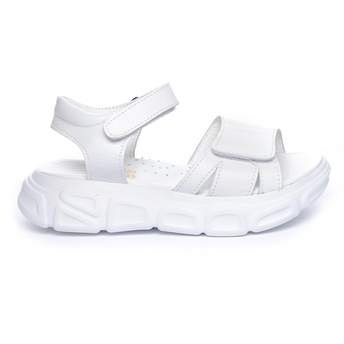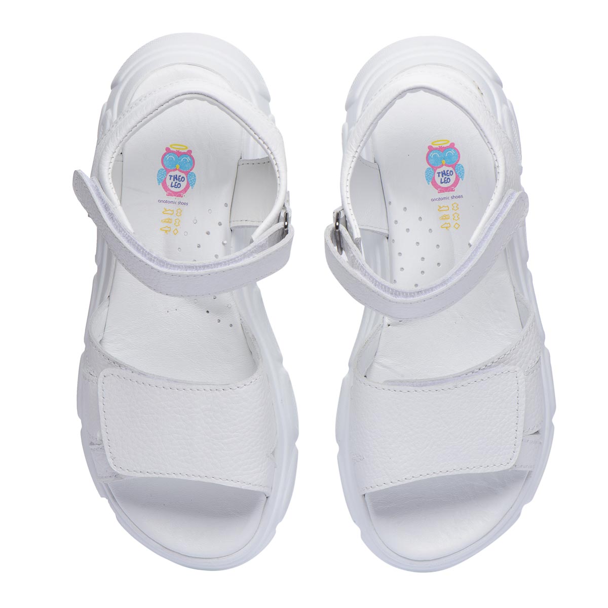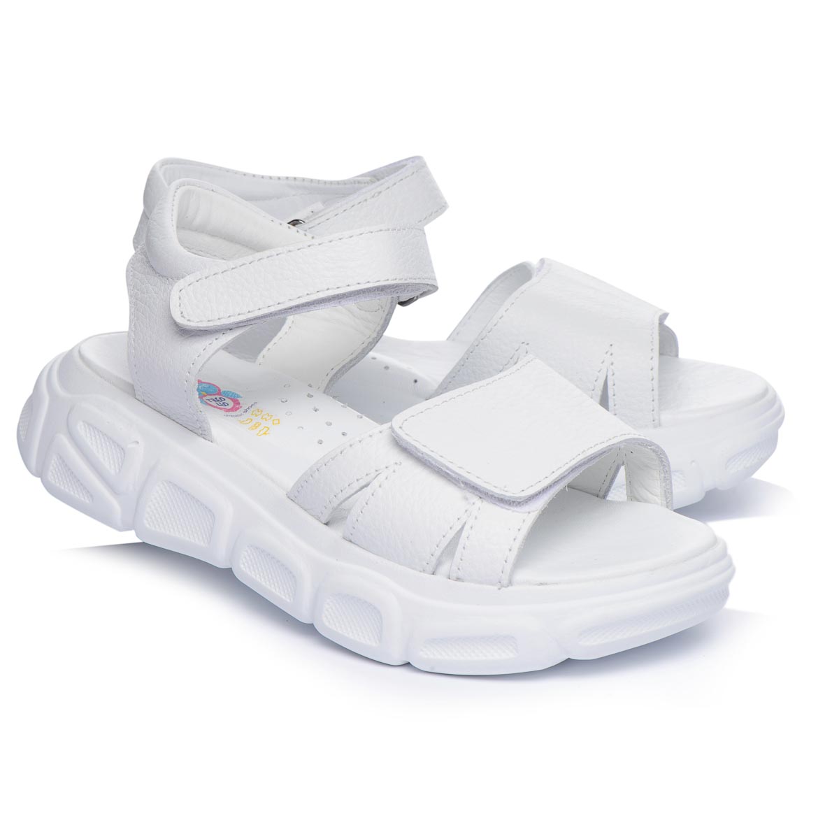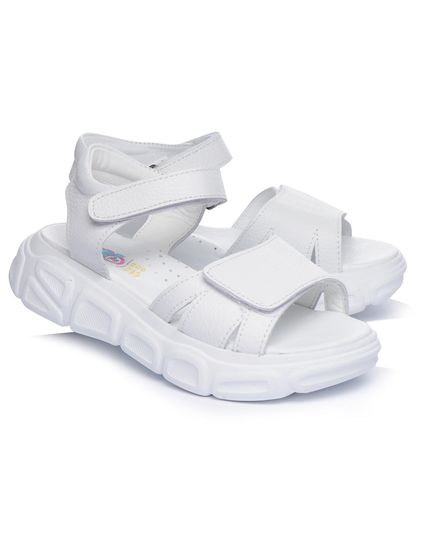 Открытые кожаные летние сандалии для девочек. Их белая цветовая гамма придает обуви свежий и яркий вид. Двойные регулируемые ремешки с липучками помогут идеально подогнать сандалии к ножке: узкие липучки позволяют легко снимать и одевать обувь, а широкие липучки – легко регулировать их посадку на ноге. Встроенный супинатор обеспечит правильное положение стопы и поддержку дуги во время ходьбы. Оснащены подошвой из термопластической резины. Современный дизайн обуви отлично будет сочетаться с любым спортивным или повседневным нарядом.