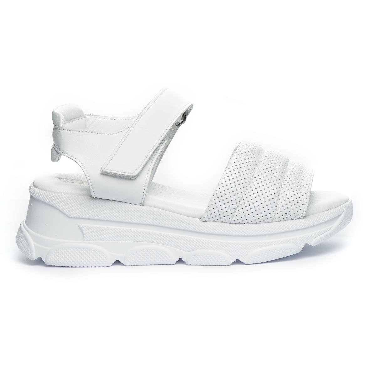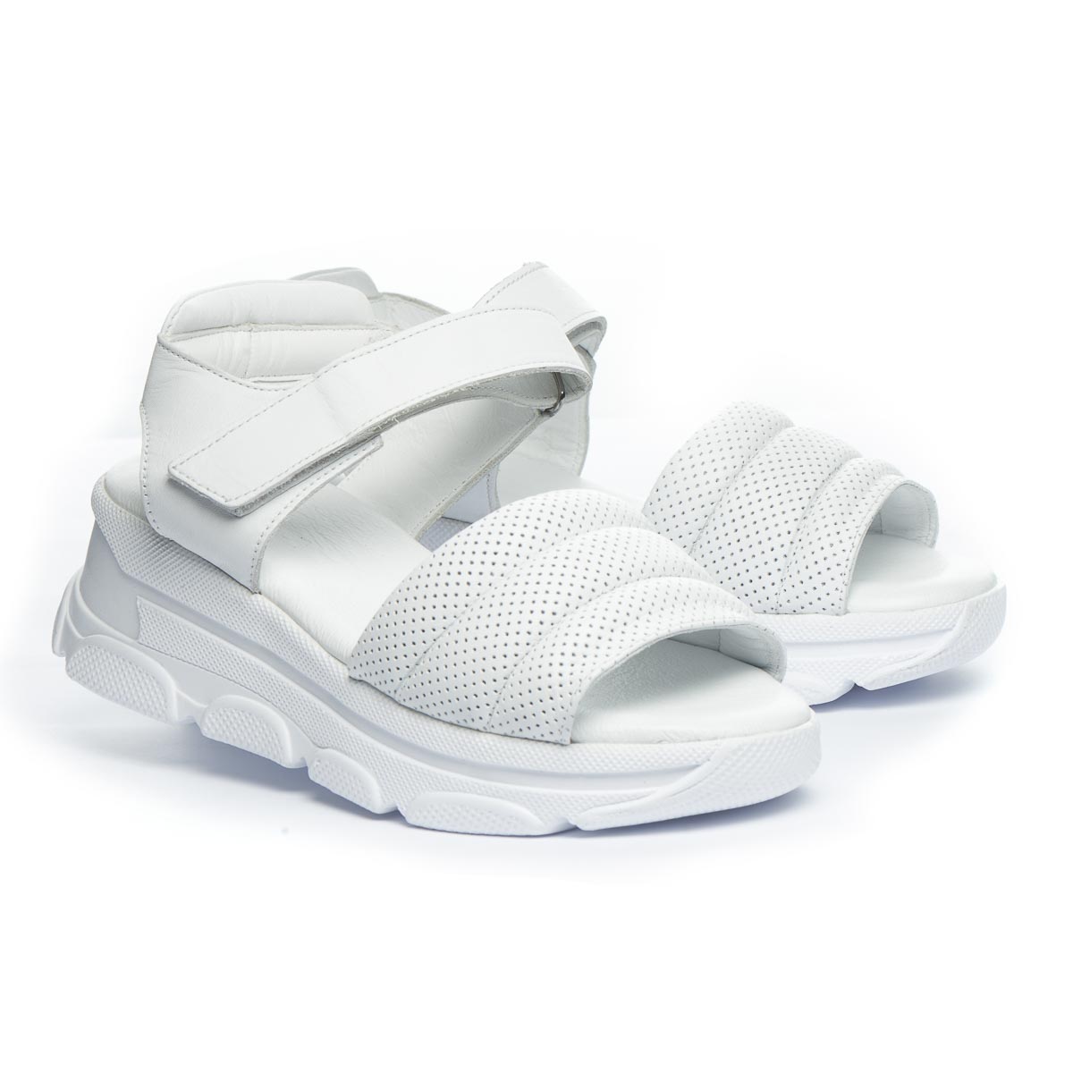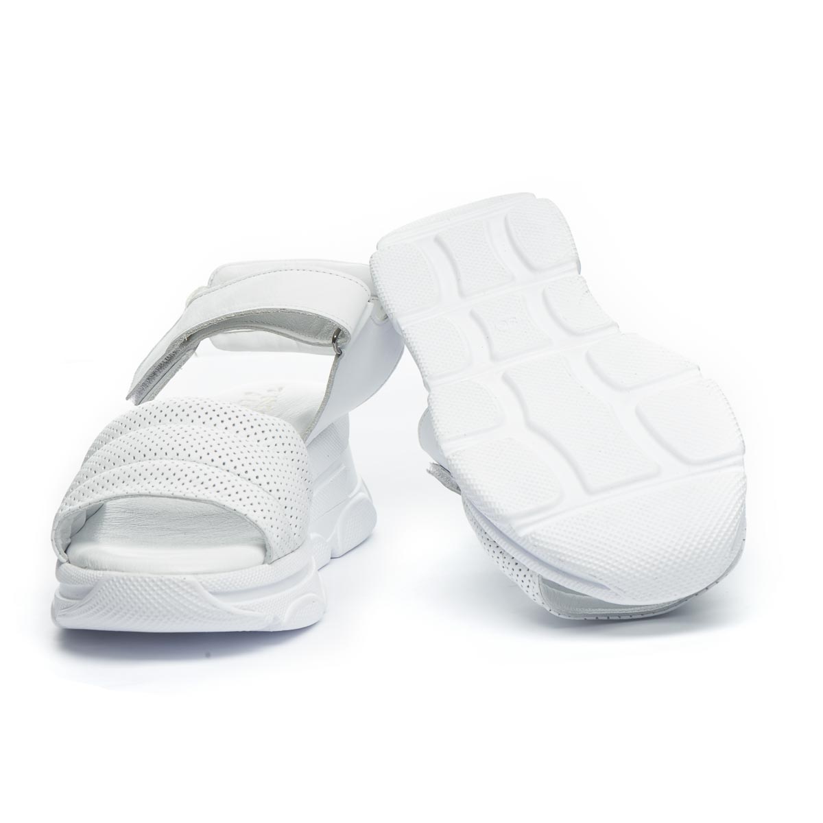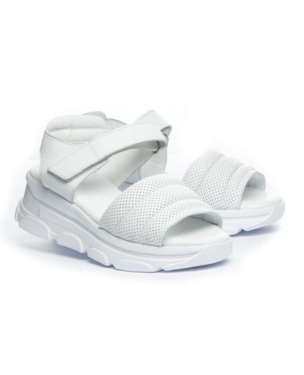 Кожаные босоножки белого цвета, не только добавляют образу стильного шарма, но и обеспечивают комфорт на протяжении всего дня. Низкая платформа придает дополнительную высоту без лишнего дискомфорта, а мягкая стелька обеспечивает дополнительный комфорт. Застежка-липучка позволяет легко обувать их, обеспечивая оптимальную посадку. Подошва легкая и гибкая, выполнена из термопластической резины. Подчеркни свой неповторимый стиль.