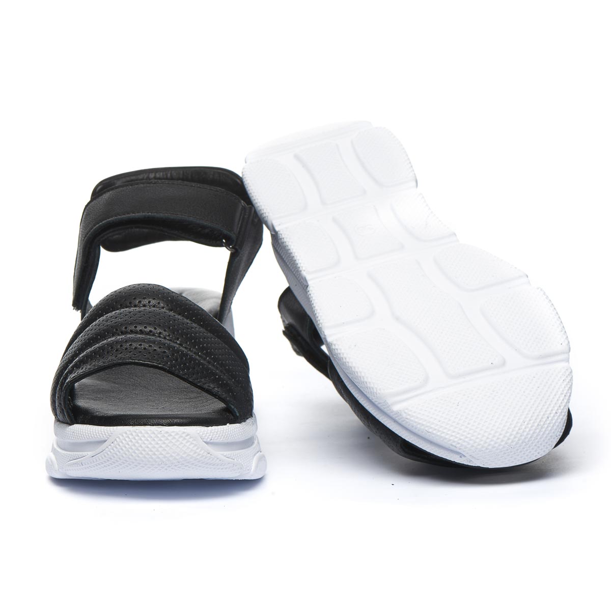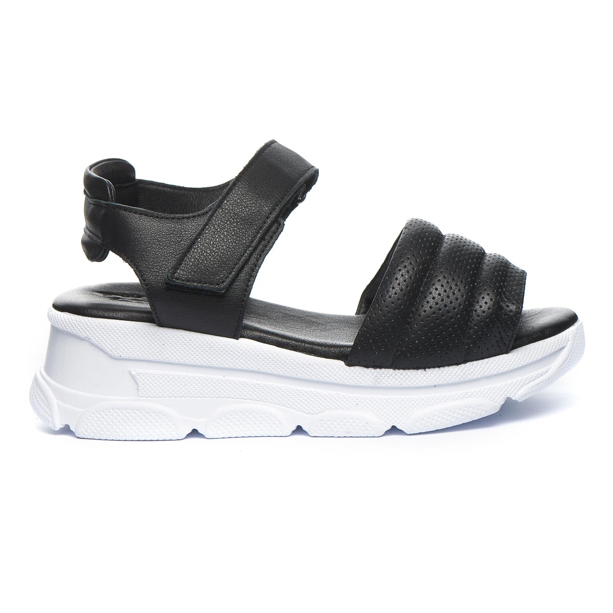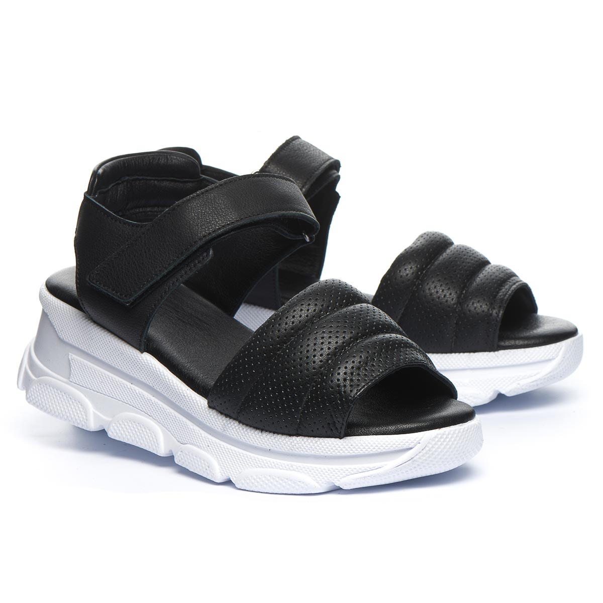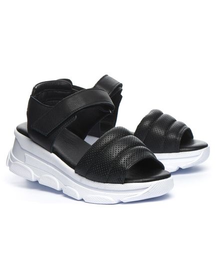 Эти летние босоножки, выполненные из кожи черного цвета, созданы для того чтобы дарить комфорт. Низкая платформа придает дополнительную высоту без лишнего дискомфорта, а мягкая стелька обеспечивает дополнительный комфорт. Застежка-липучка позволяет легко обувать их, обеспечивая оптимальную посадку. Подошва легкая и гибкая, выполнена из термопластической резины. Это не просто обувь, а модный аксессуар, который подчеркнет индивидуальный стиль.